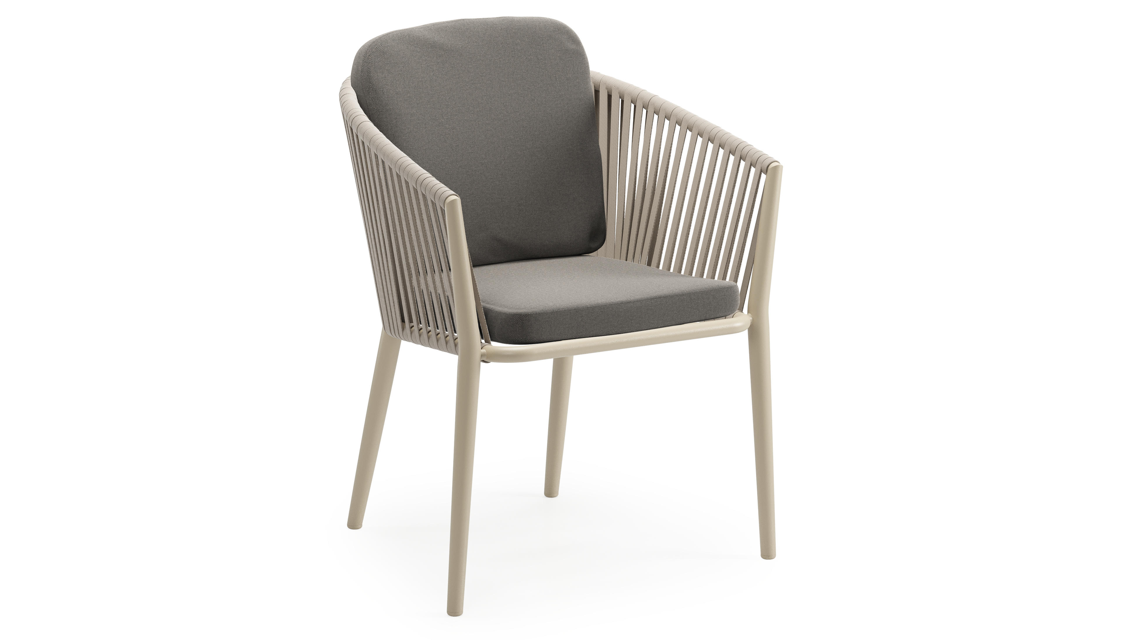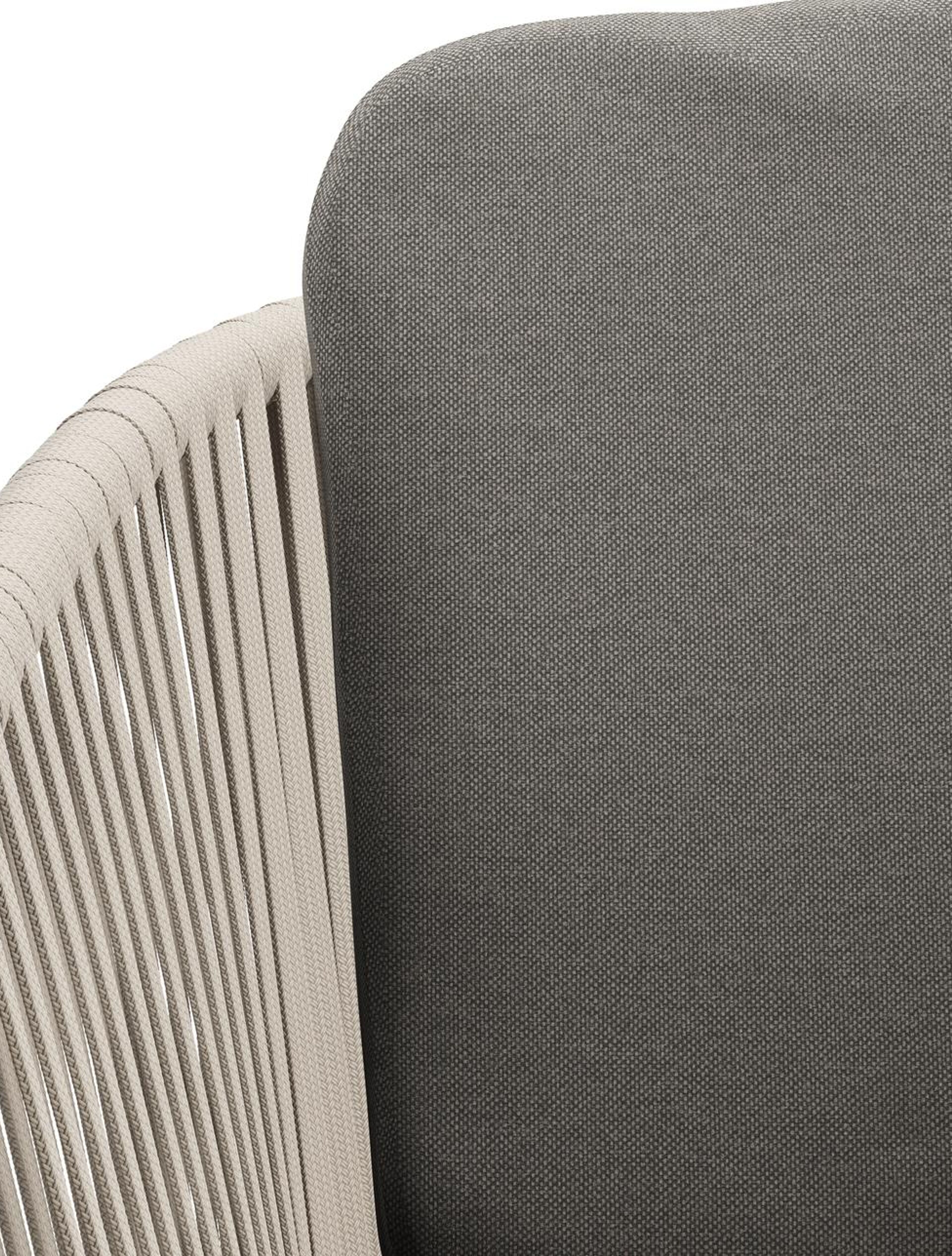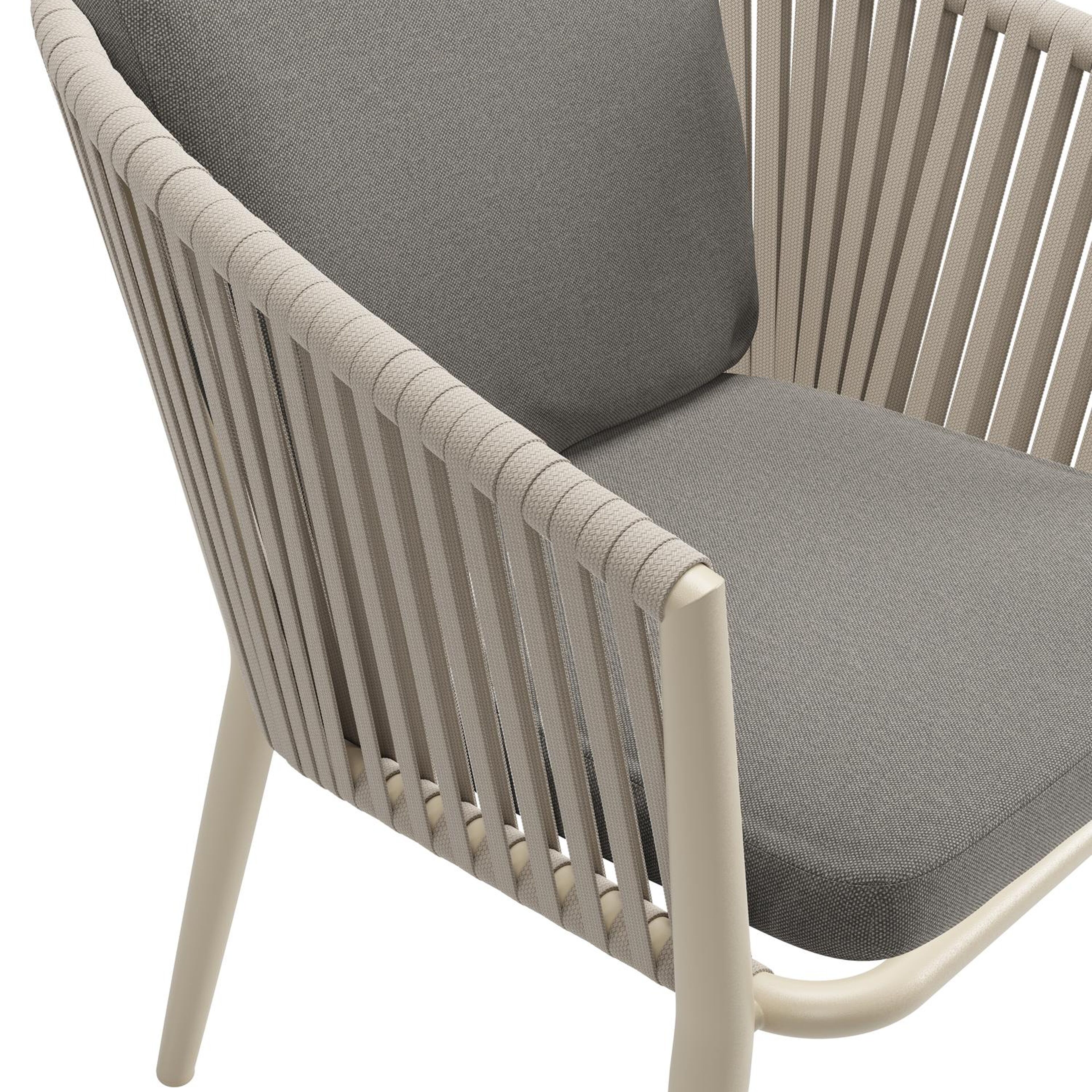Chaise de jardin Orso en aluminium beige et corde plate tissée verticalement beige avec coussin luxe en All Weather Sunbrella® Luxe Natte Dark Taupe | Exterioo mobilier de jardin