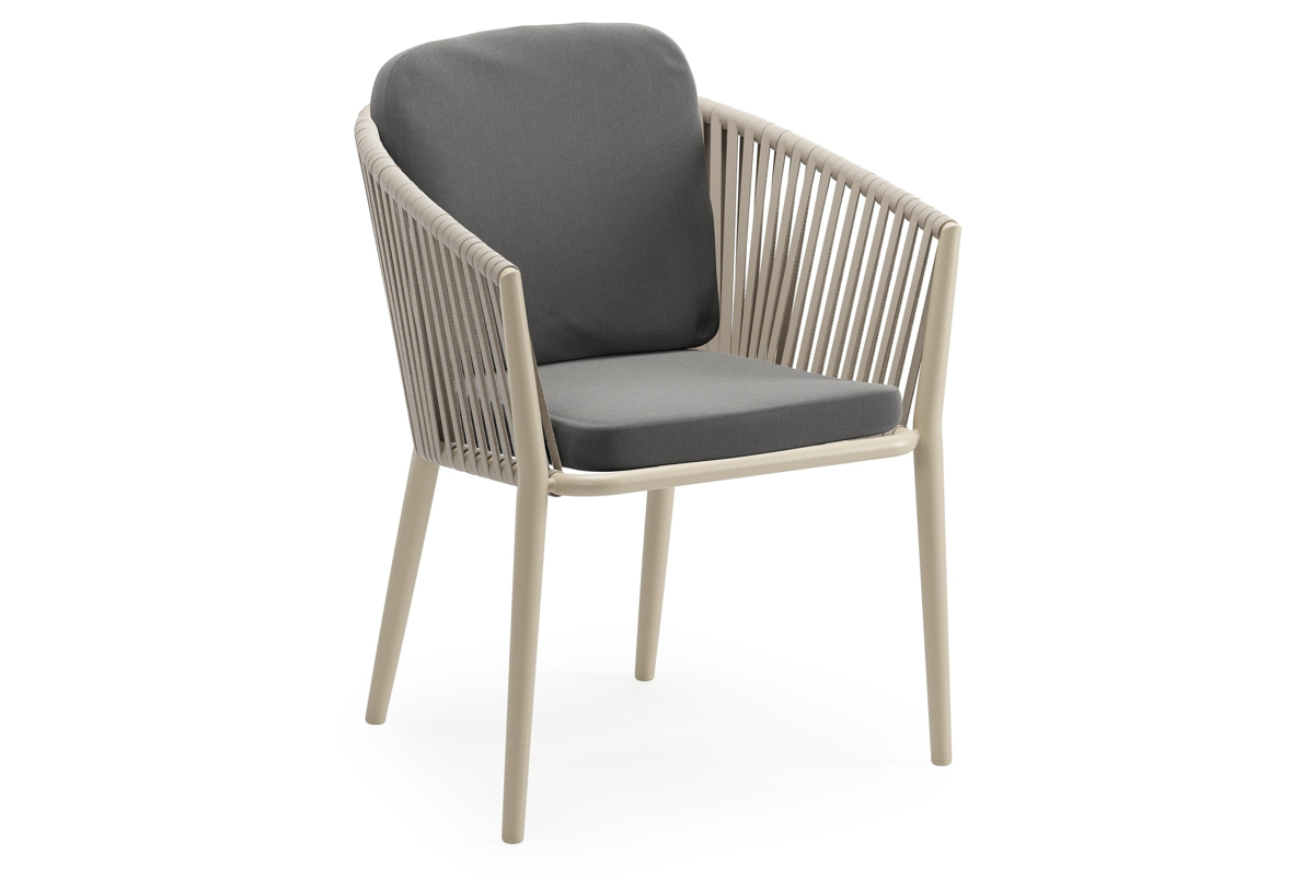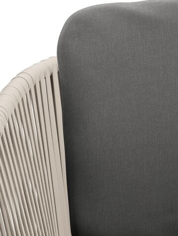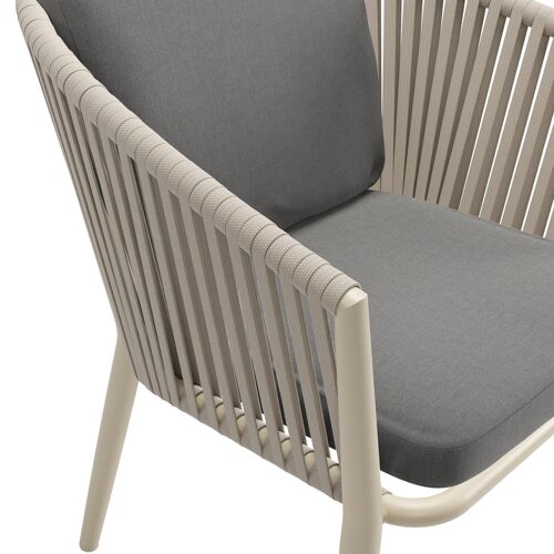 Chaise de jardin Orso en aluminium beige et corde plate tissée verticalement beige avec coussin luxe en All Weather Sunbrella® Luxe Natte Charcoal Chine | Exterioo
