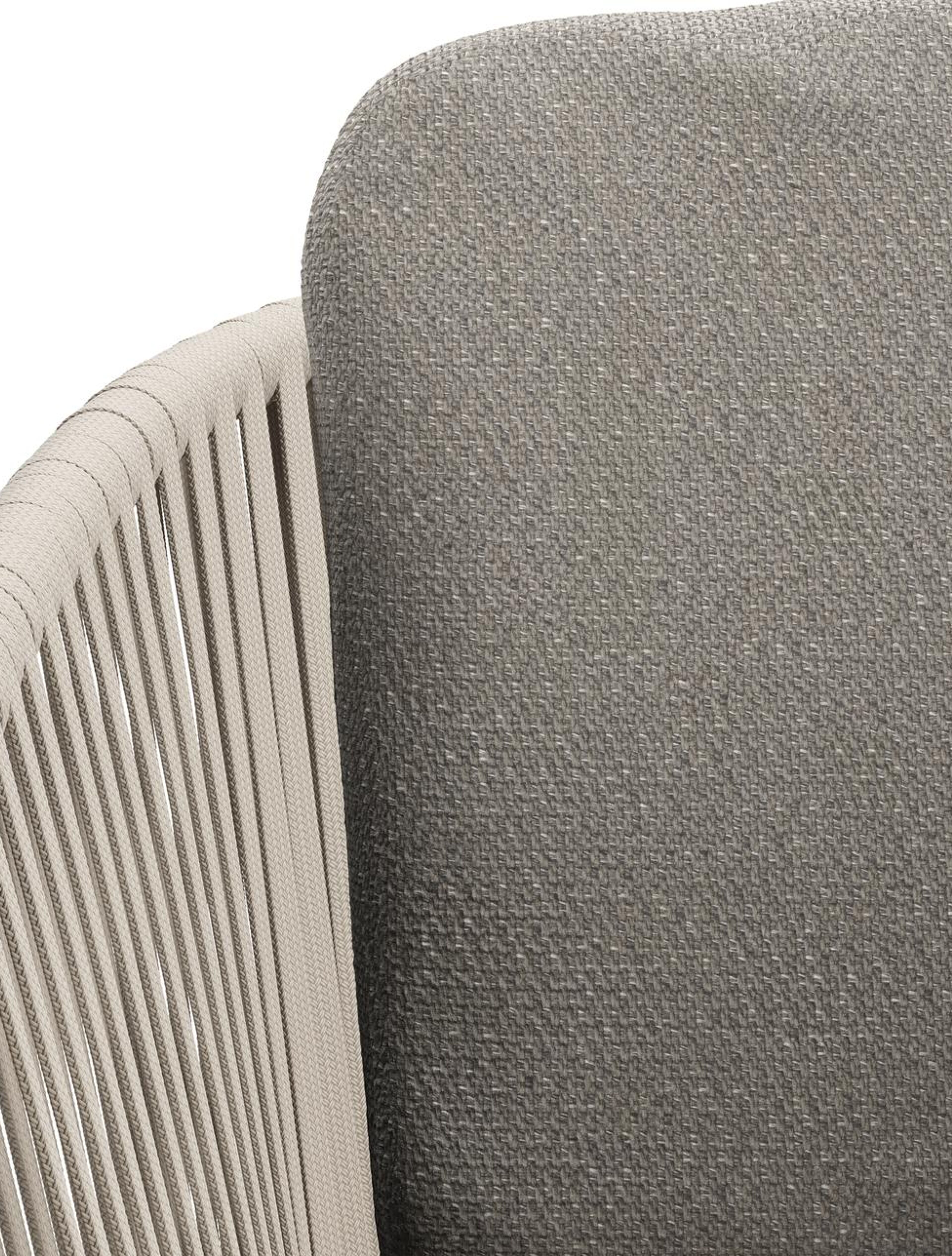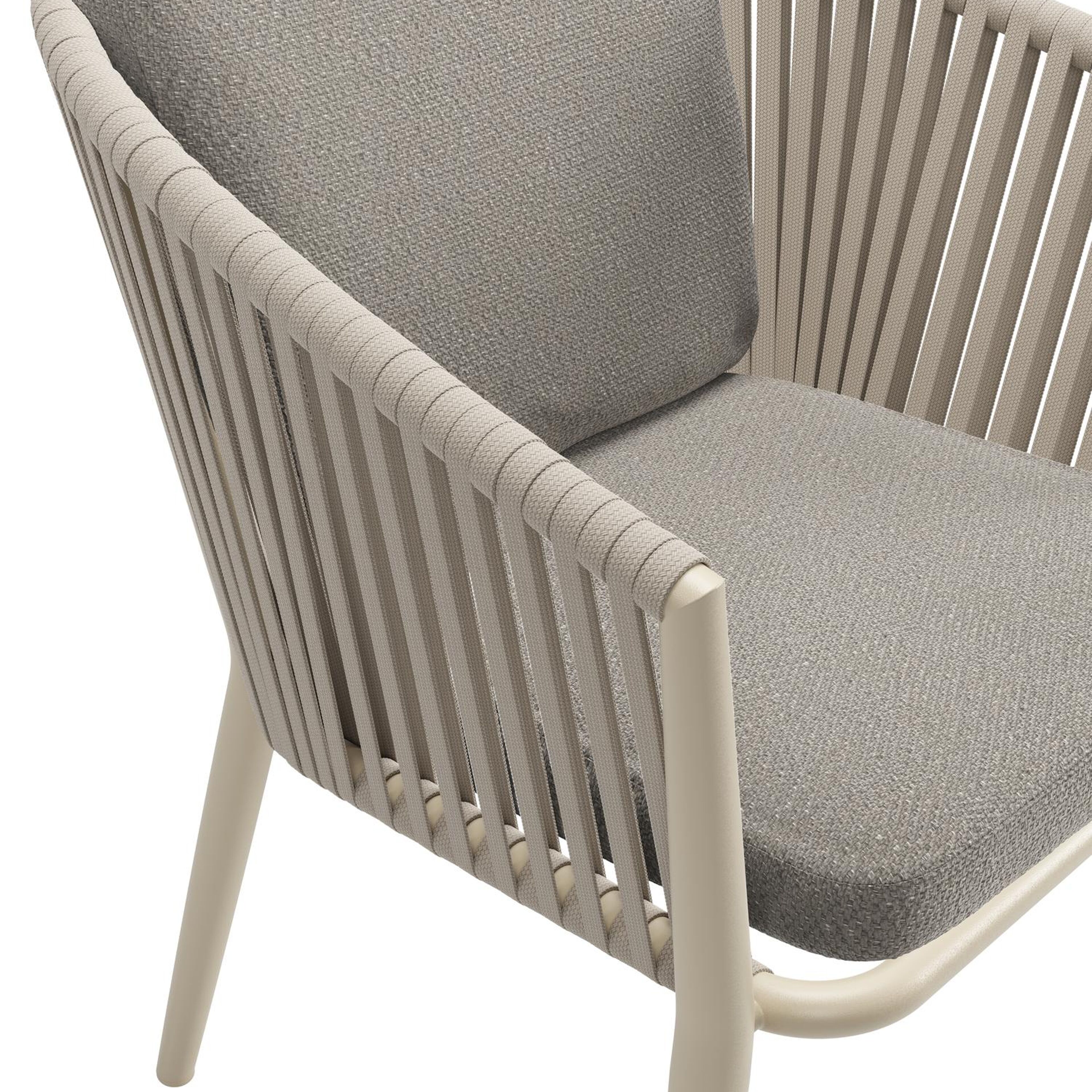 Chaise de jardin Orso en aluminium beige et corde plate tissée verticalement beige avec coussin luxe en All Weather Sunbrella® Luxe Lopi Silver | Exterioo mobilier de jardin