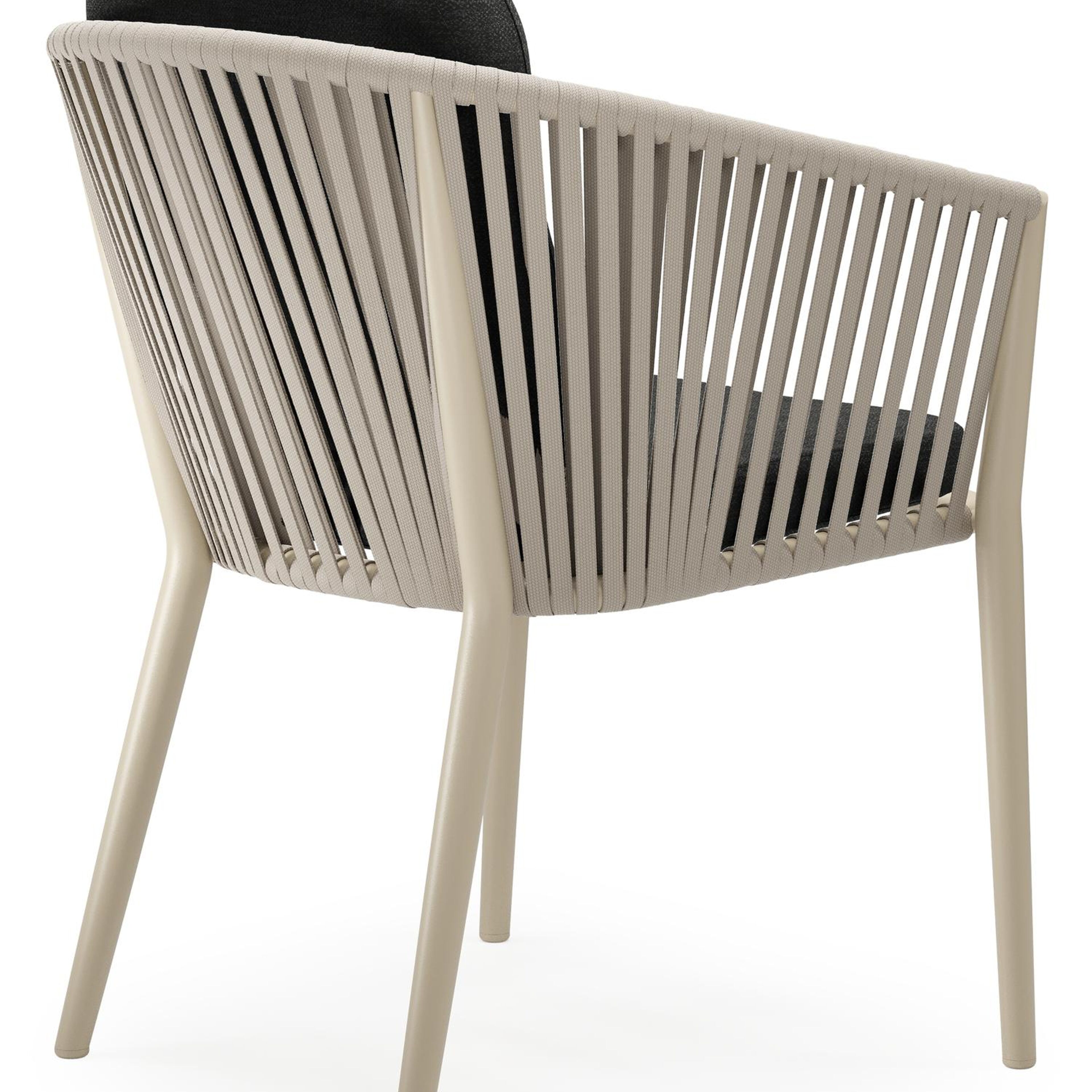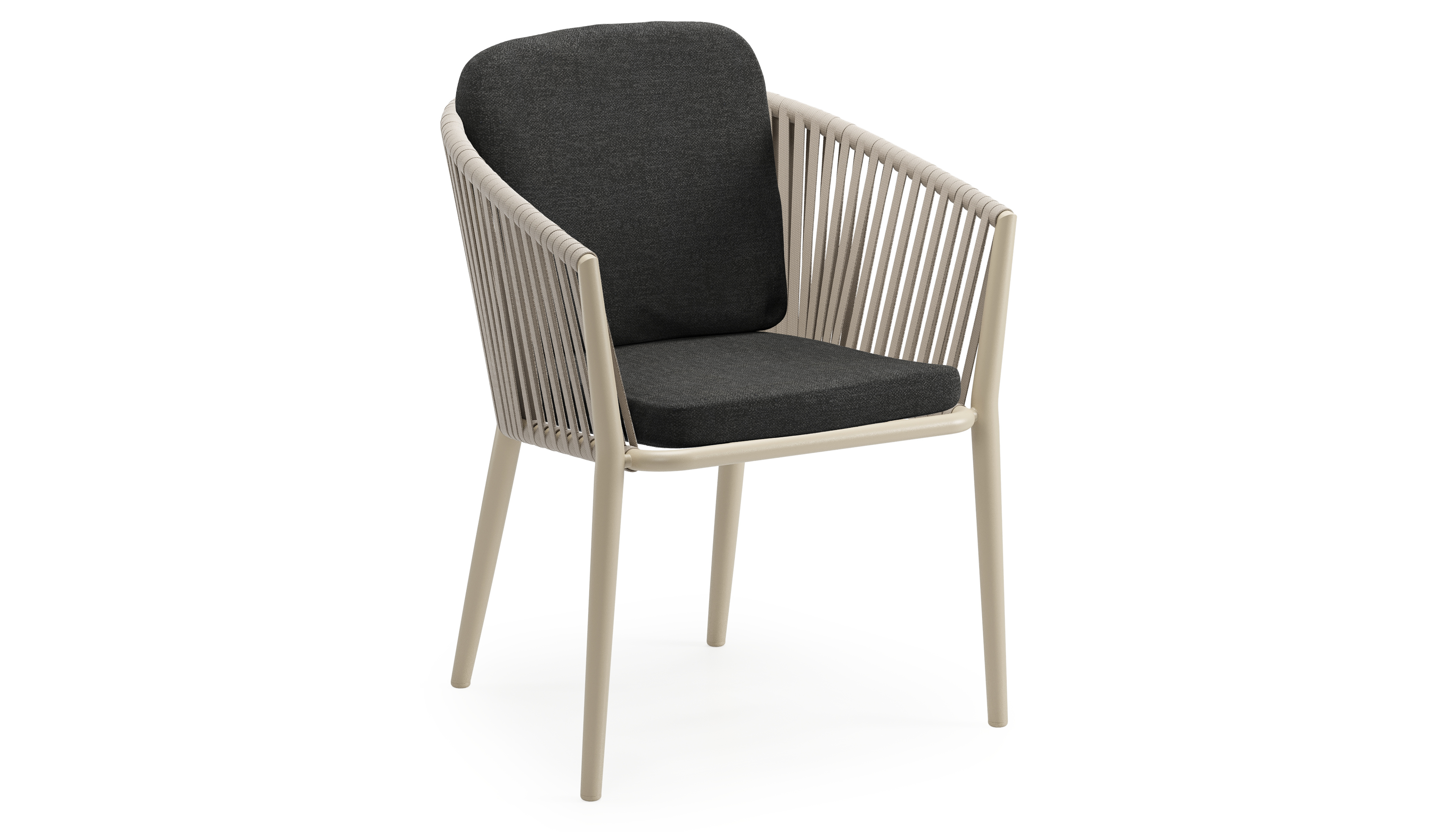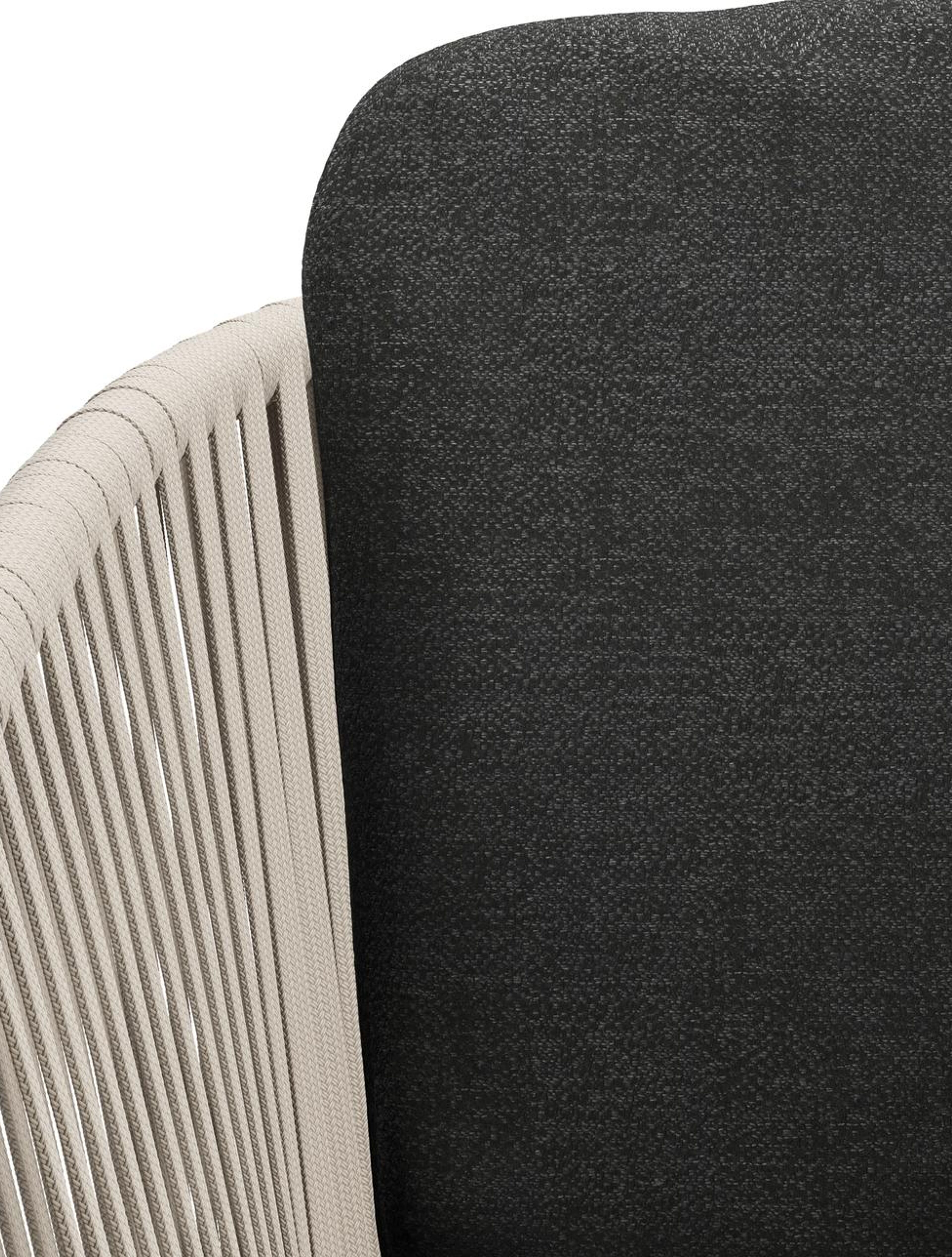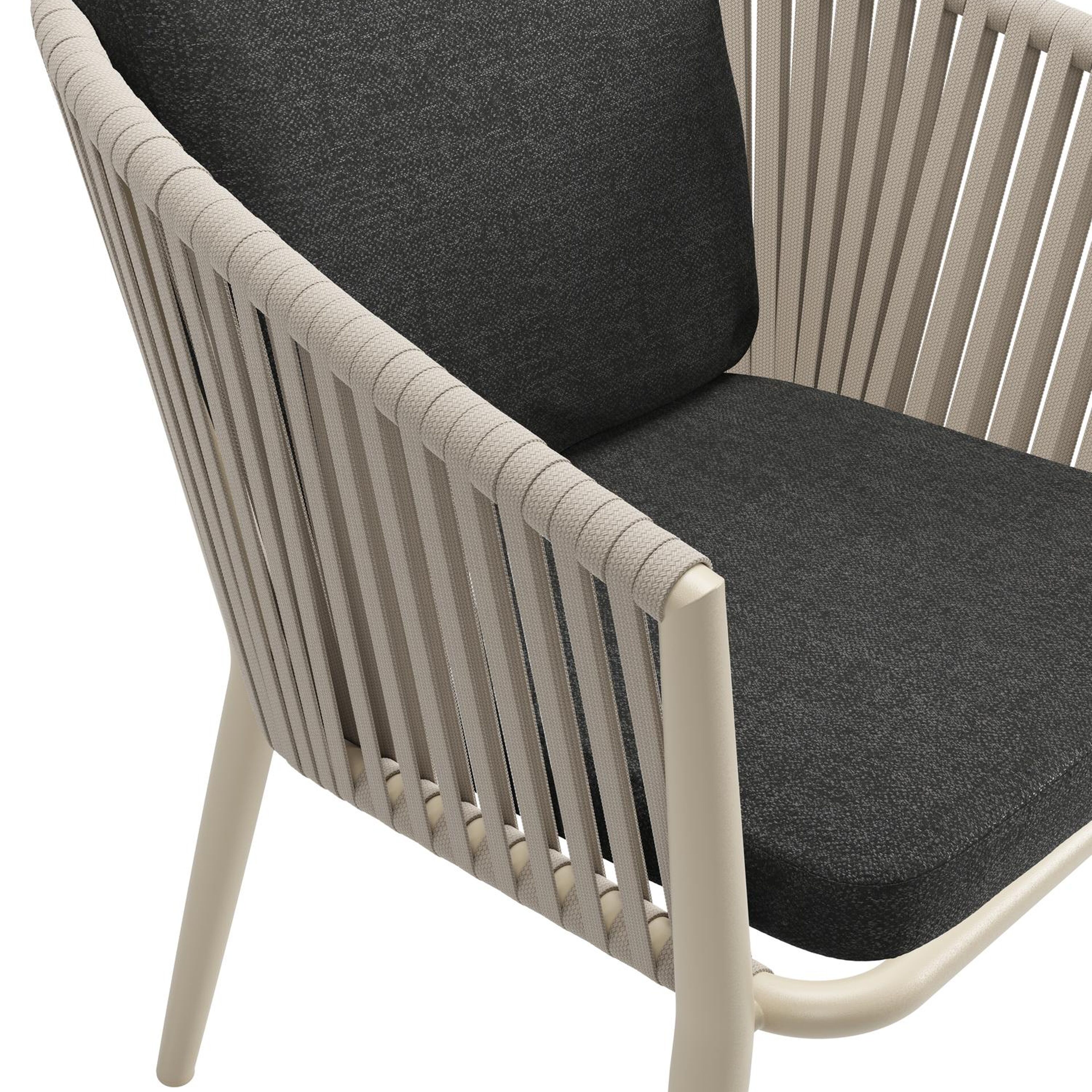 Chaise de jardin Orso en aluminium beige et corde plate tissée verticalement beige avec coussin luxe en All Weather Sunbrella® Luxe Chartres Sooty | Exterioo mobilier de jardin