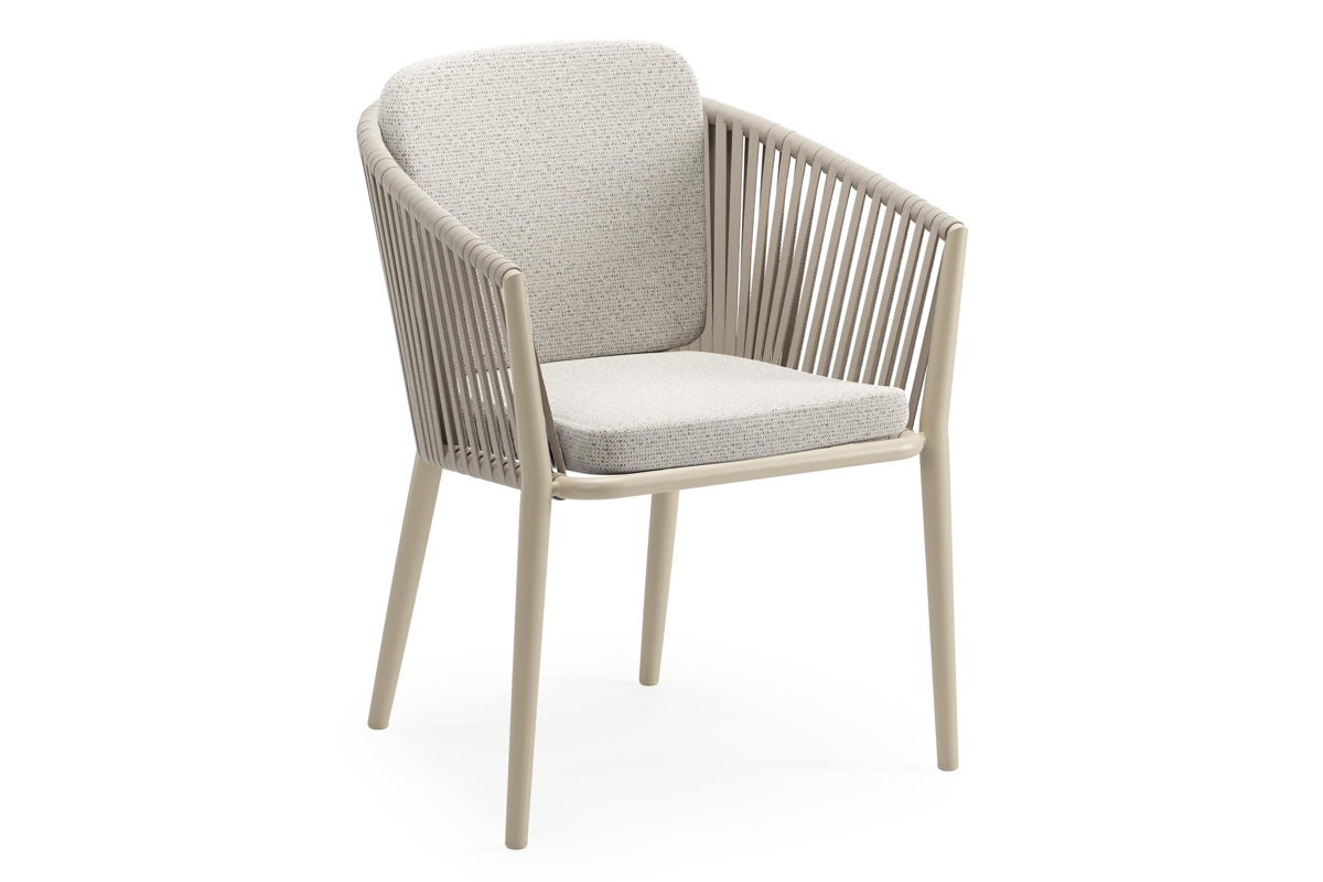 Chaise de jardin Orso en aluminium beige et corde plate tissée verticalement beige avec coussin en All Weather Solica Firenze Natural | Exterioo