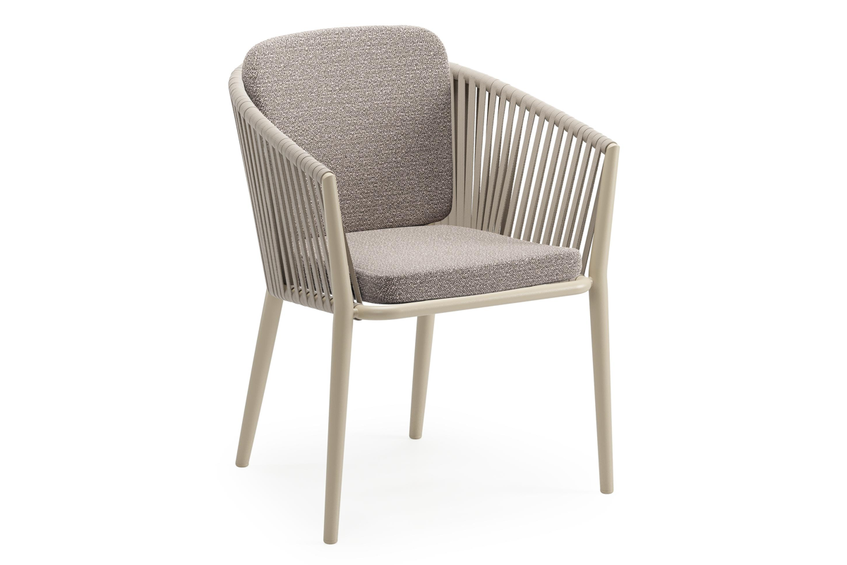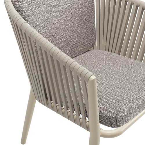Chaise de jardin Orso en aluminium beige et corde plate tissée verticalement beige avec coussin en All Weather Sunbrella® Luxe Wander Granite | Exterioo