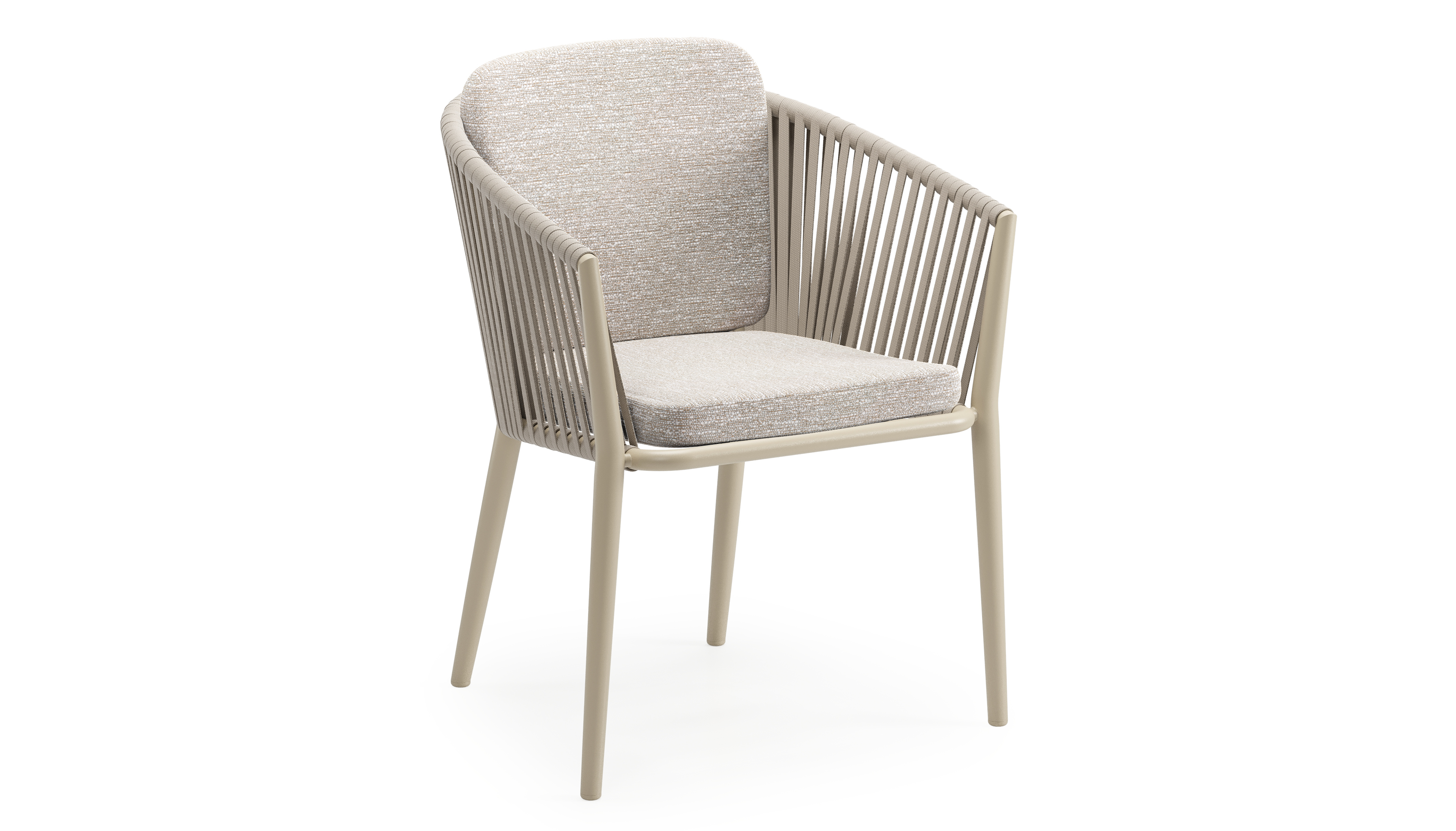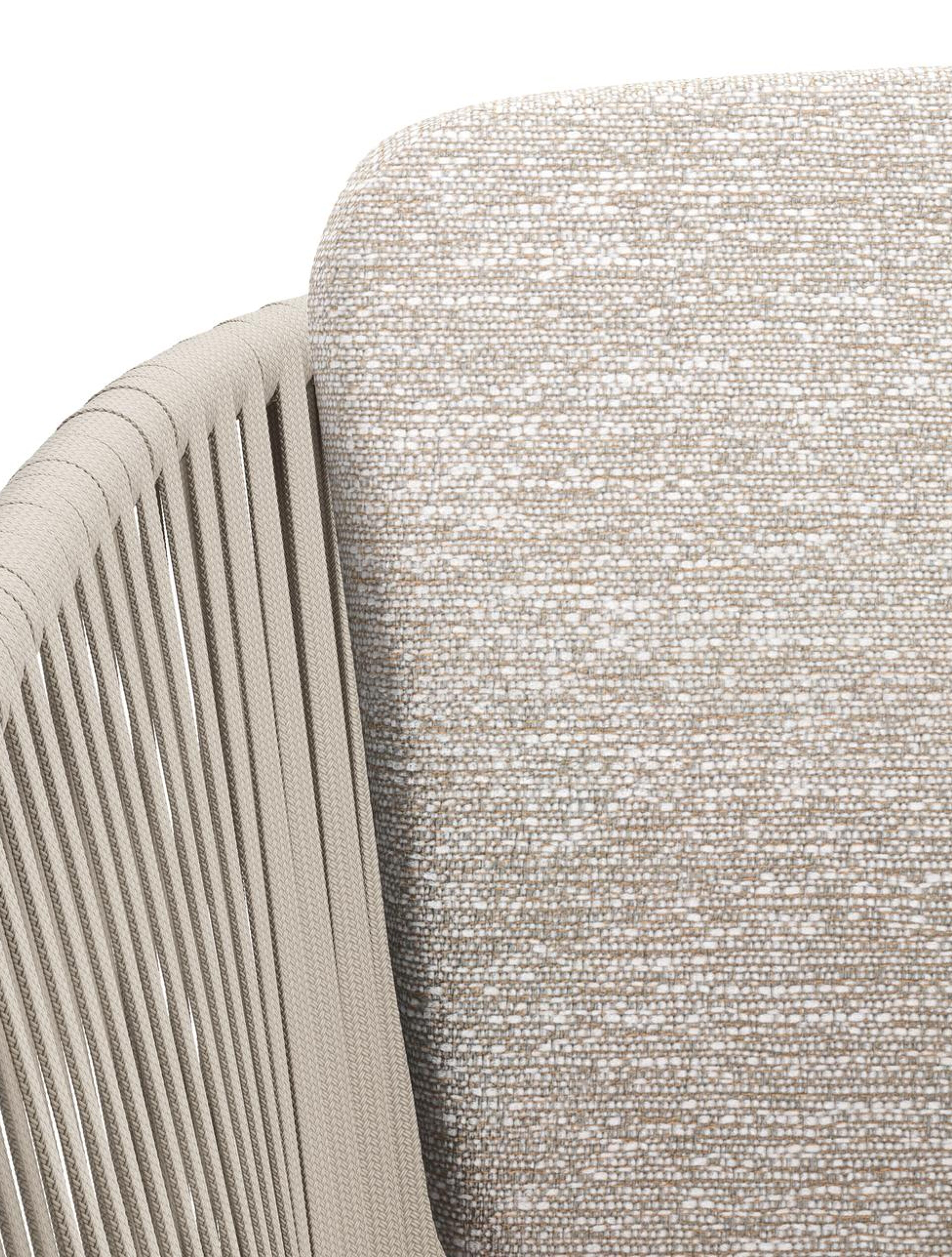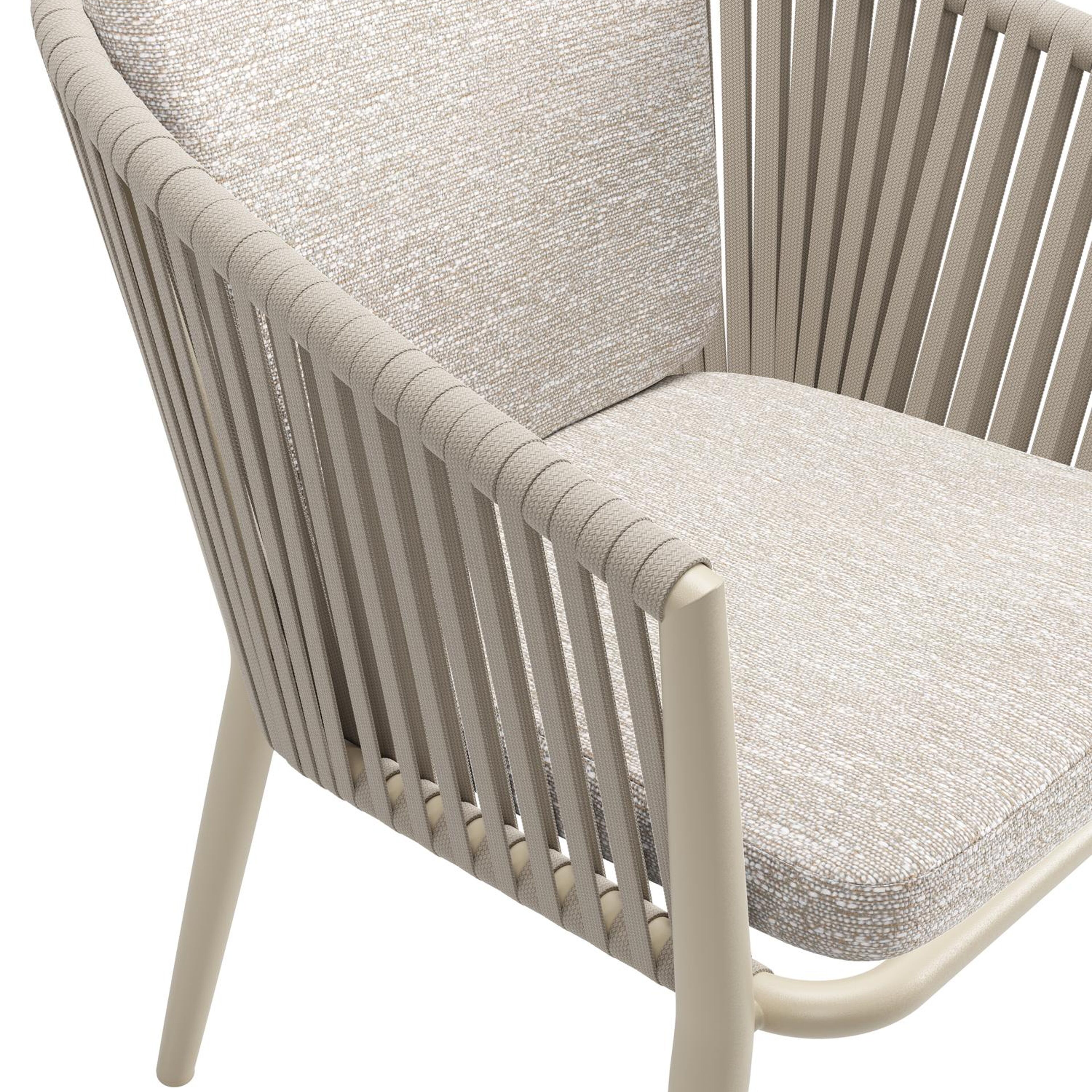 Chaise de jardin Orso en aluminium beige et corde plate tissée verticalement beige avec coussin en All Weather Sunbrella® Luxe Tundra Sand | Exterioo mobilier de jardin