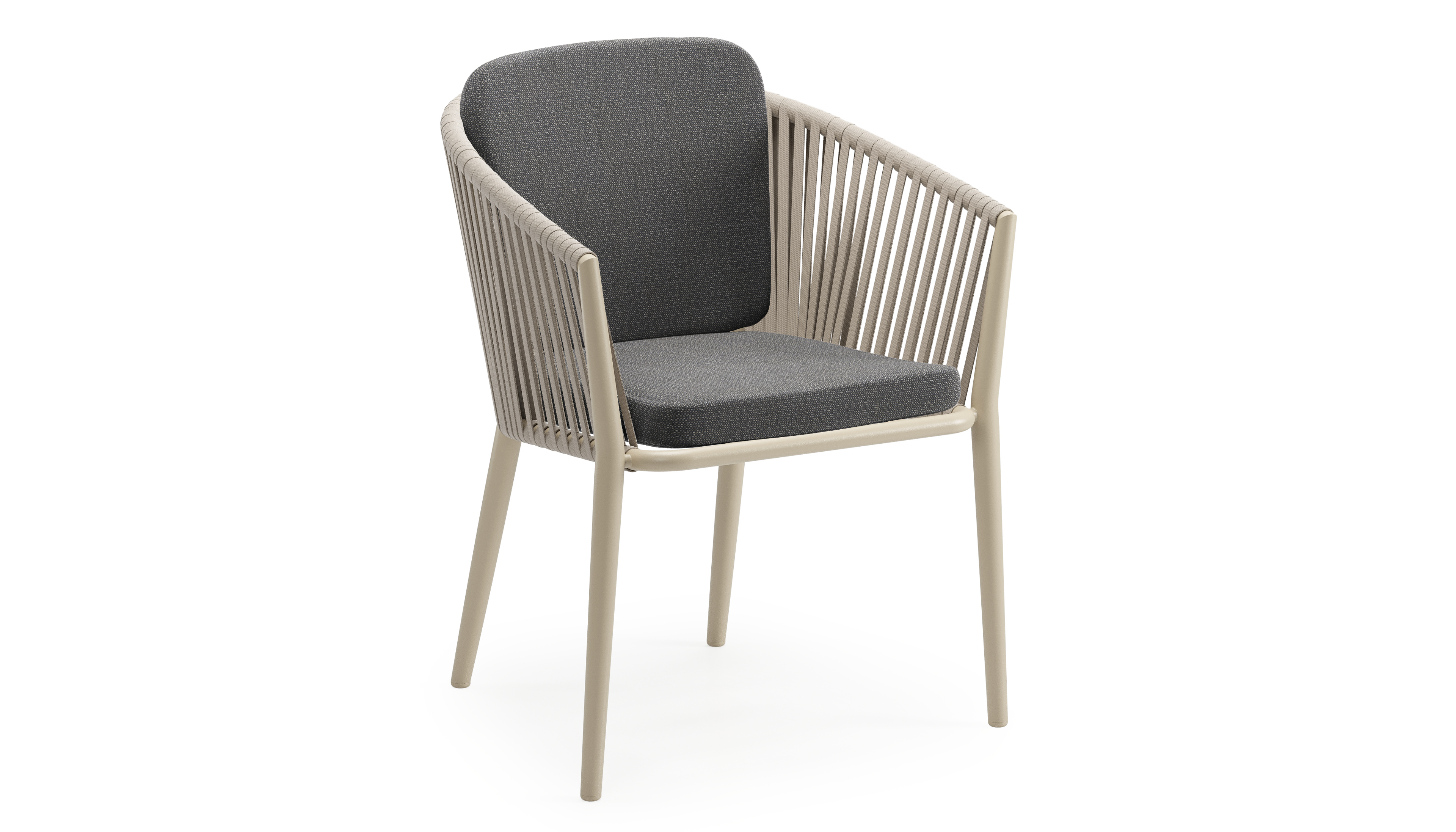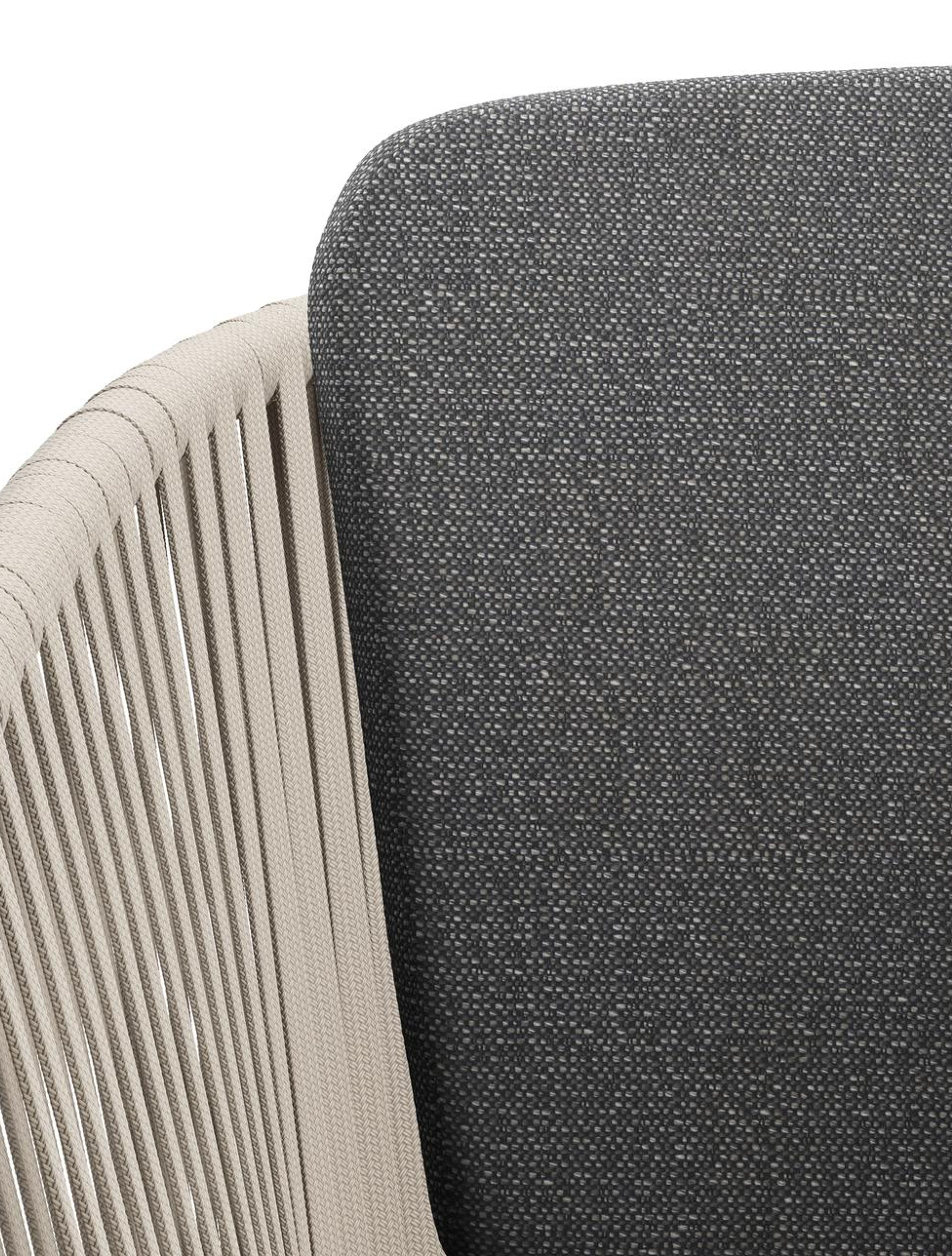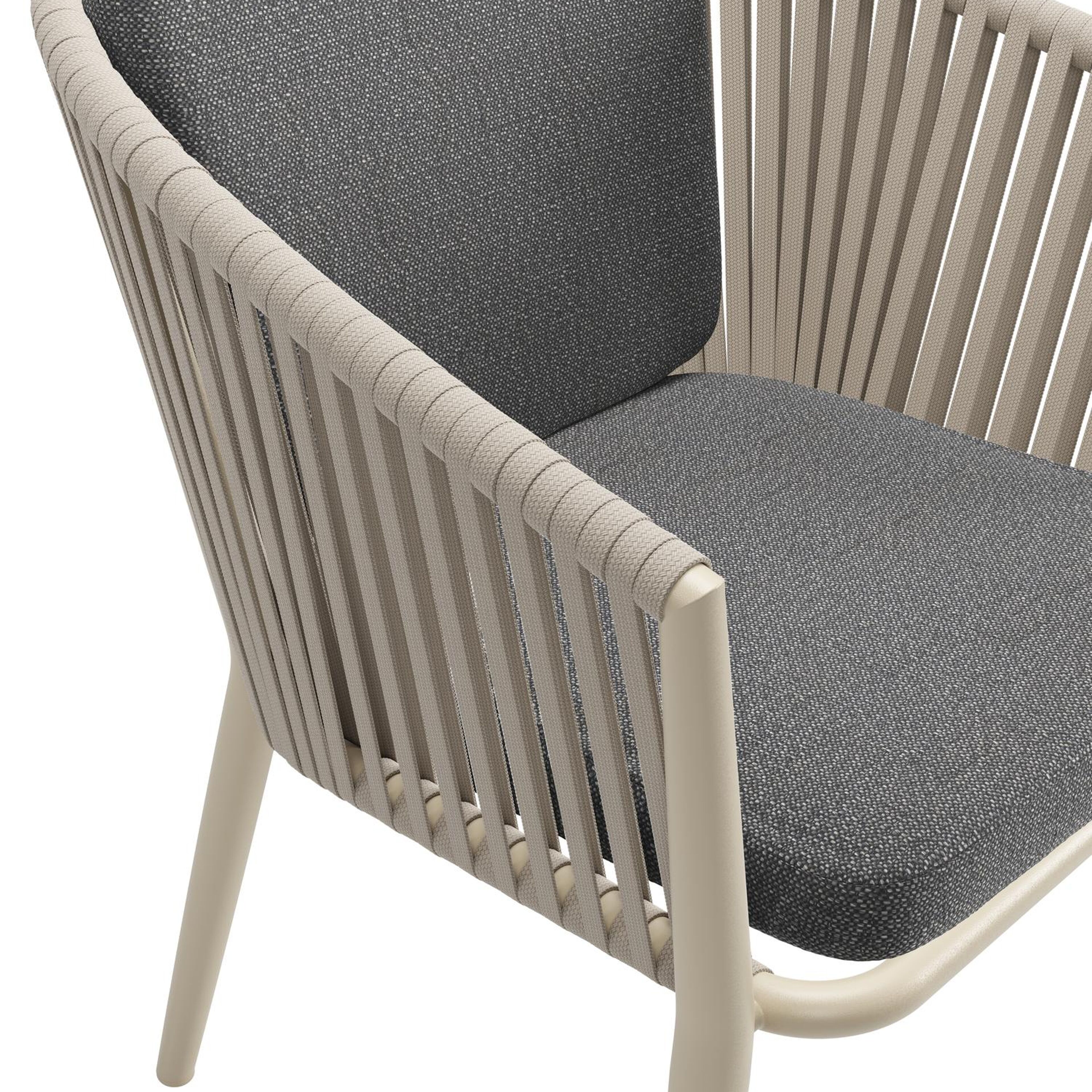 Chaise de jardin Orso en aluminium beige et corde plate tissée verticalement beige avec coussin en All Weather Sunbrella® Luxe Savane Tornado | Exterioo mobilier de jardin