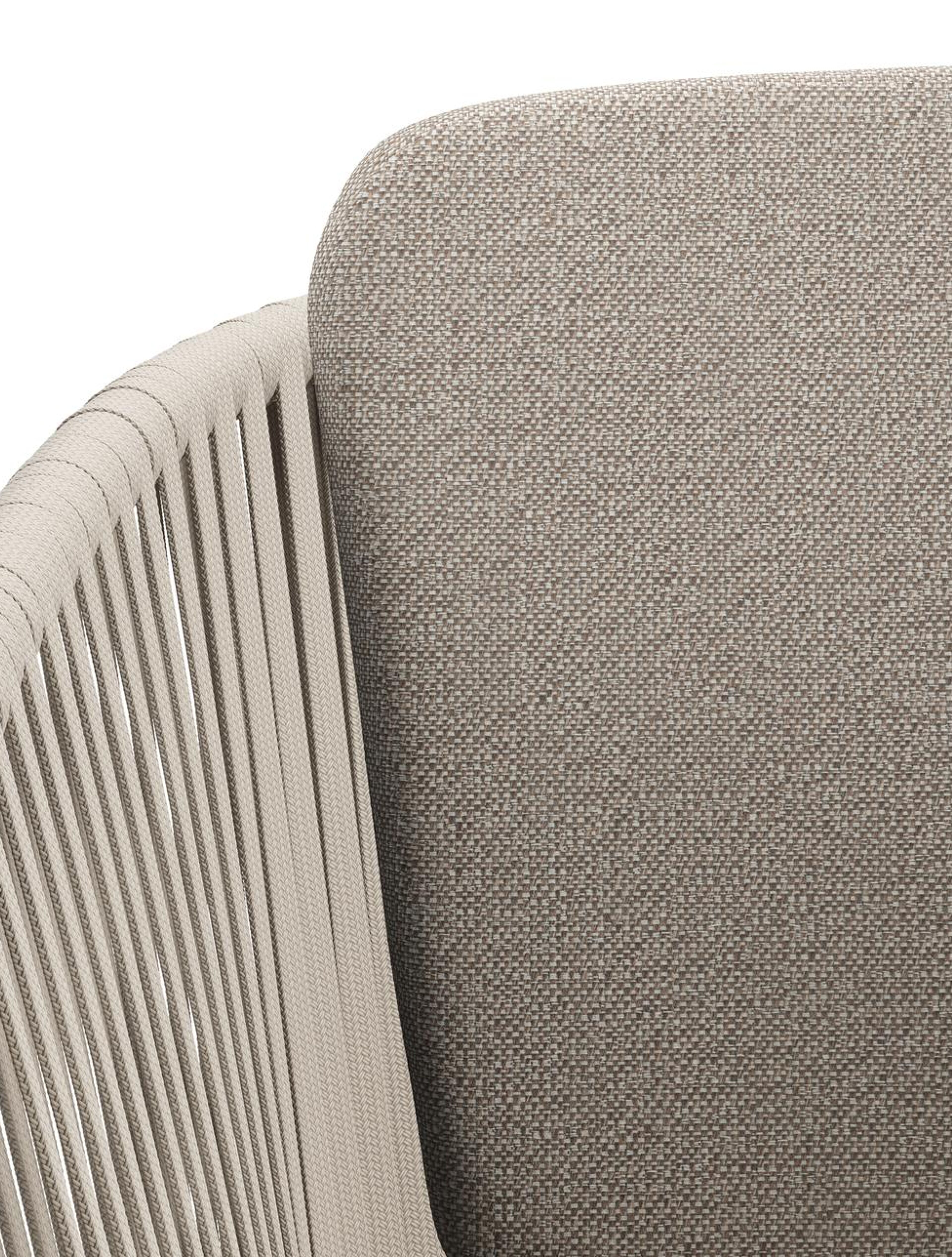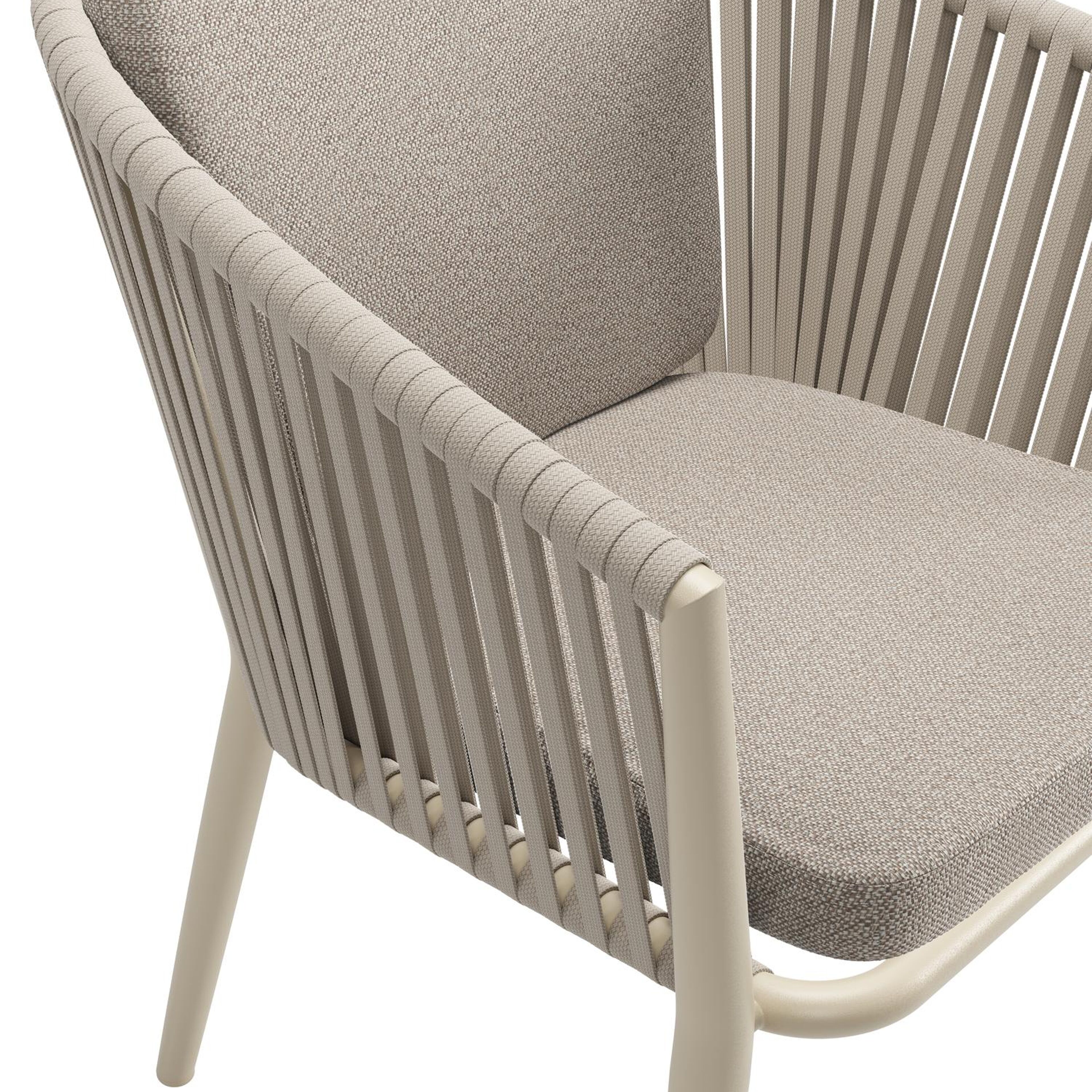 Chaise de jardin Orso en aluminium beige et corde plate tissée verticalement beige avec coussin en All Weather Sunbrella® Luxe Savane Coconut | Exterioo mobilier de jardin