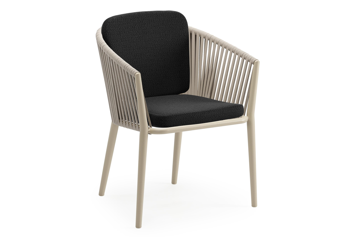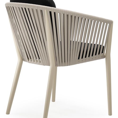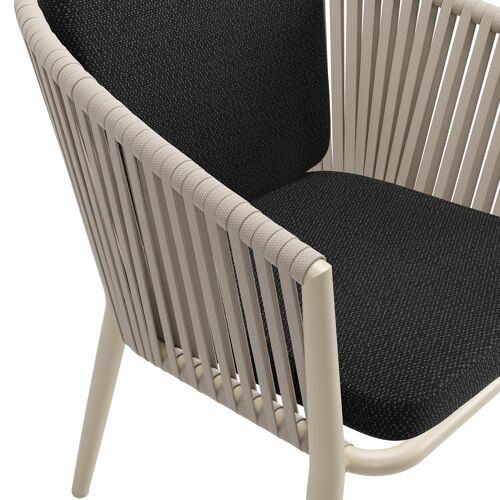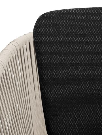 Chaise de jardin Orso en aluminium beige et corde plate tissée verticalement beige avec coussin en All Weather Sunbrella® Luxe Lopi Baribal | Exterioo