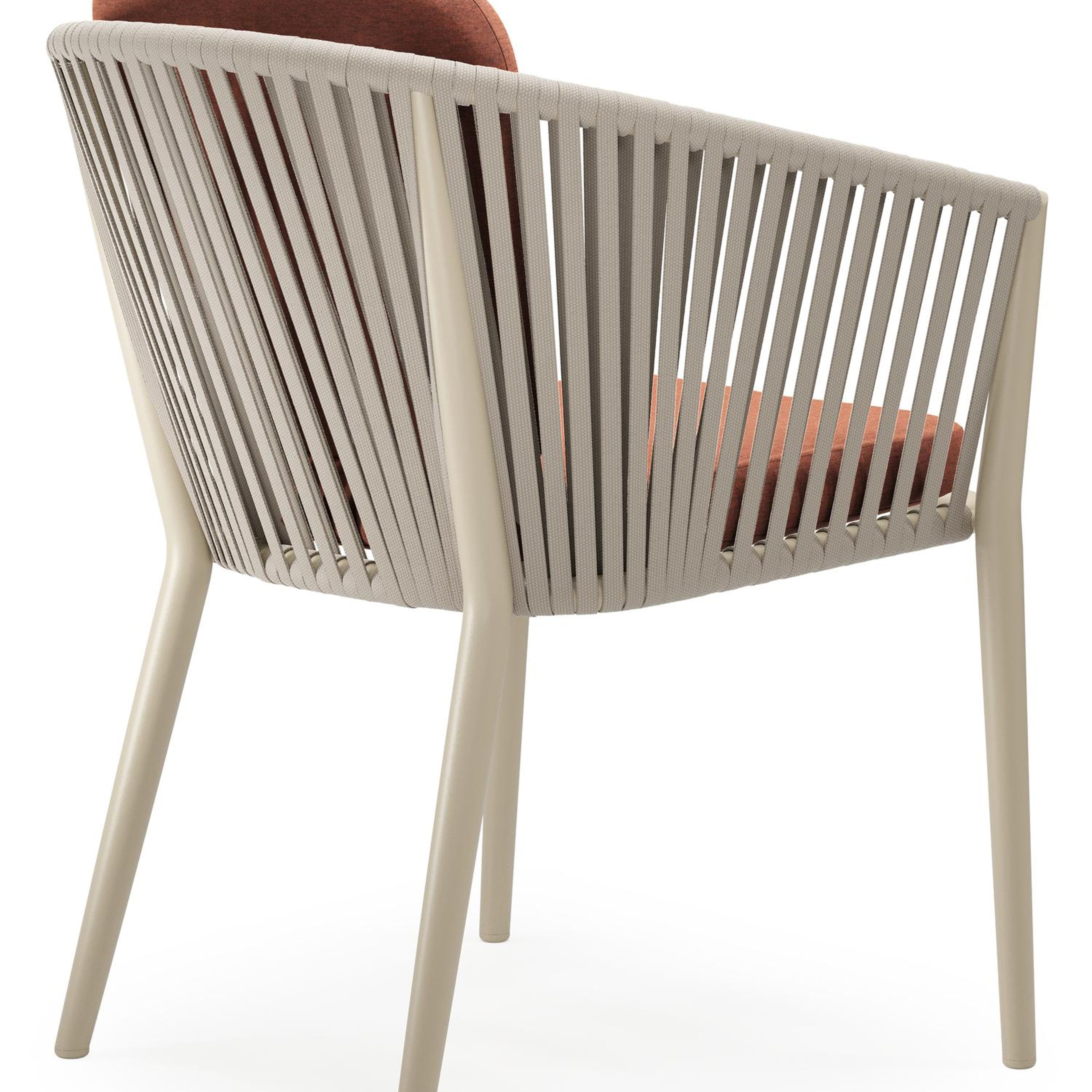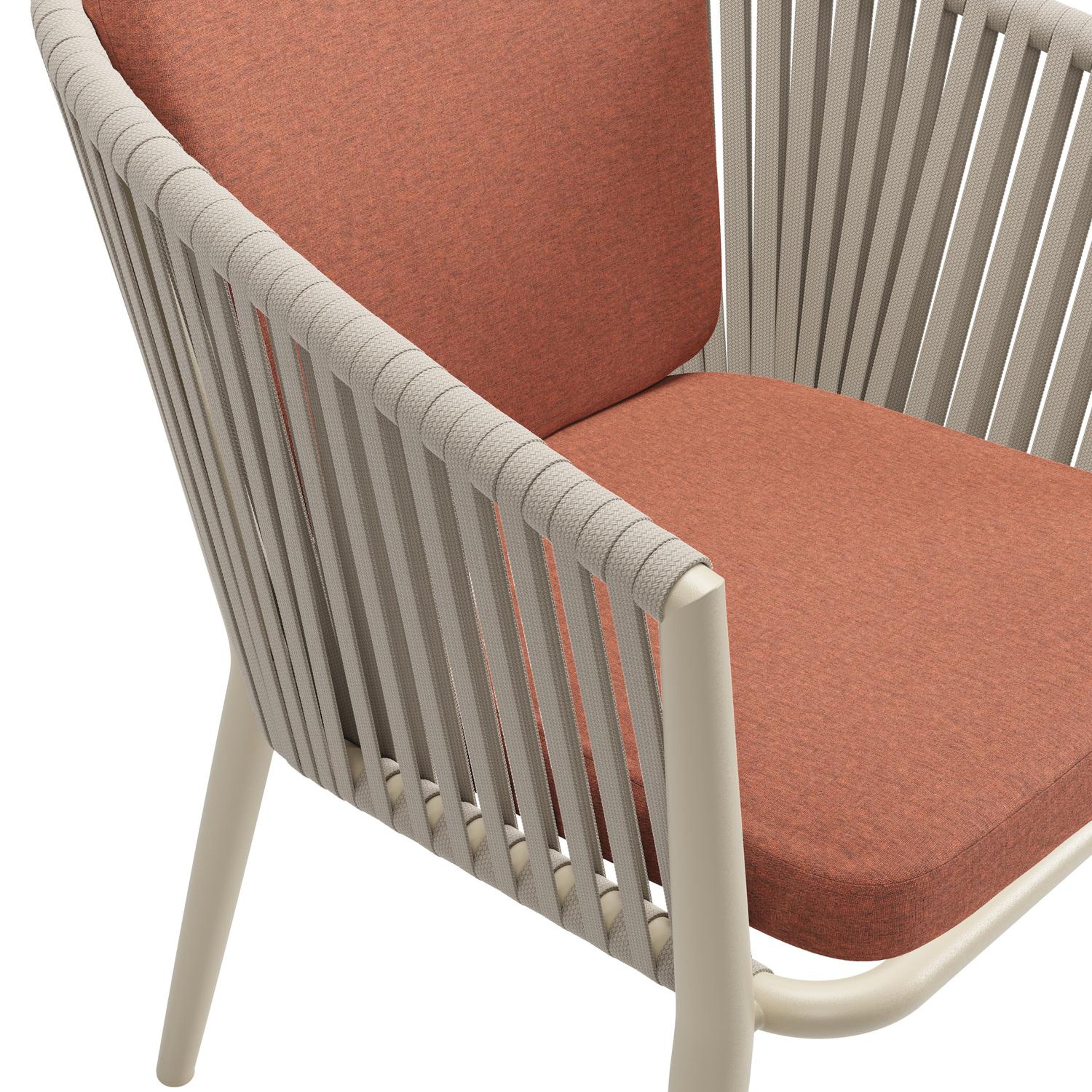 Chaise de jardin Orso en aluminium beige et corde plate tissée verticalement beige avec coussin en All Weather Sunbrella® Luxe Heritage Rust | Exterioo mobilier de jardin