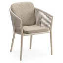 Chaise de jardin Orso en aluminium ruby et corde ronde tissée verticalement ruby avec coussin luxe en All Weather Cosytica Bora Jungle | Exterioo mobilier de jardin