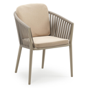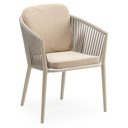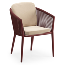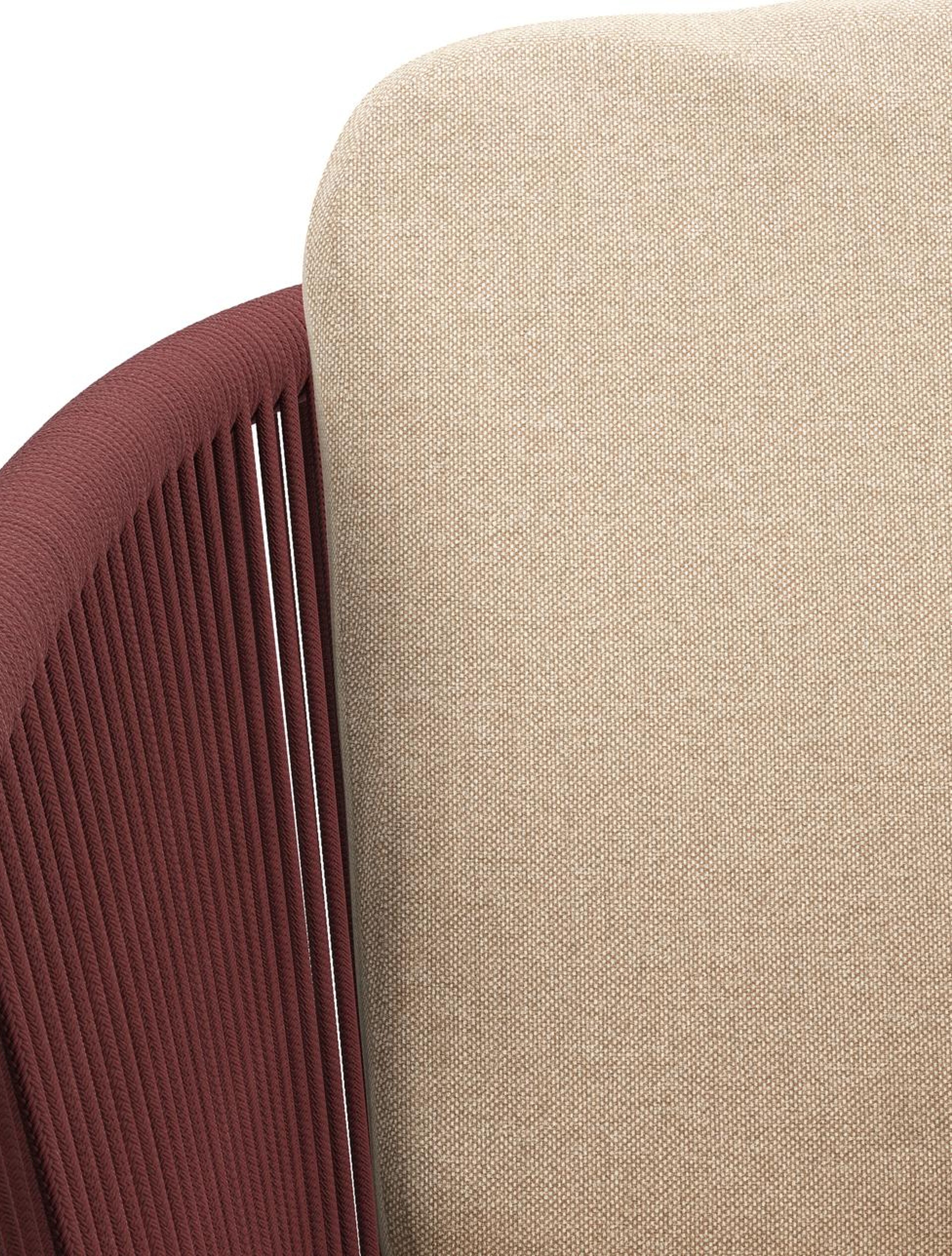 Chaise de jardin Orso en aluminium ruby et corde ronde tissée verticalement ruby avec coussin luxe en All Weather Sunbrella® Luxe Natte Heather Beige | Exterioo mobilier de jardin