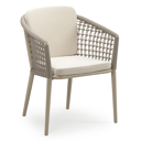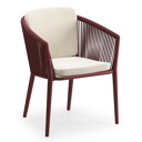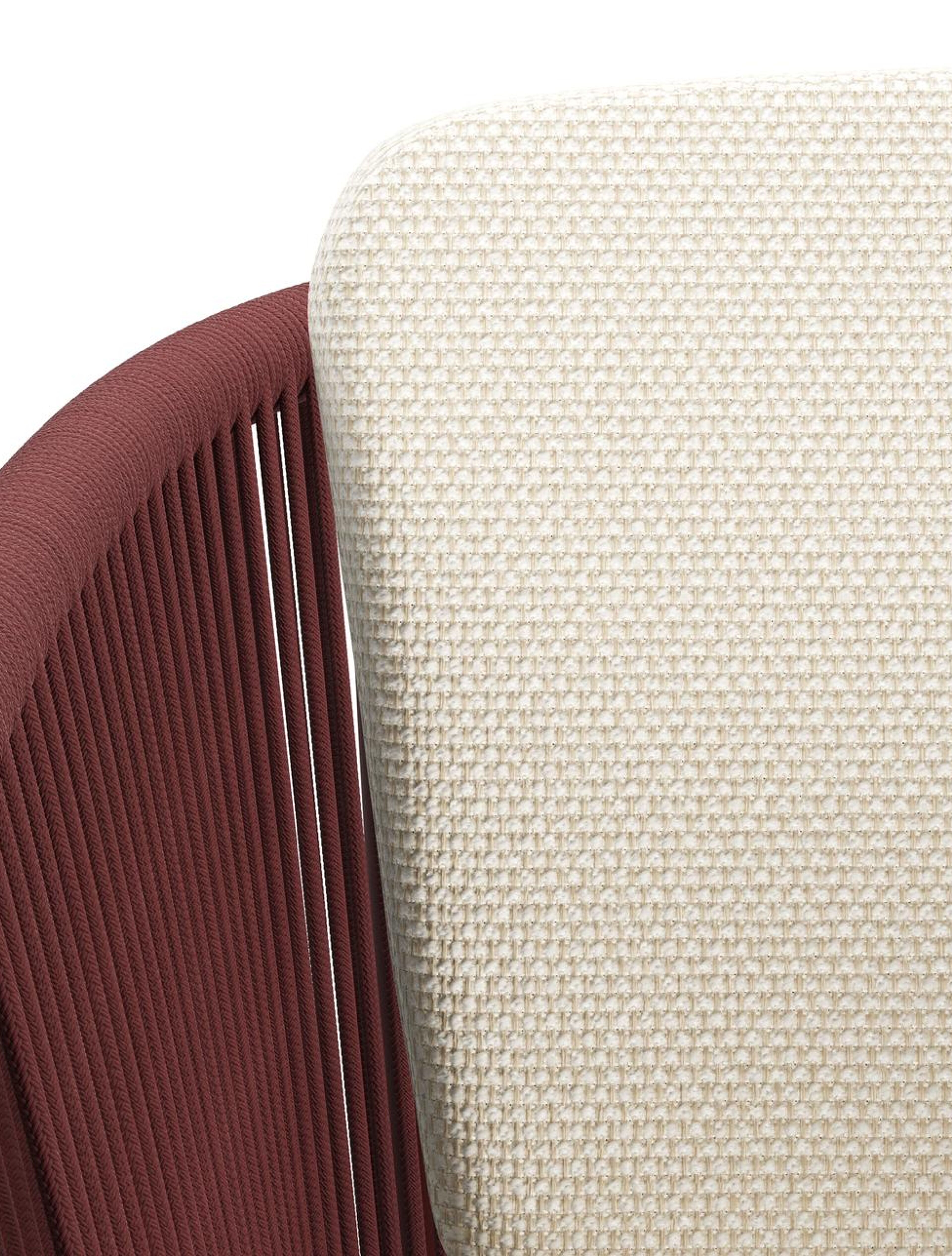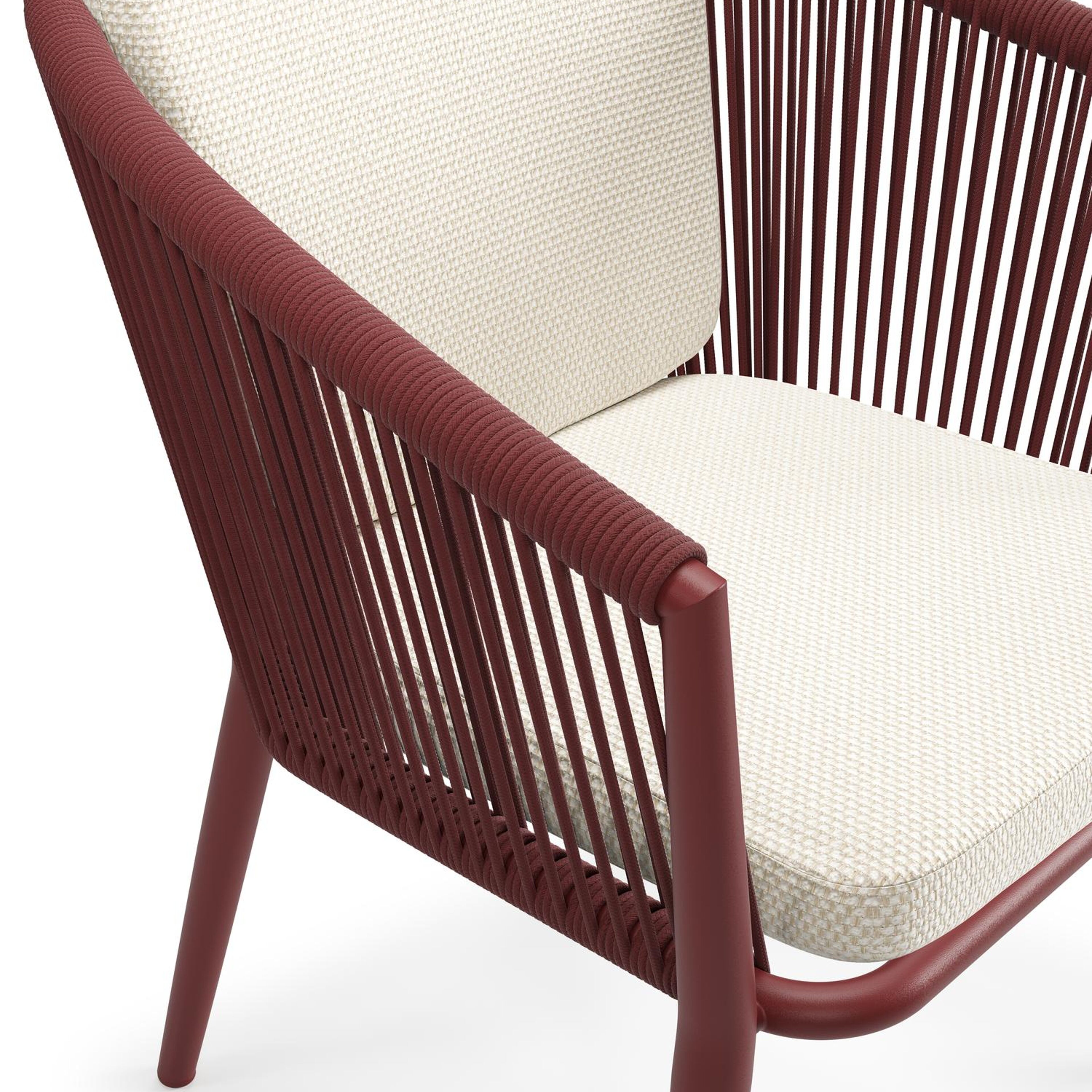 Chaise de jardin Orso en aluminium ruby et corde ronde tissée verticalement ruby avec coussin en All Weather Cosytica Althea Off White | Exterioo mobilier de jardin