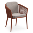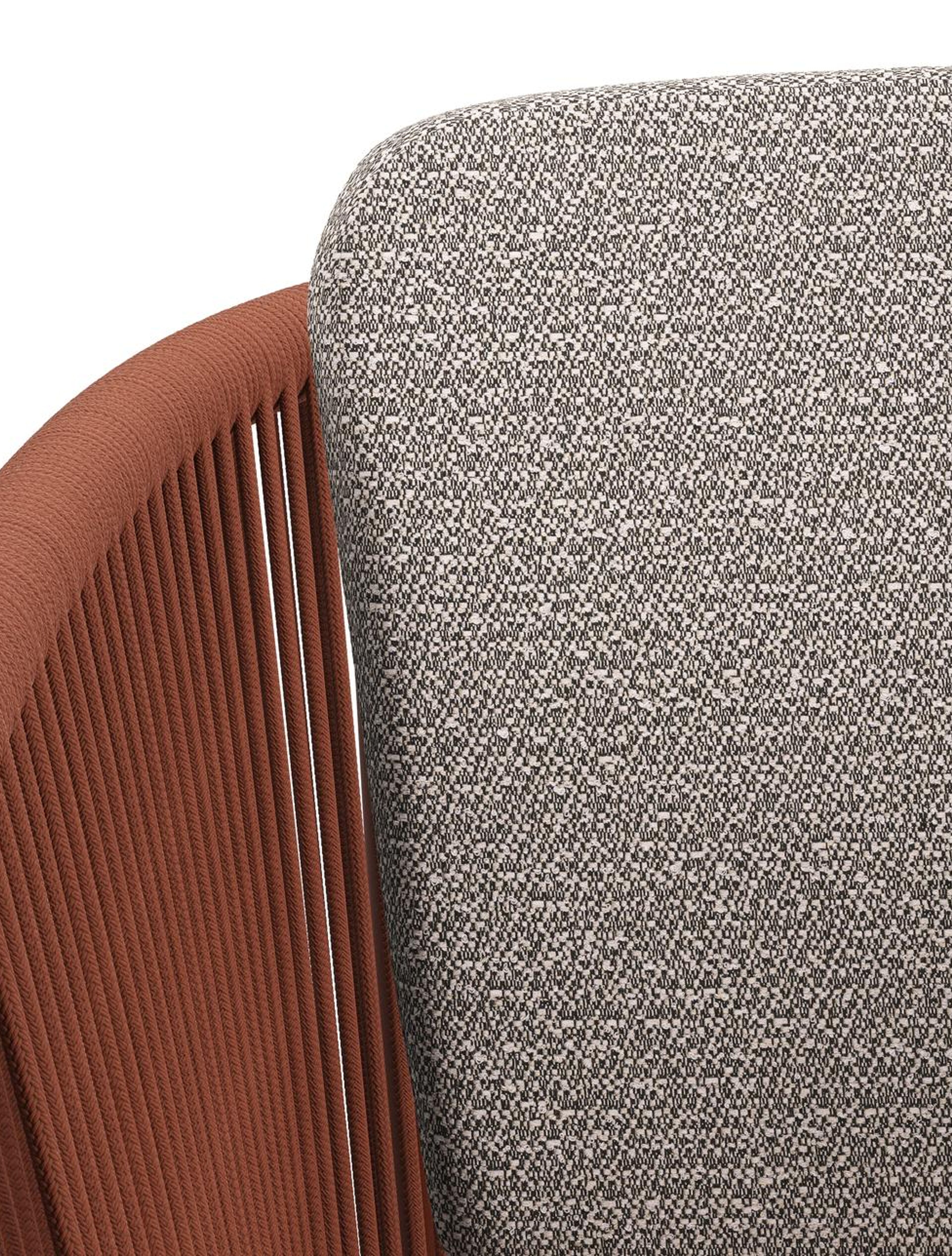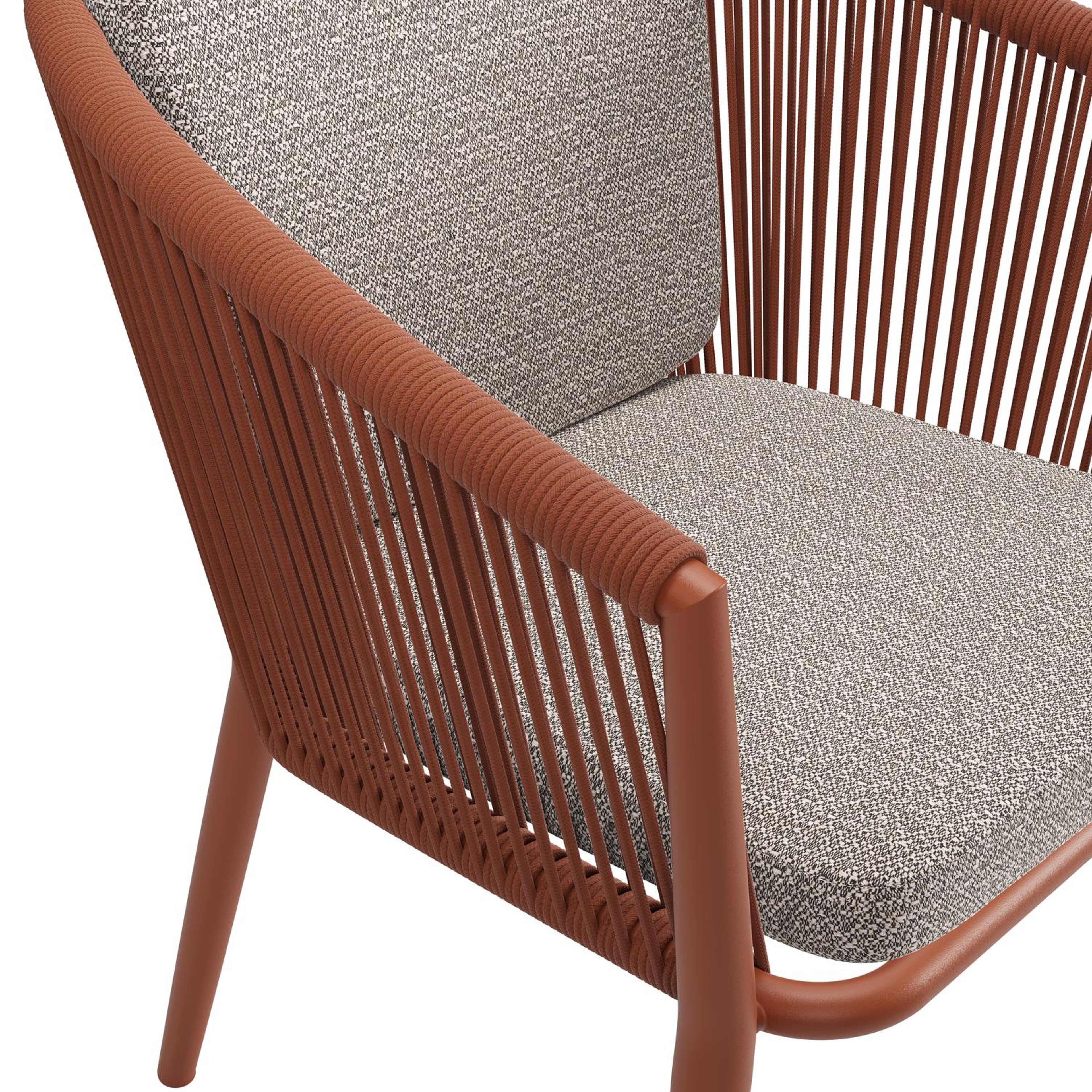 Chaise de jardin Orso en aluminium brun rouille et corde ronde tissée verticalement brun rouille avec coussin en All Weather Sunbrella® Luxe Wander Granite | Exterioo mobilier de jardin
