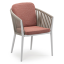 Chaise de jardin Orso en aluminium beige et corde ronde tissée verticalement beige avec coussin luxe en All Weather Sunbrella® Luxe Slow Alezan | Exterioo mobilier de jardin