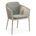 Chaise de jardin Orso en aluminium vert et corde ronde tissée verticalement vert avec coussin en All Weather Sunbrella® Luxe Savane Leaf | Exterioo mobilier de jardin