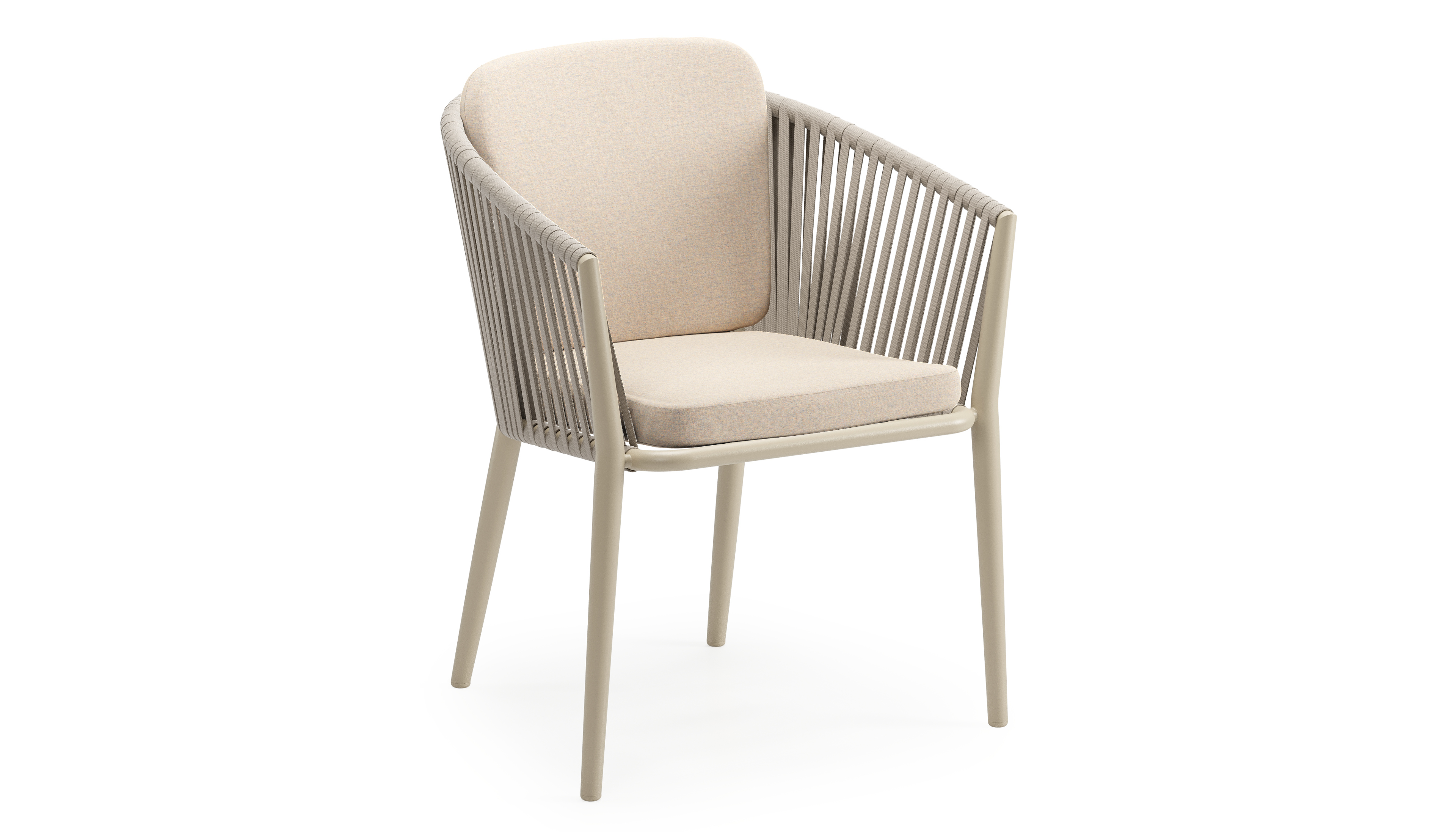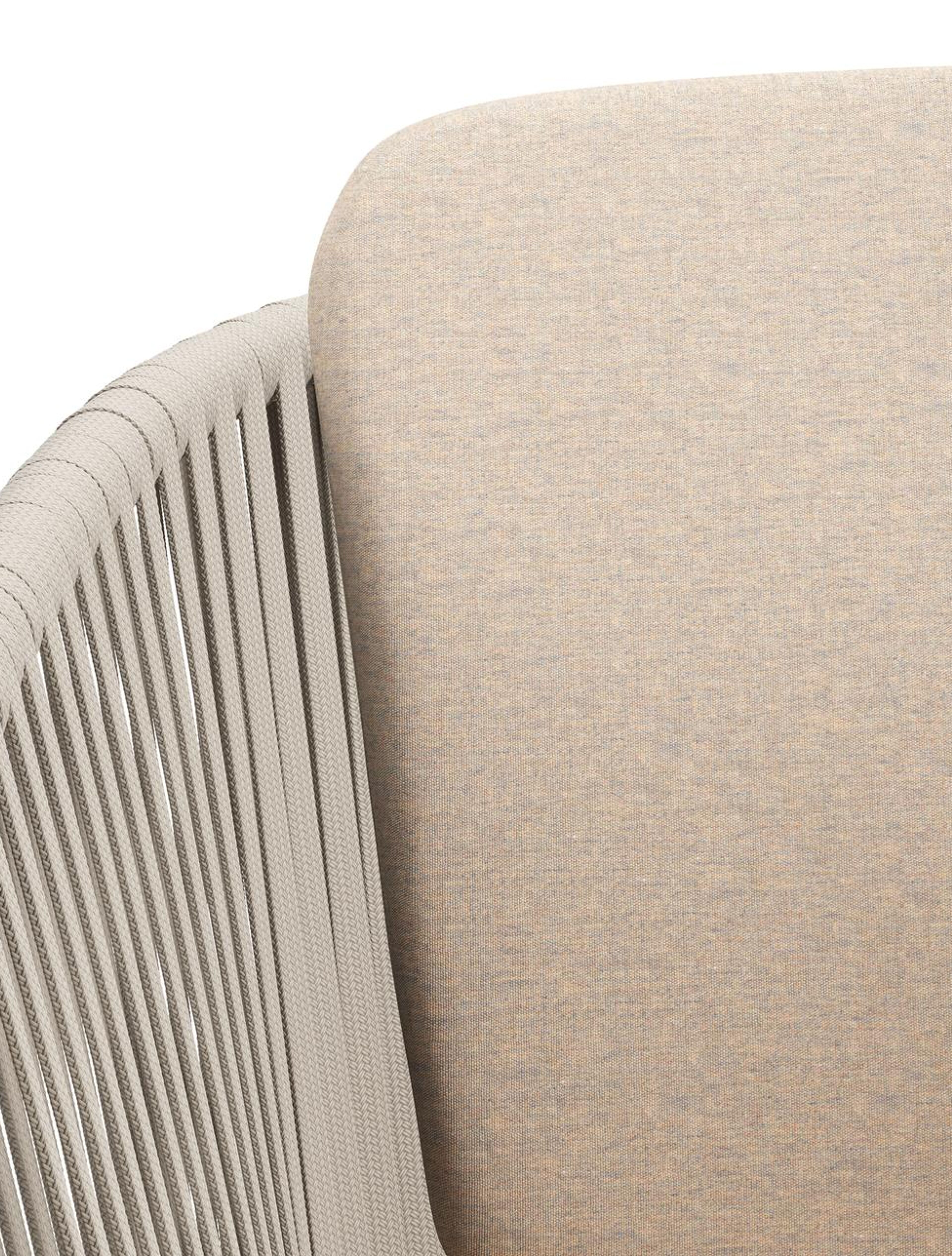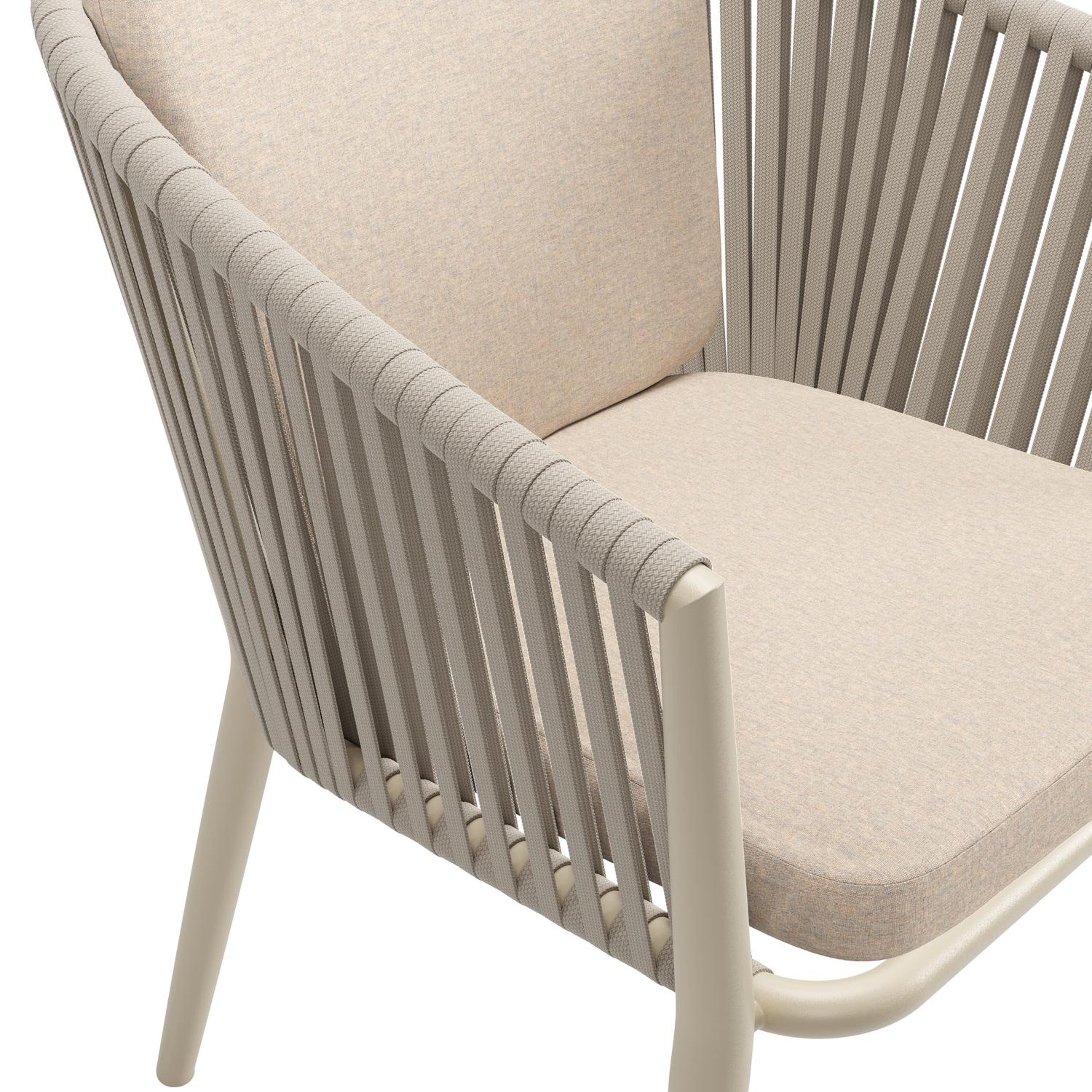 Chaise de jardin Orso en aluminium beige et corde plate tissée verticalement beige avec coussin All Weather Sunbrella® Luxe Heritage Papyrus | Exterioo mobilier de jardin