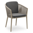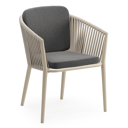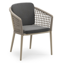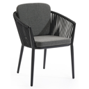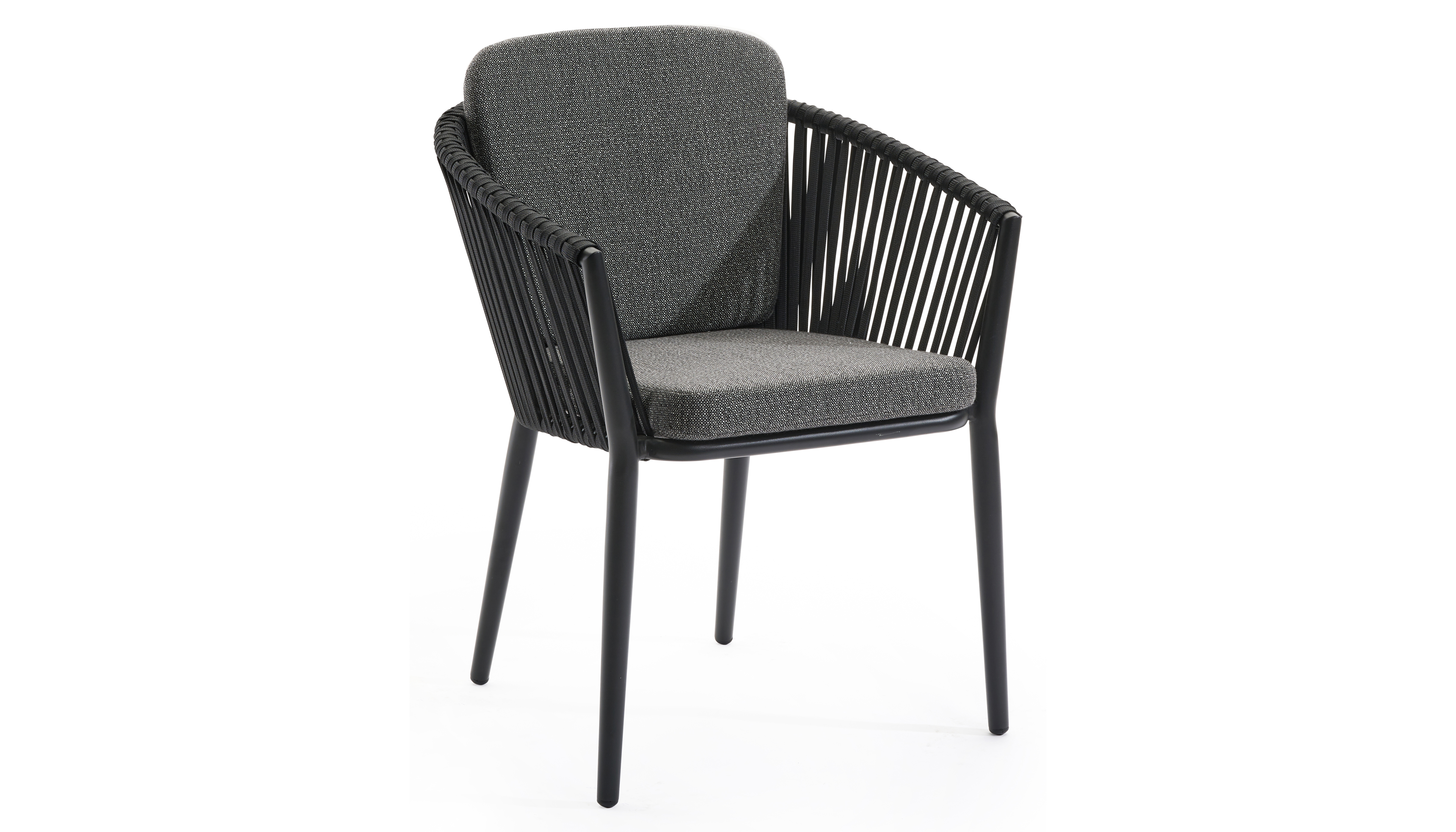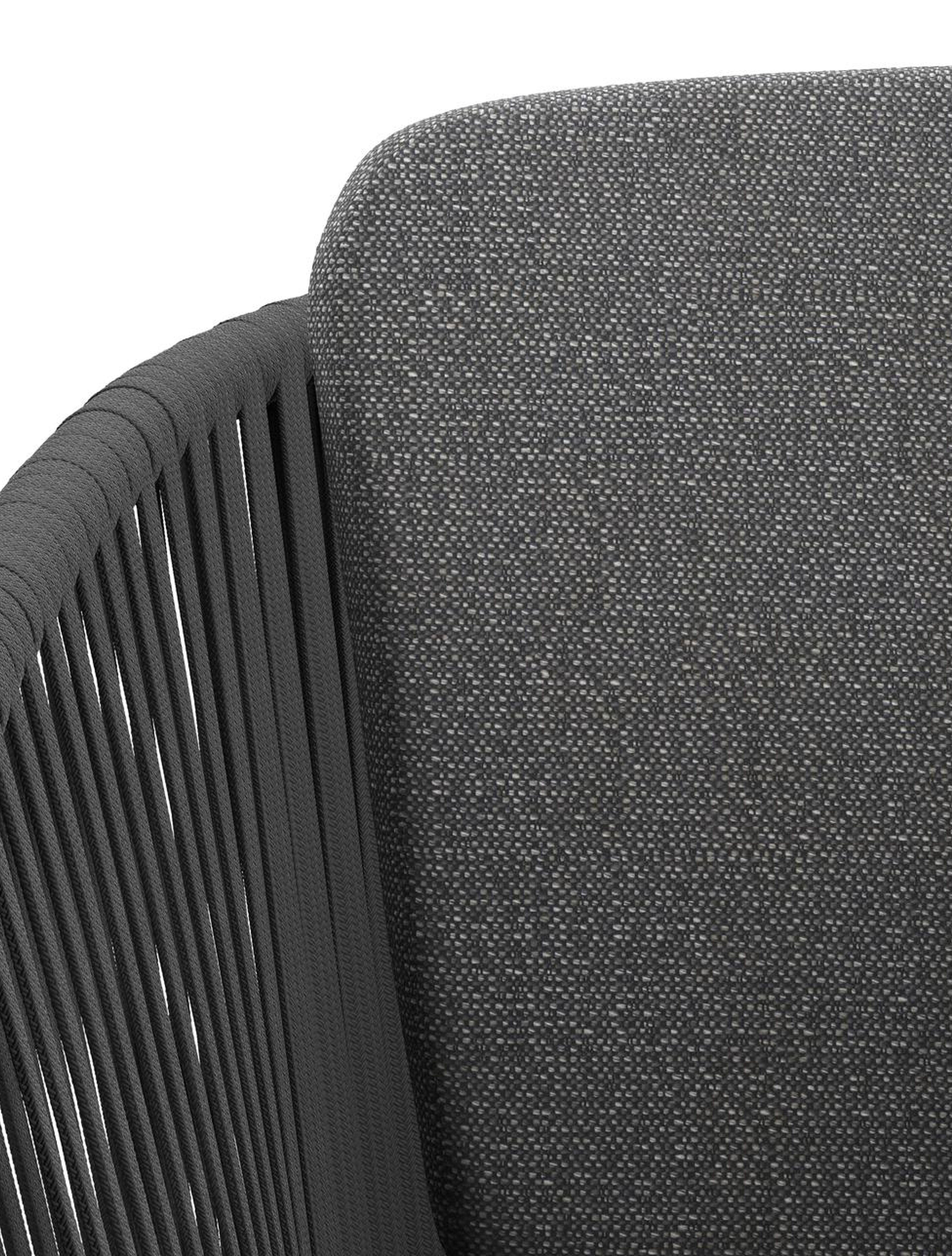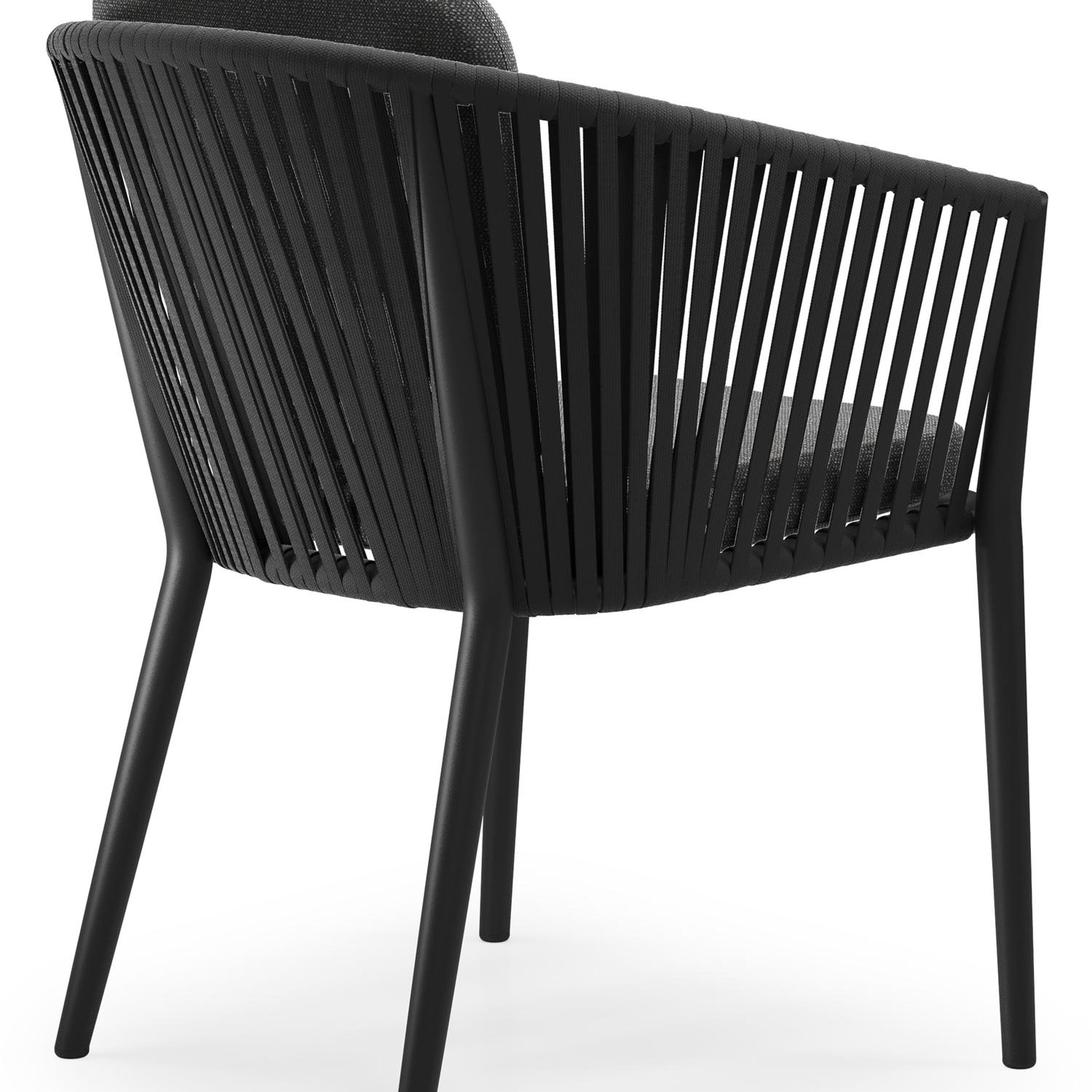 Orso tuinstoel in zwart aluminium en zwart verticaal geweven vlakke rope met kussen in savane tornado all weather sunbrella® luxe | Exterioo mobilier de jardin
