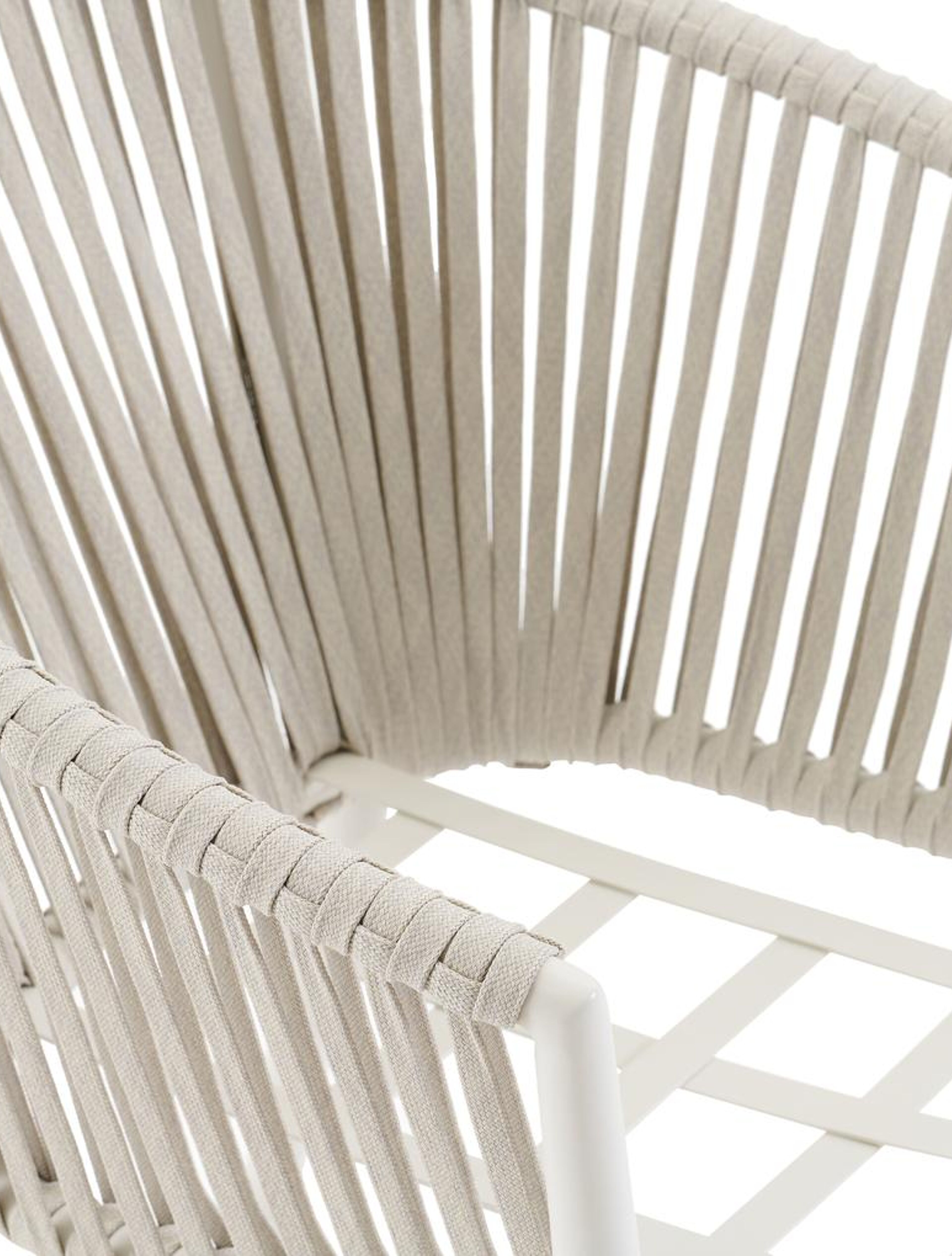 Cette chaise Orso attirera tous les regards dans votre jardin. Le piètement est en aluminium, ce qui le rend inoxydable. L'assise présente une finition en corde, qui crée un joli design. Les accoudoirs descendent légèrement.