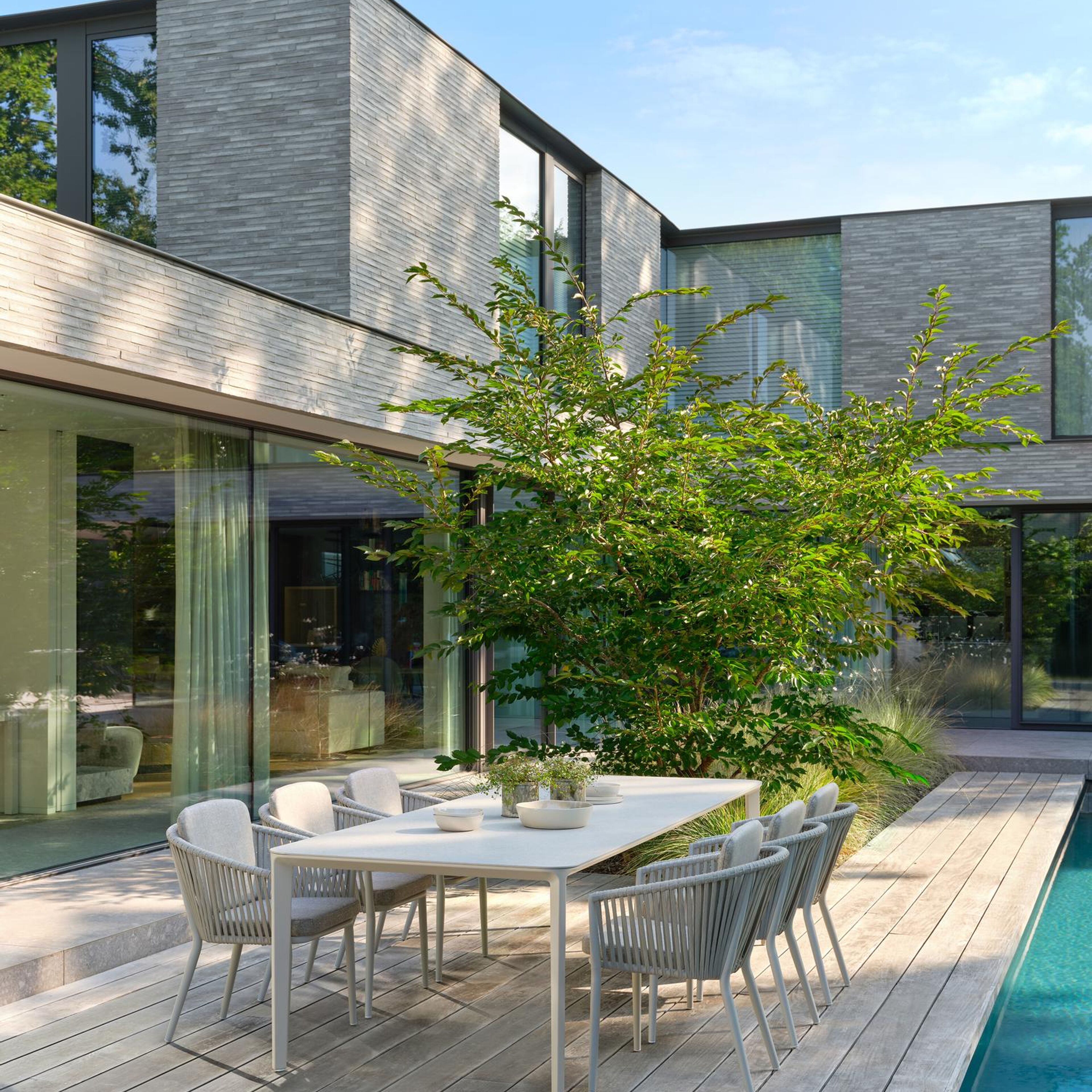 Moderne, élégante et accueillante. La collection Orso transforme votre espace extérieur grâce à un design doux et arrondi, ainsi qu’à des matériaux de haute qualité : aluminium, corde et teck certifié. Laissez-vous porter par les lignes ludiques du lounge Orso, alliez confort et élégance avec les tables de jardin Orso assorties et faites de votre jardin ou terrasse un lieu où il fait bon rêver. Orso associe raffinement et détente, offrant une expérience extérieure d’exception qui rend chaque moment en plein air unique.