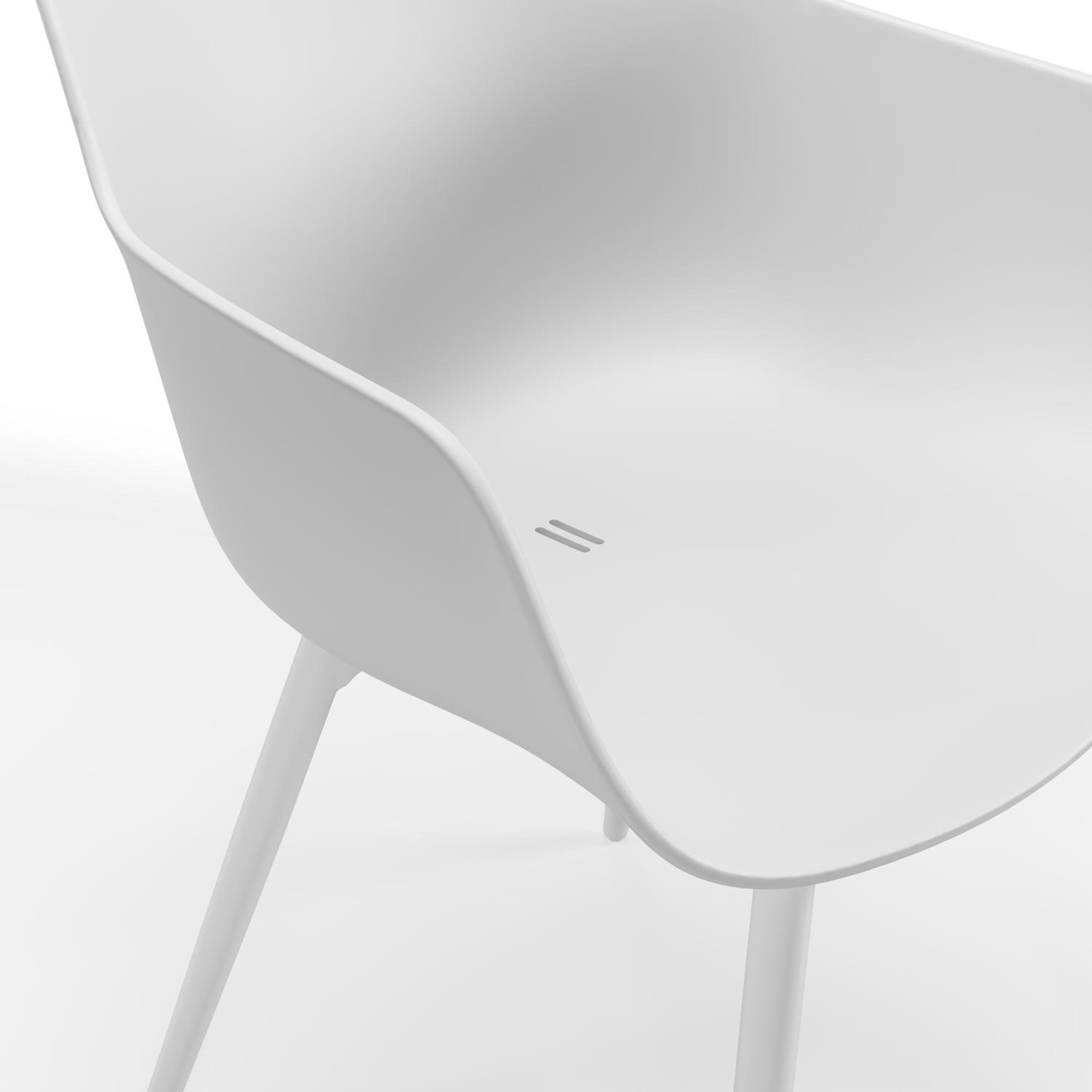 La chaise Paco est une chaise à coque avec des accoudoirs et un dossier plus hauts qui offrent un meilleur soutien. La chaise a des pieds élégants en aluminium inoxydable.