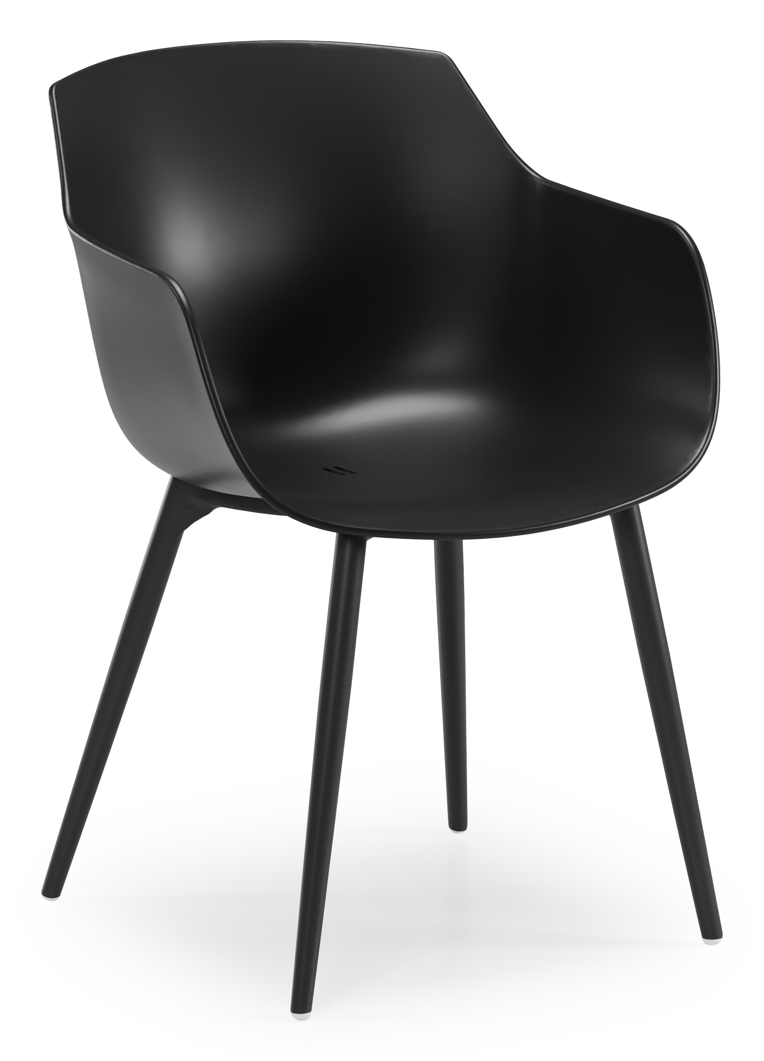 La chaise Paco est une chaise à coque avec des accoudoirs et un dossier plus hauts qui offrent un meilleur soutien. La chaise a des pieds élégants en aluminium inoxydable.