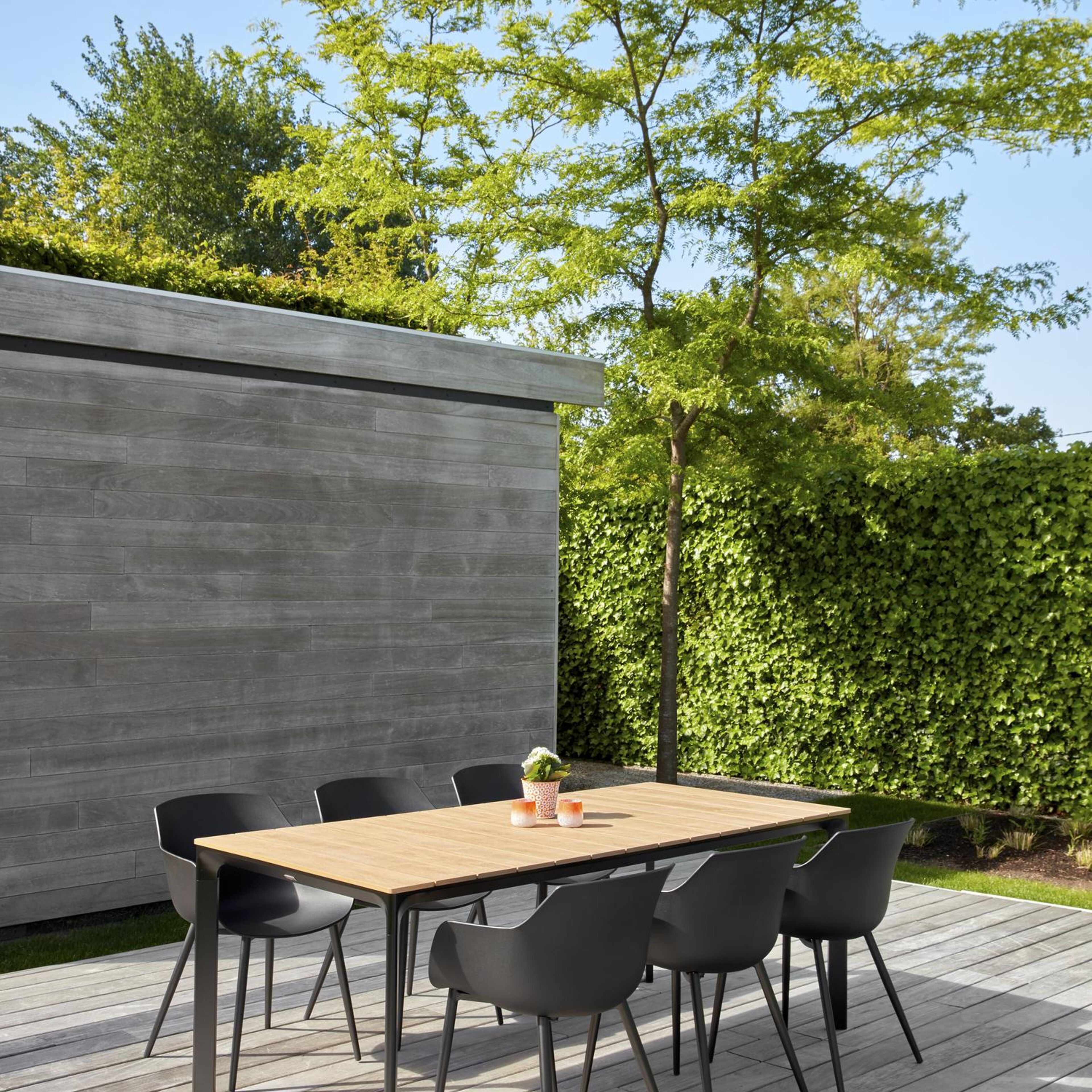 Aluminium est matériau inoxydable,robuste mais léger, qui est facile à déplacer. La surface présente une finition lisse, de sorte qu’elle n’attire pas la saleté et est facile à entretenir. Le revêtement poudré garantit en outre une résistance aux UV et aux intempéries.