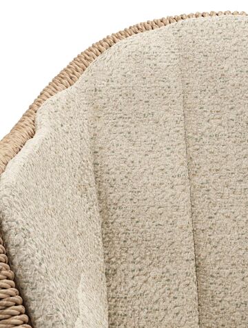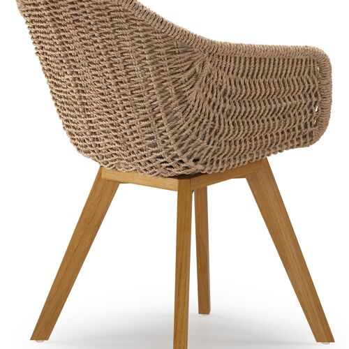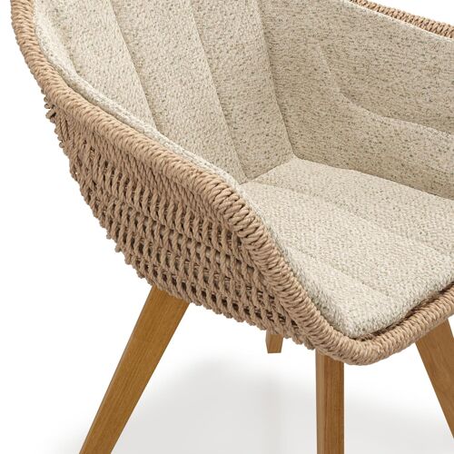 Chaise de jardin Pagino en teck naturel et résine tressée ronde naturel avec coussin en All Weather Cosytica Bora Forest | Exterioo