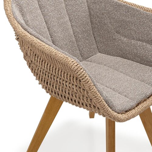 Chaise de jardin Pagino en teck naturel et résine tressée ronde naturel avec coussin en All Weather Sunbrella® Luxe Wander Manioc | Exterioo