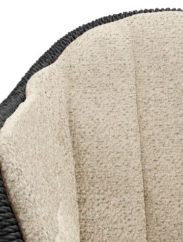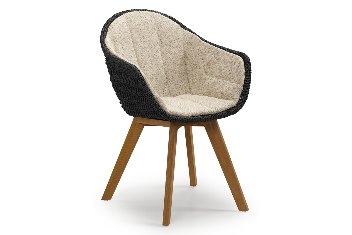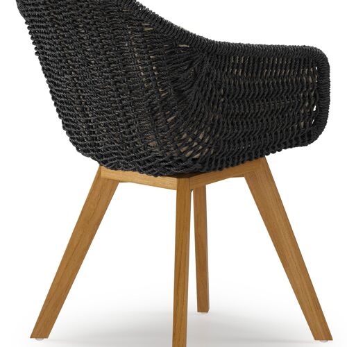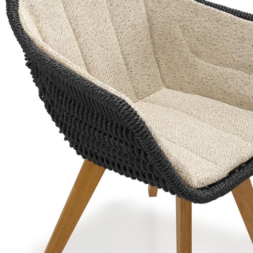 Chaise de jardin Pagino en teck naturel et résine tressée ronde noir avec coussin en All Weather Cosytica Bora Forest | Exterioo
