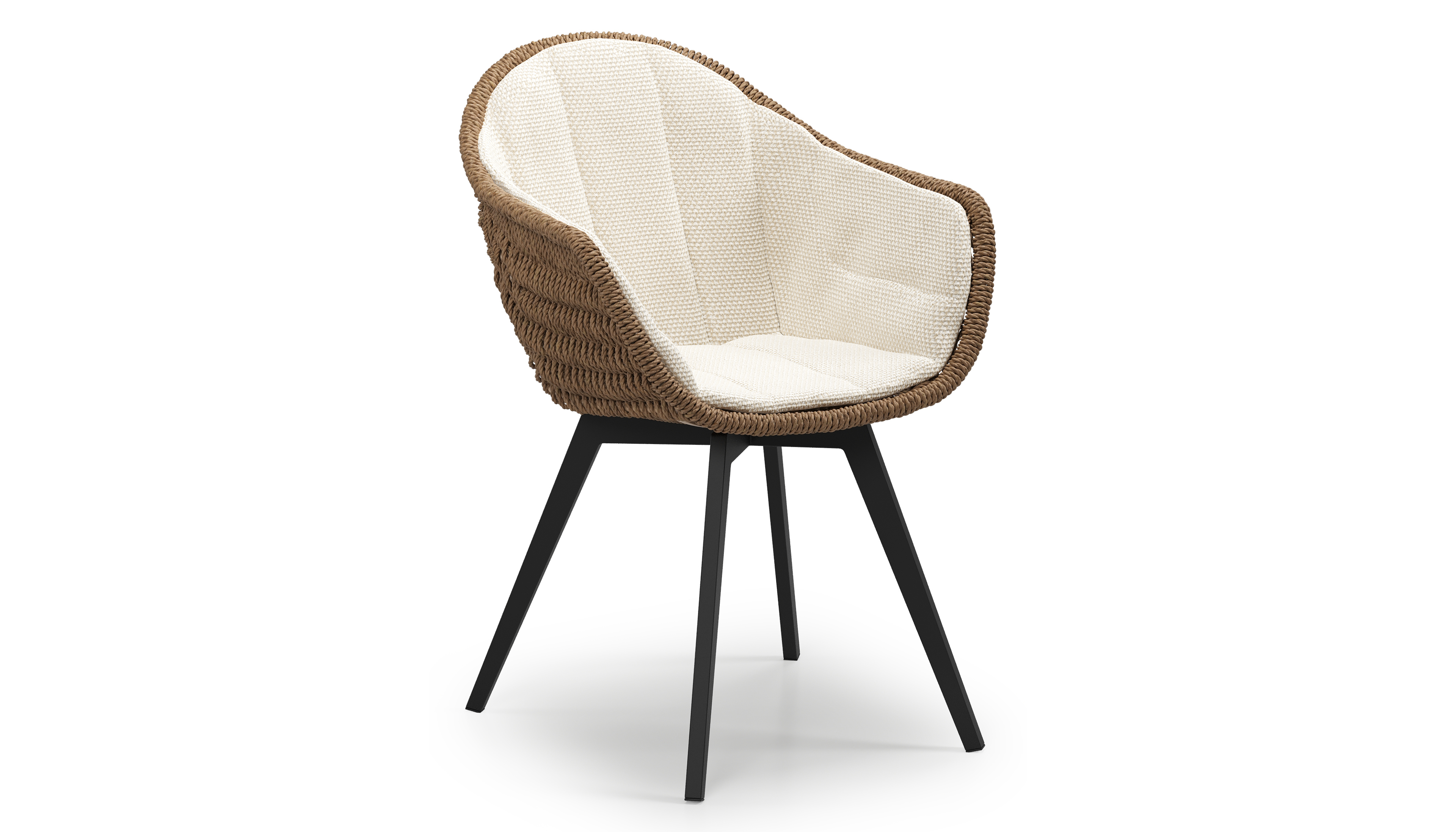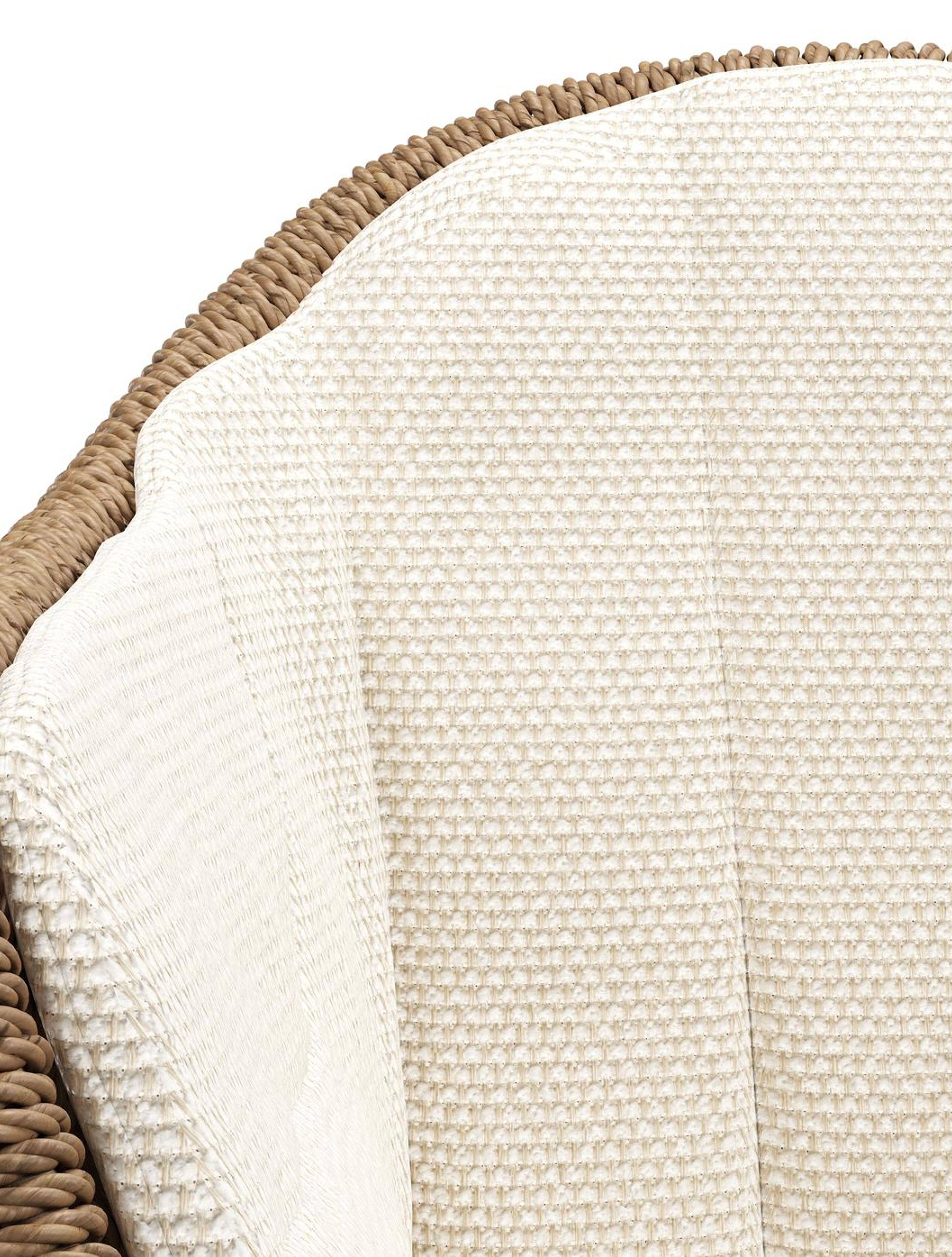 Chaise de jardin Pagino en aluminium noir et résine tressée ronde brun avec coussin en All Weather Cosytica Althea Off White | Exterioo mobilier de jardin