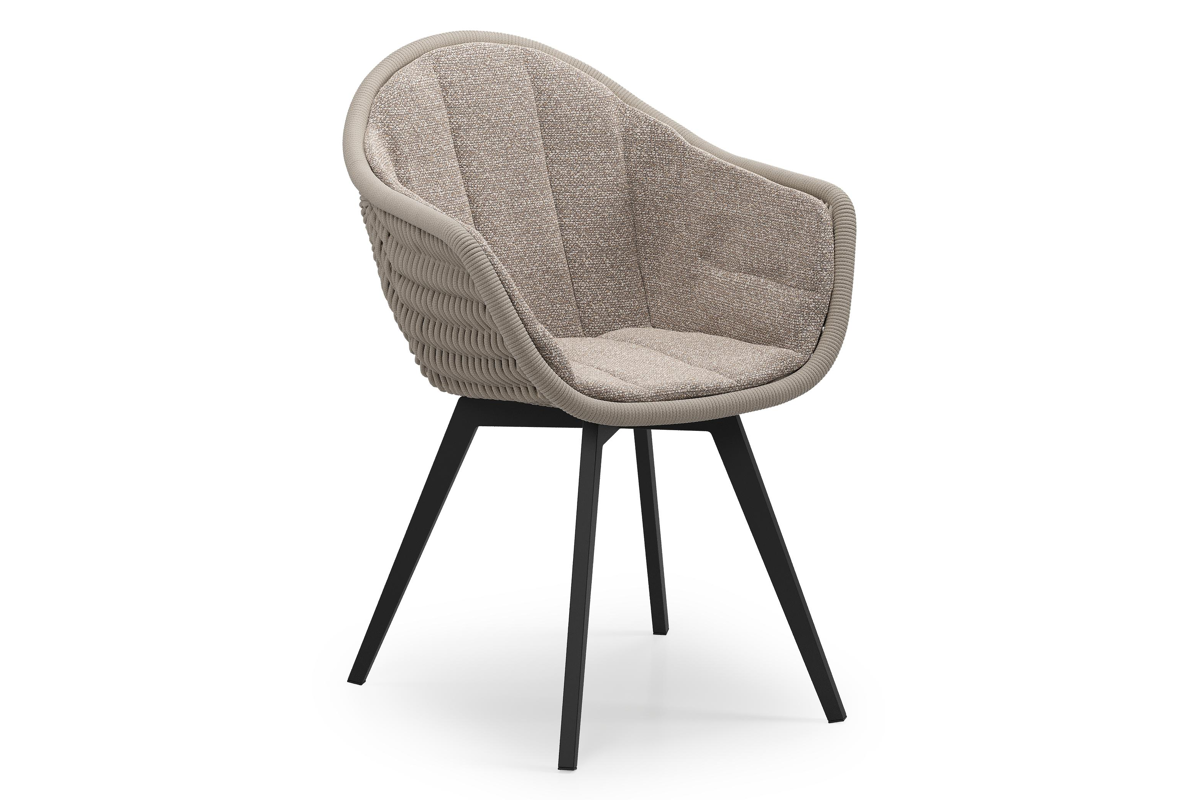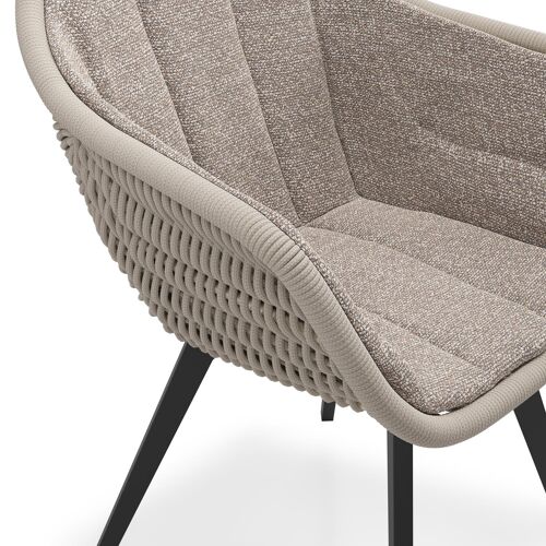 Chaise de jardin Pagino en aluminium noir et corde ronde tissée verticalement beige avec coussin en All Weather Sunbrella® Luxe Wander Manioc | Exterioo