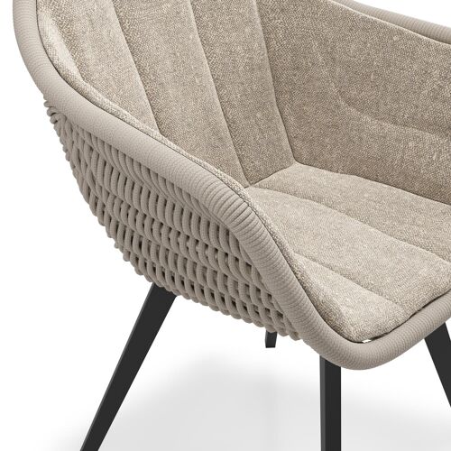 Chaise de jardin Pagino en aluminium noir et corde ronde tissée verticalement beige avec coussin en All Weather Sunbrella® Luxe Chartres Pewter | Exterioo