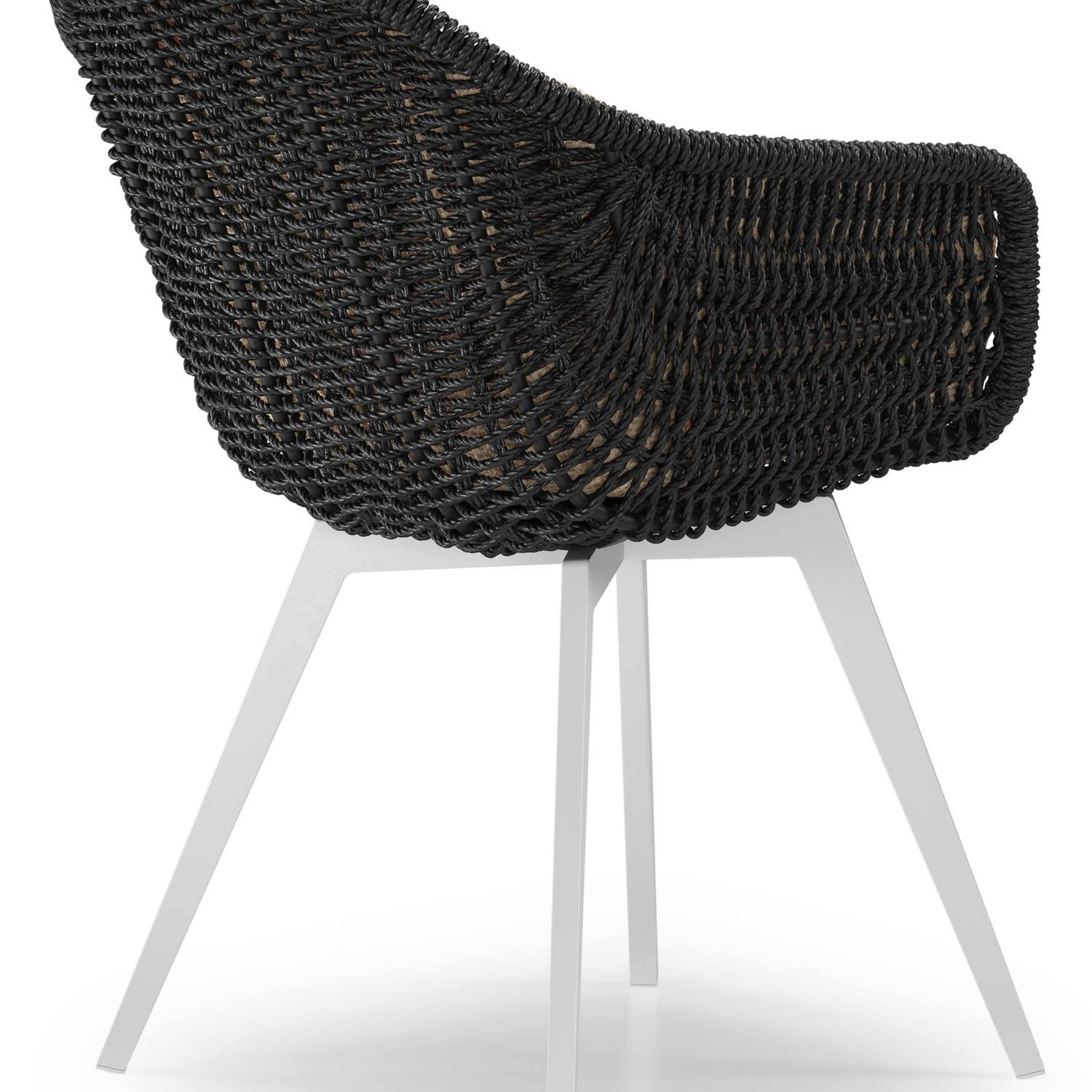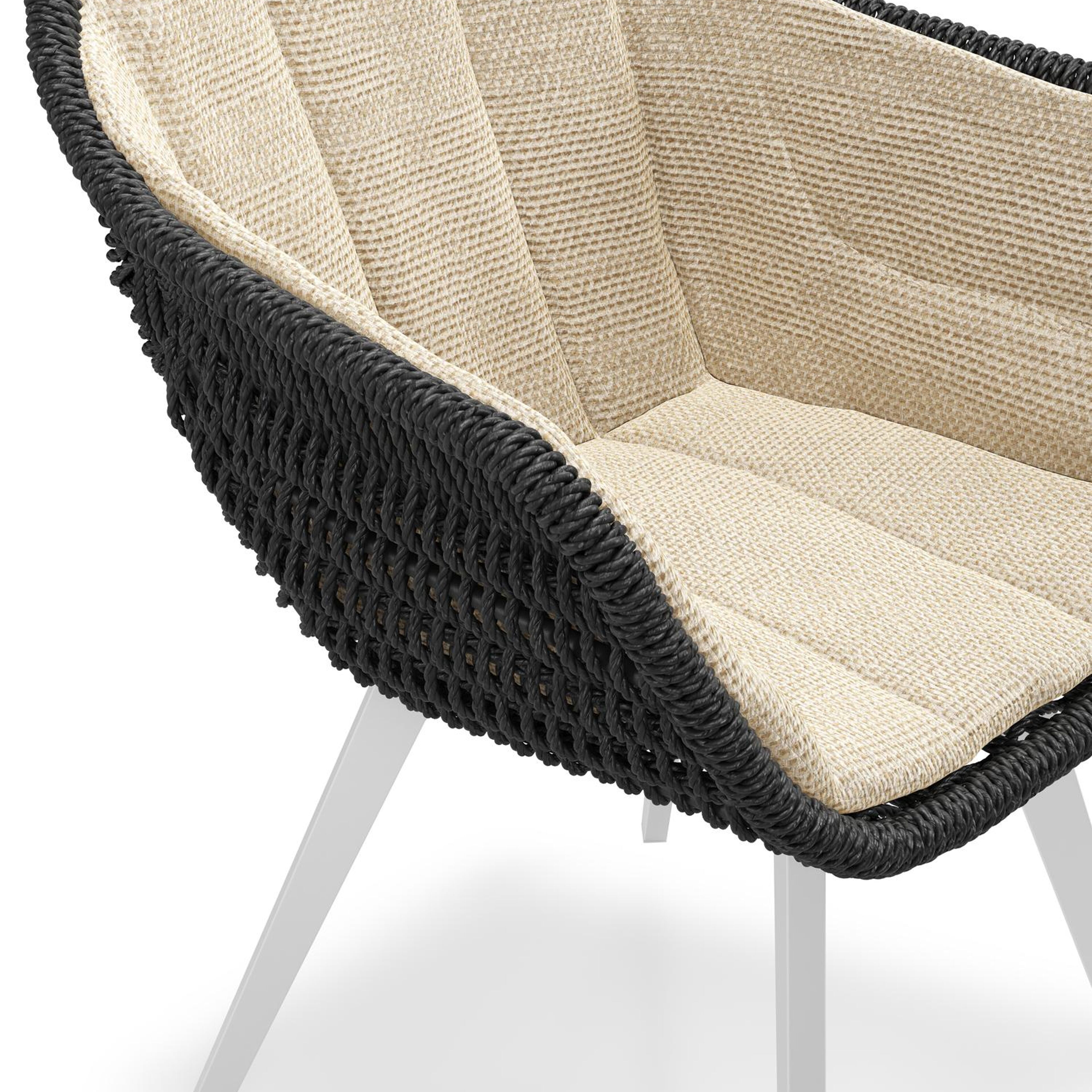Chaise de jardin Pagino en aluminium blanc et résine tressée ronde noir avec coussin en All Weather Cosytica Althea Camel | Exterioo mobilier de jardin