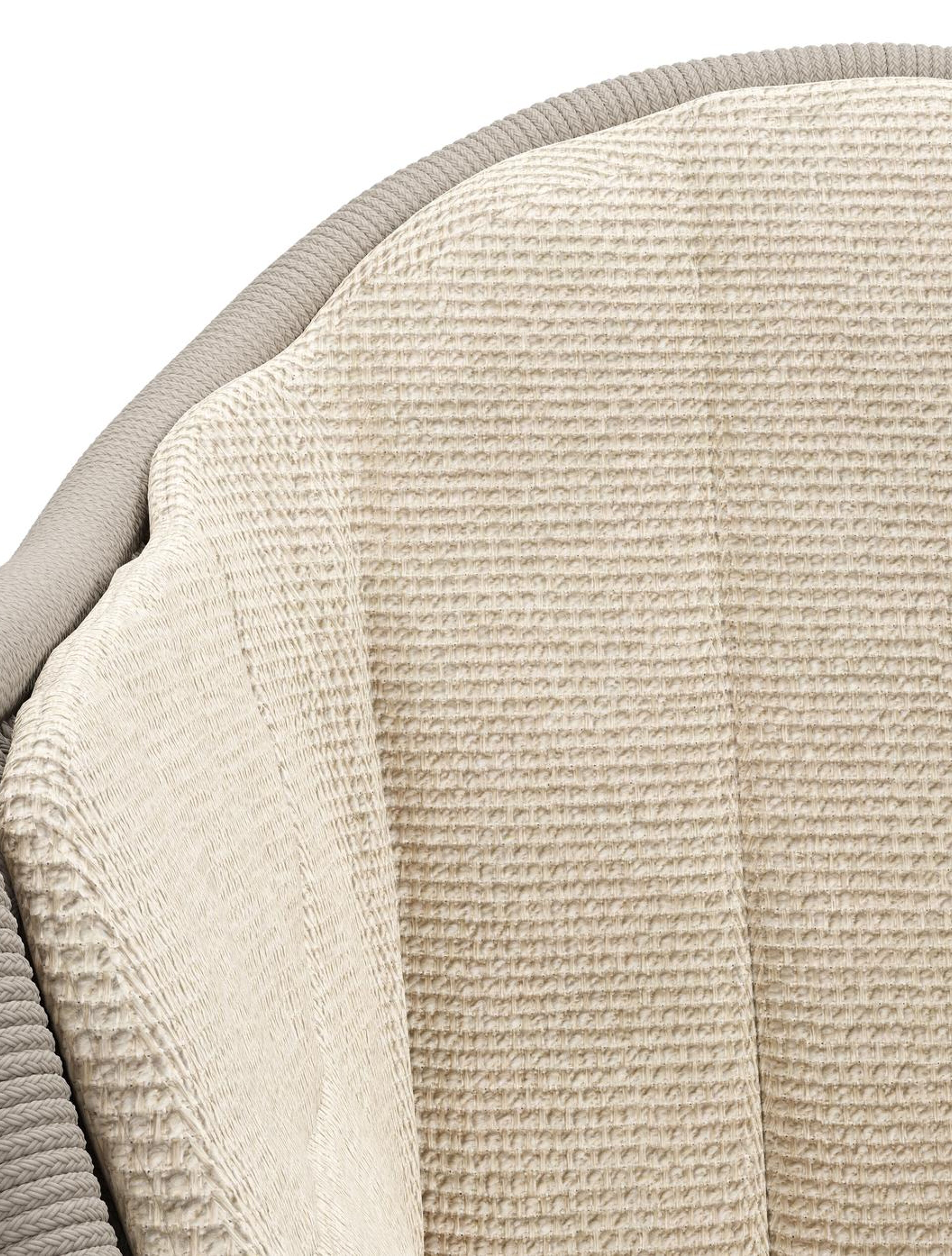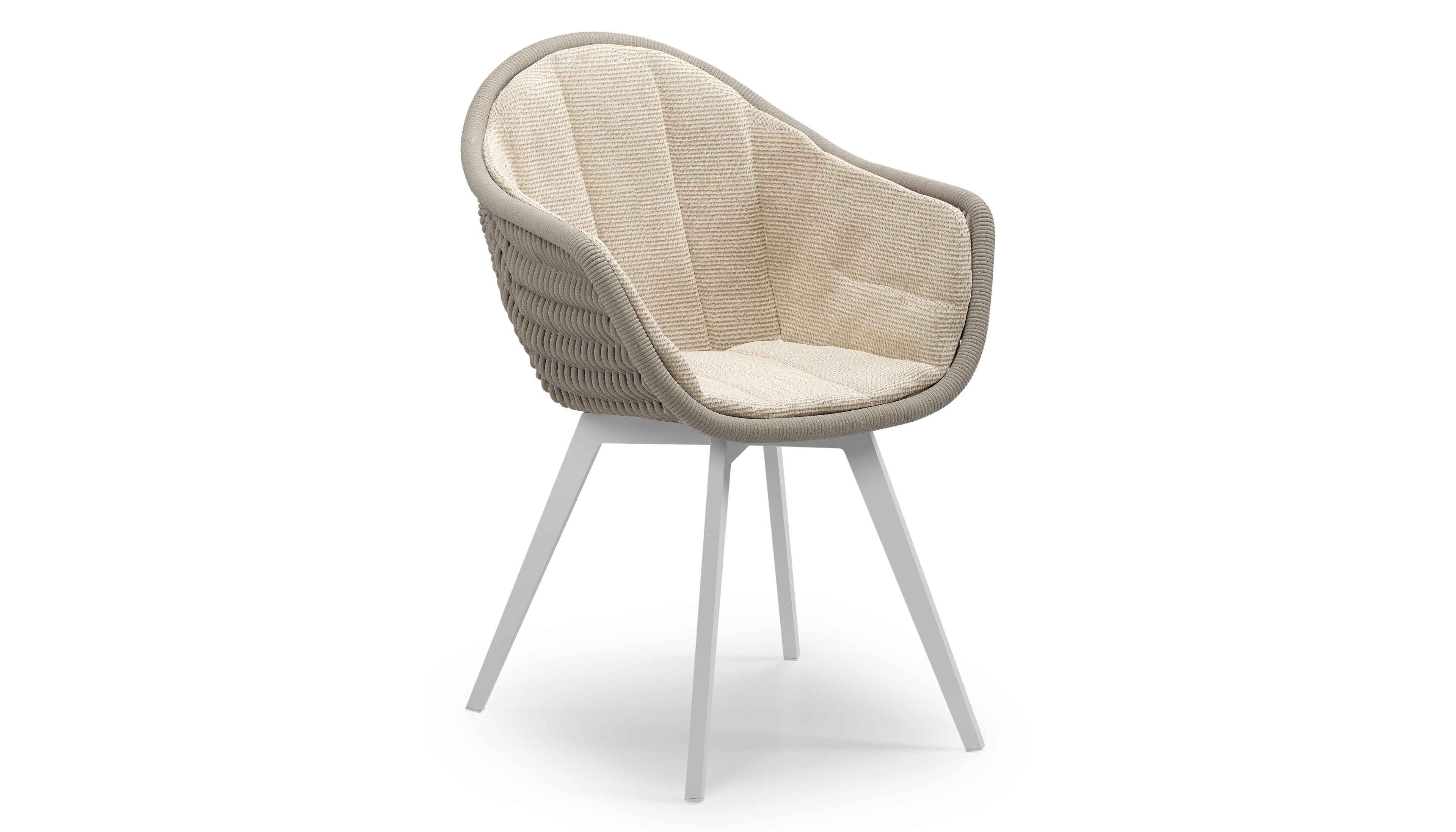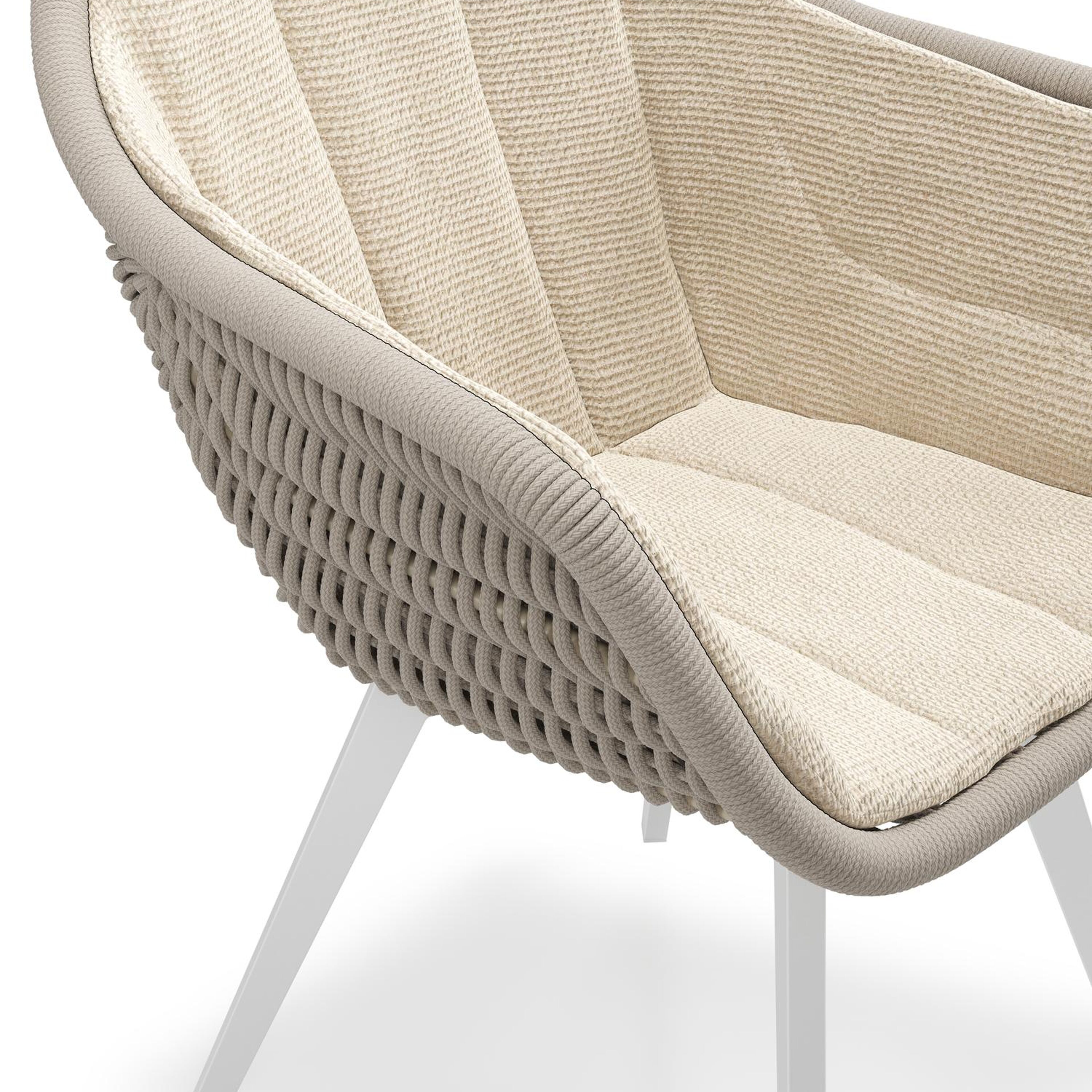 Chaise de jardin Pagino en aluminium blanc et corde ronde tissée verticalement beige avec coussin en All Weather Cosytica Althea Chalk | Exterioo mobilier de jardin