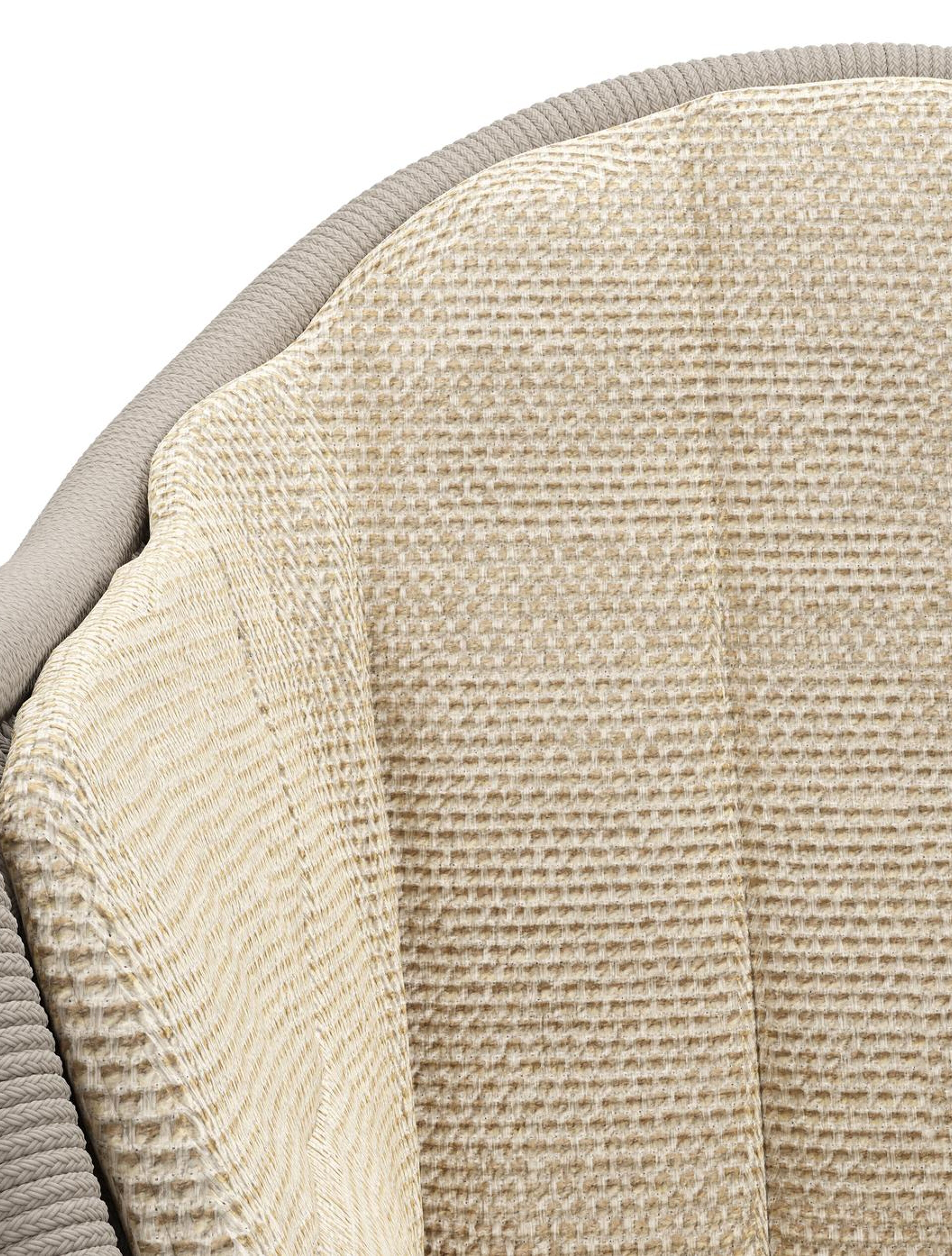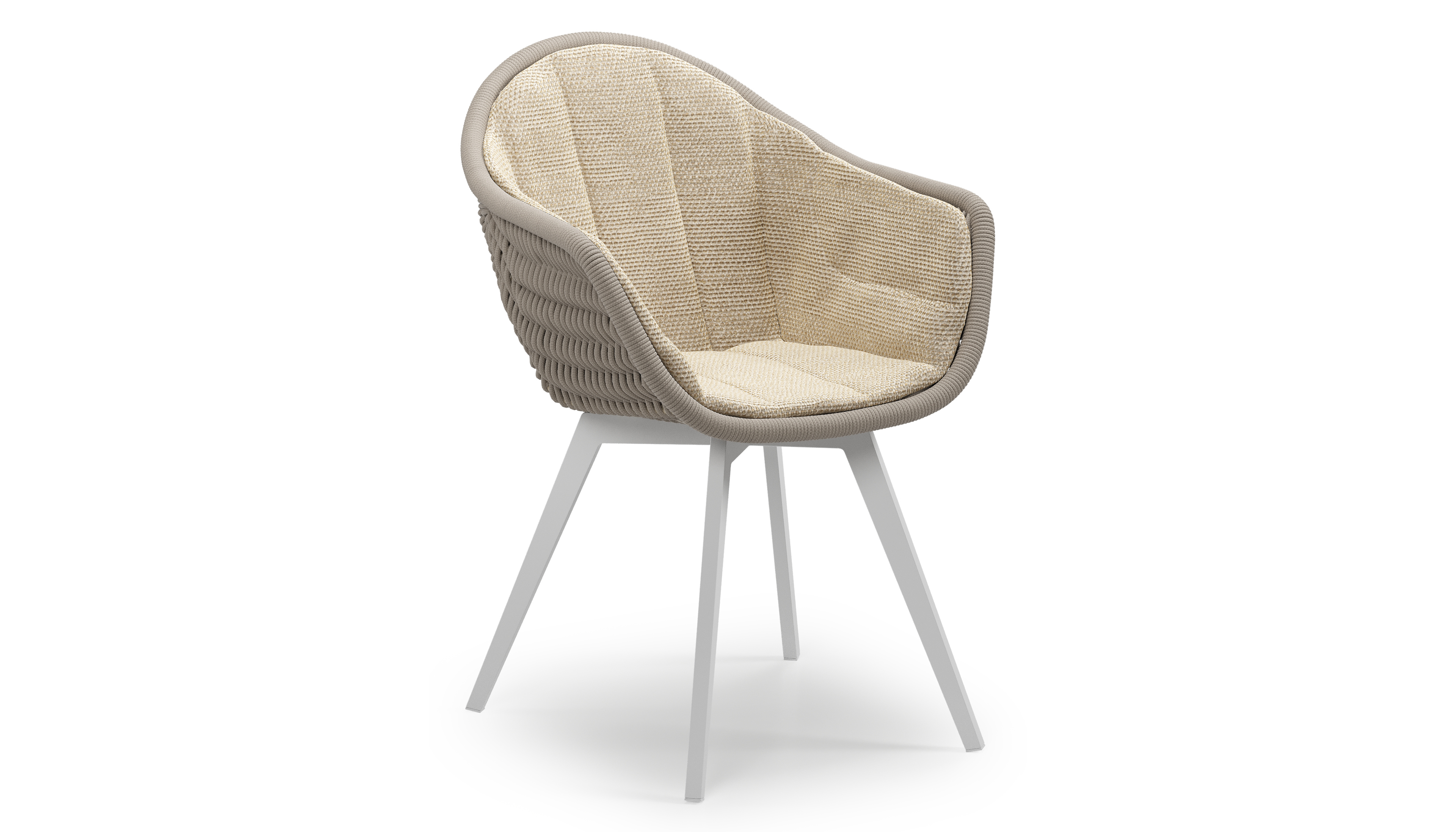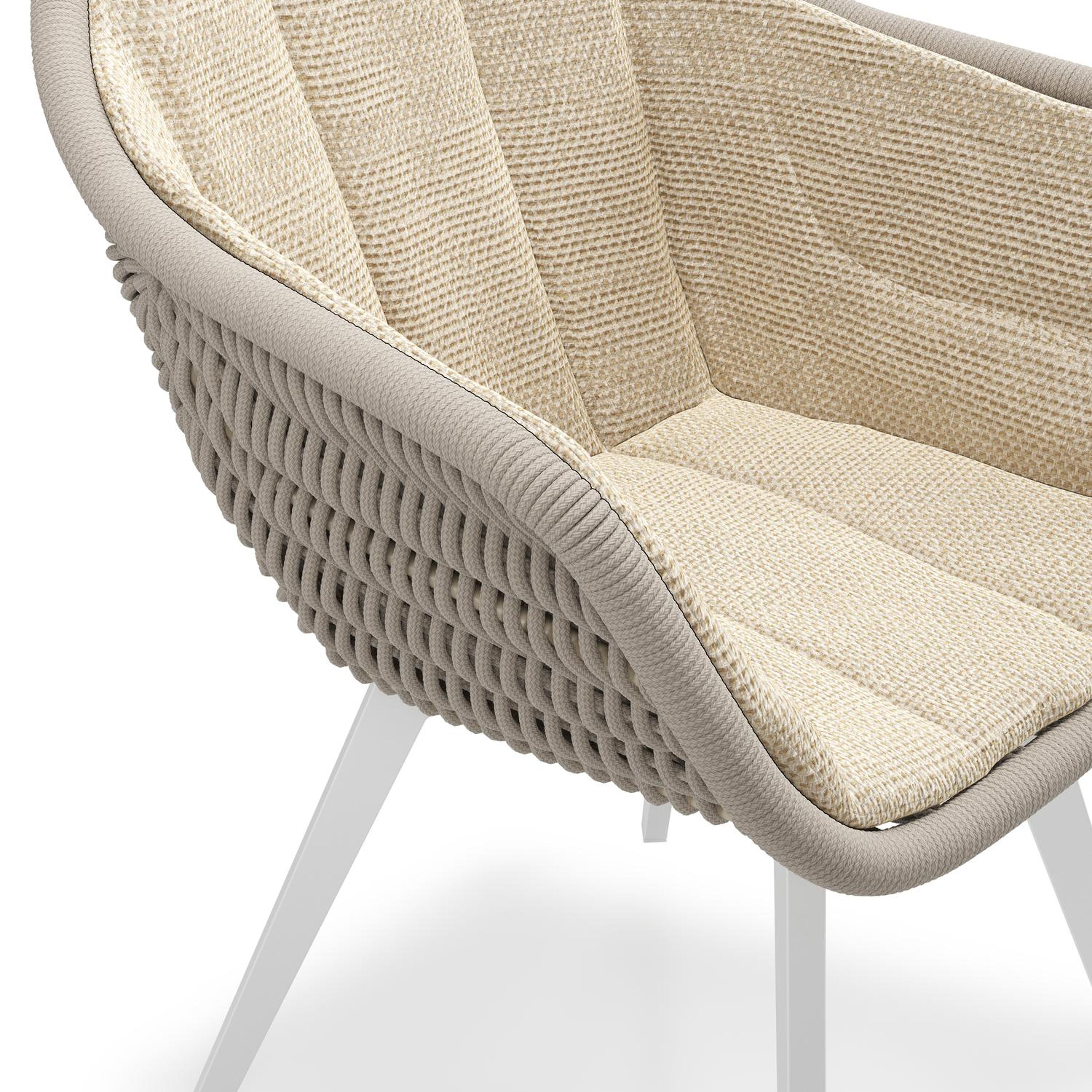 Chaise de jardin Pagino en aluminium blanc et corde ronde tissée verticalement beige avec coussin en All Weather Cosytica Althea Camel | Exterioo mobilier de jardin