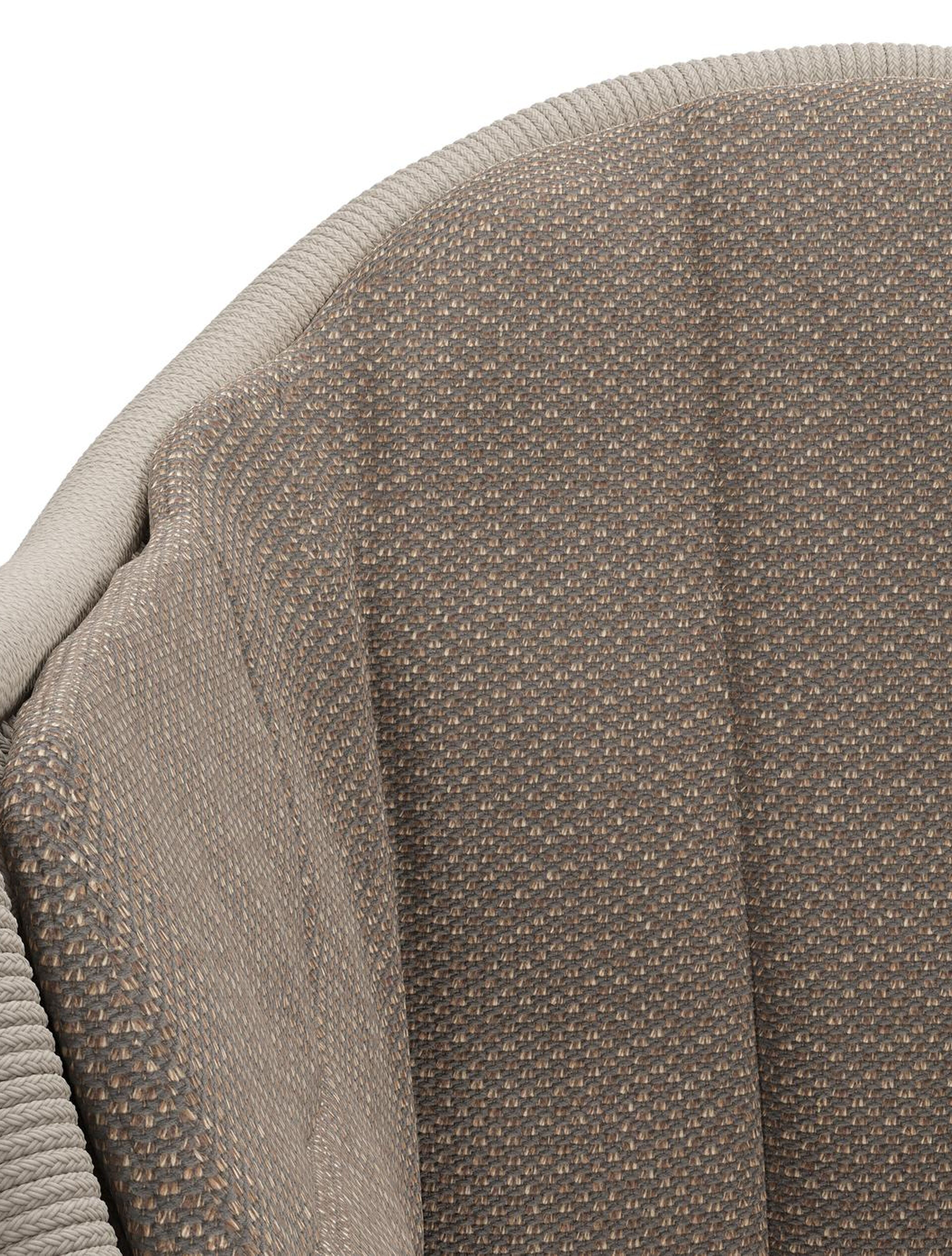 Chaise de jardin Pagino en aluminium blanc et corde ronde tissée verticalement beige avec coussin en All Weather Sunbrella® Luxe Lopi Coconut | Exterioo mobilier de jardin