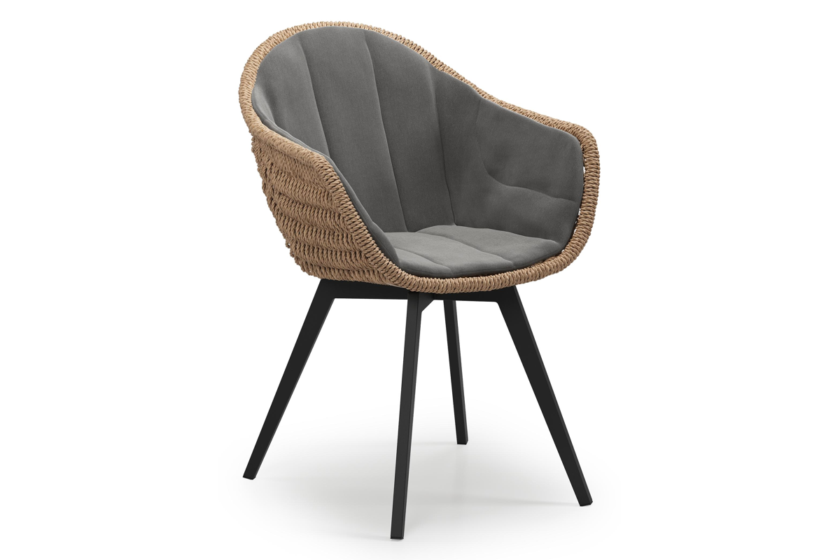 Chaise de jardin Pagino en aluminium noir et résine tressée ronde naturel avec coussin en natte charcoal chine all weather sunbrella® luxe | Exterioo