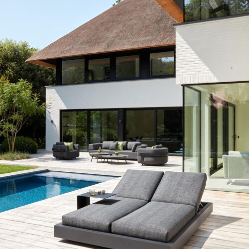 Chaise longue double réglable Como en aluminium noir et coussin en all weather Cosytica althea camel | Exterioo