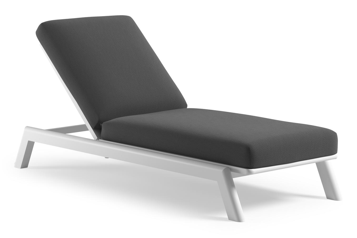 Chaise longue réglable Cirello avec système de pompe en aluminium blanc et coussin en all weather Sunbrella® luxe lopi shadow | Exterioo