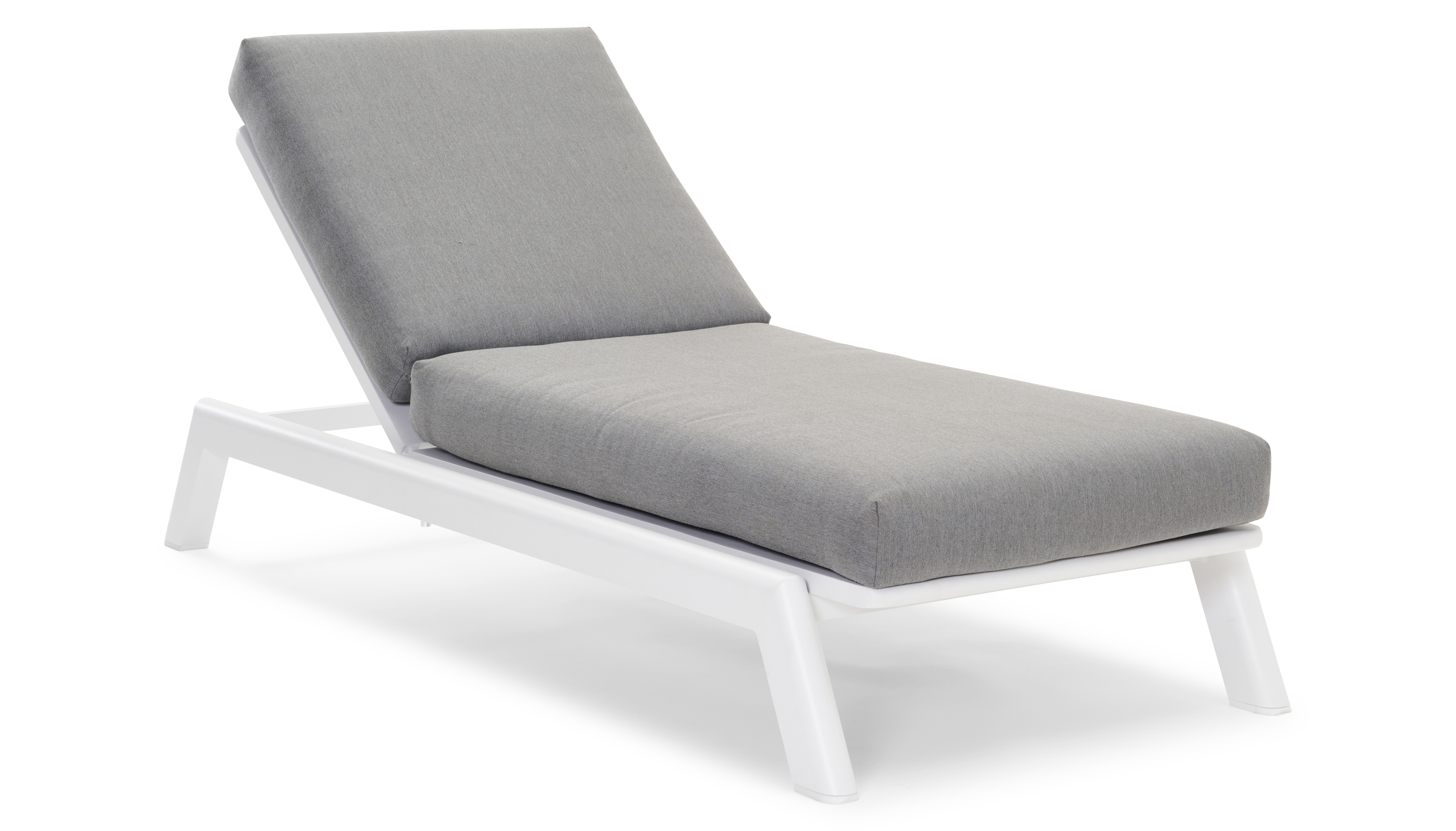Cirello verstelbaar ligbed met pompsysteem in wit aluminium met natte charcoal chine all weather sunbrella® luxe kussen | Exterioo mobilier de jardin