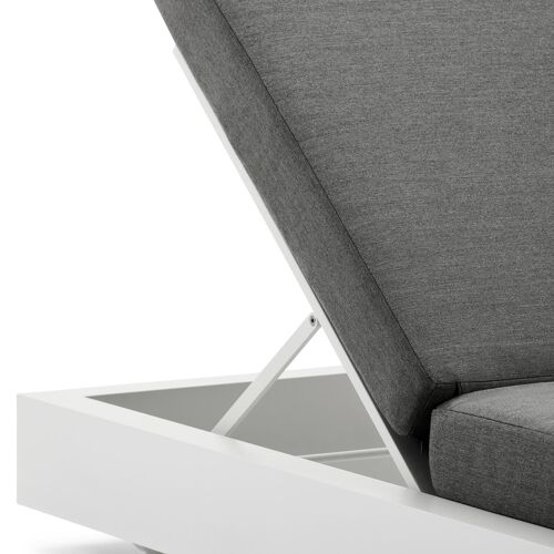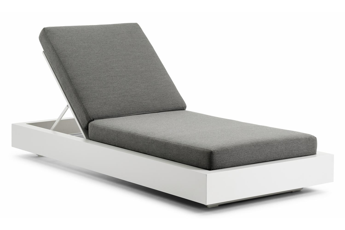 Chaise longue réglable Como en aluminium blanc avec Sunbrella® Premium natte charcoal chine coussin | Exterioo