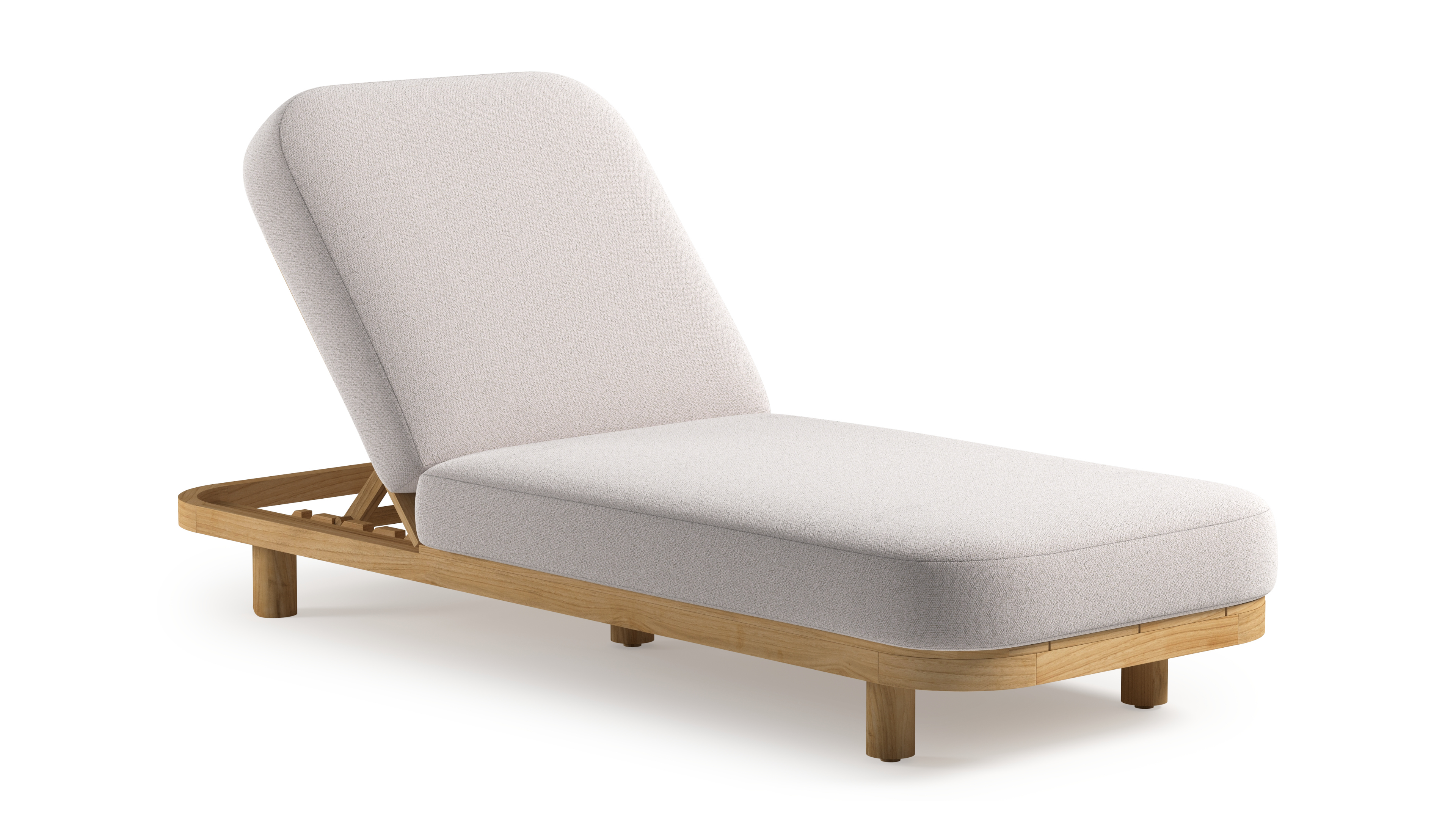 Chaise longue réglable Donato en teck avec All Weather Solica ego eggshell coussin | Exterioo mobilier de jardin