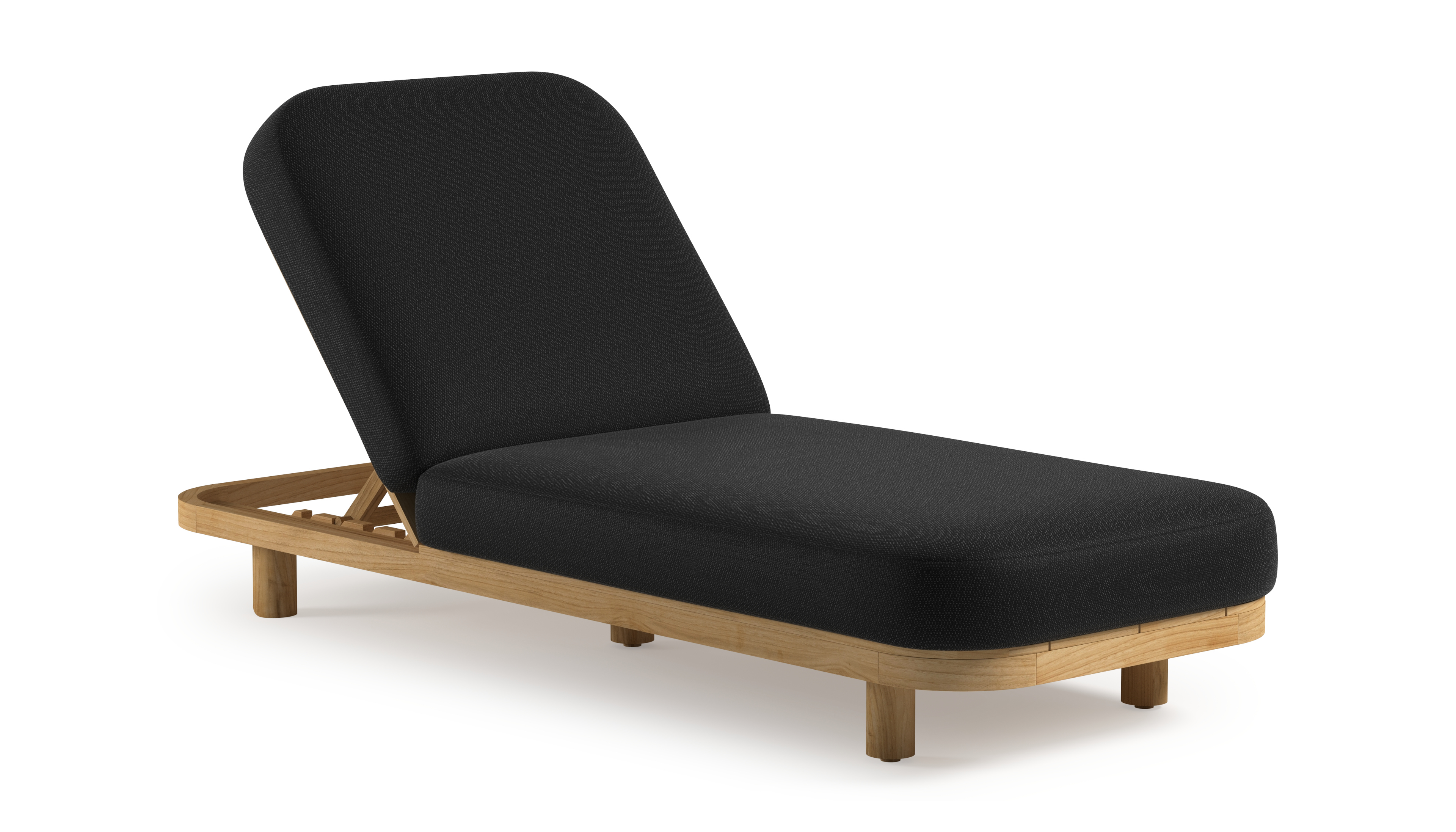 Chaise longue réglable Donato en teck avec All Weather Sunbrella® luxe lopi baribal coussin | Exterioo mobilier de jardin
