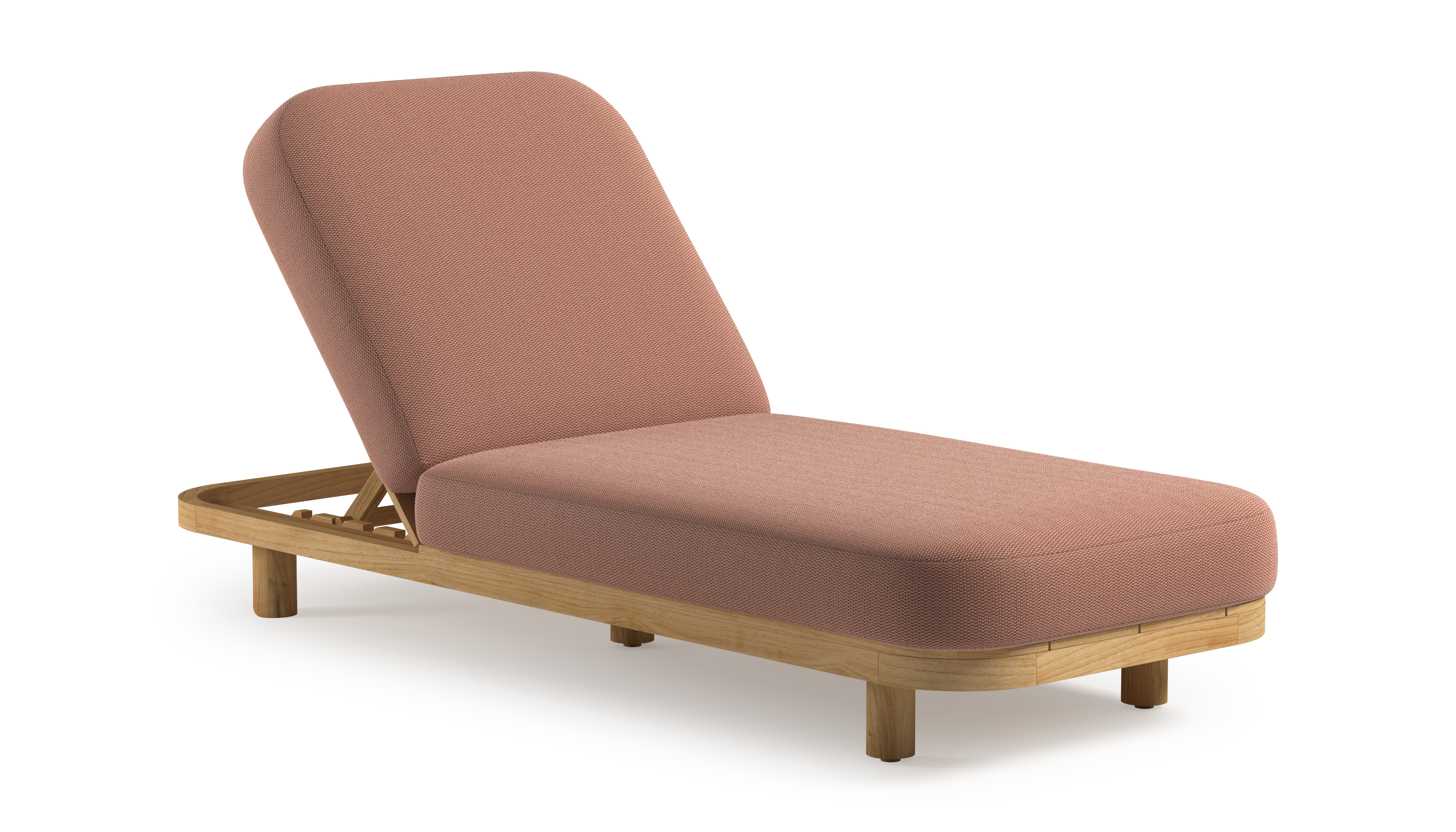 Chaise longue réglable Donato en teck avec All Weather Sunbrella® luxe lopi fawn coussin | Exterioo mobilier de jardin