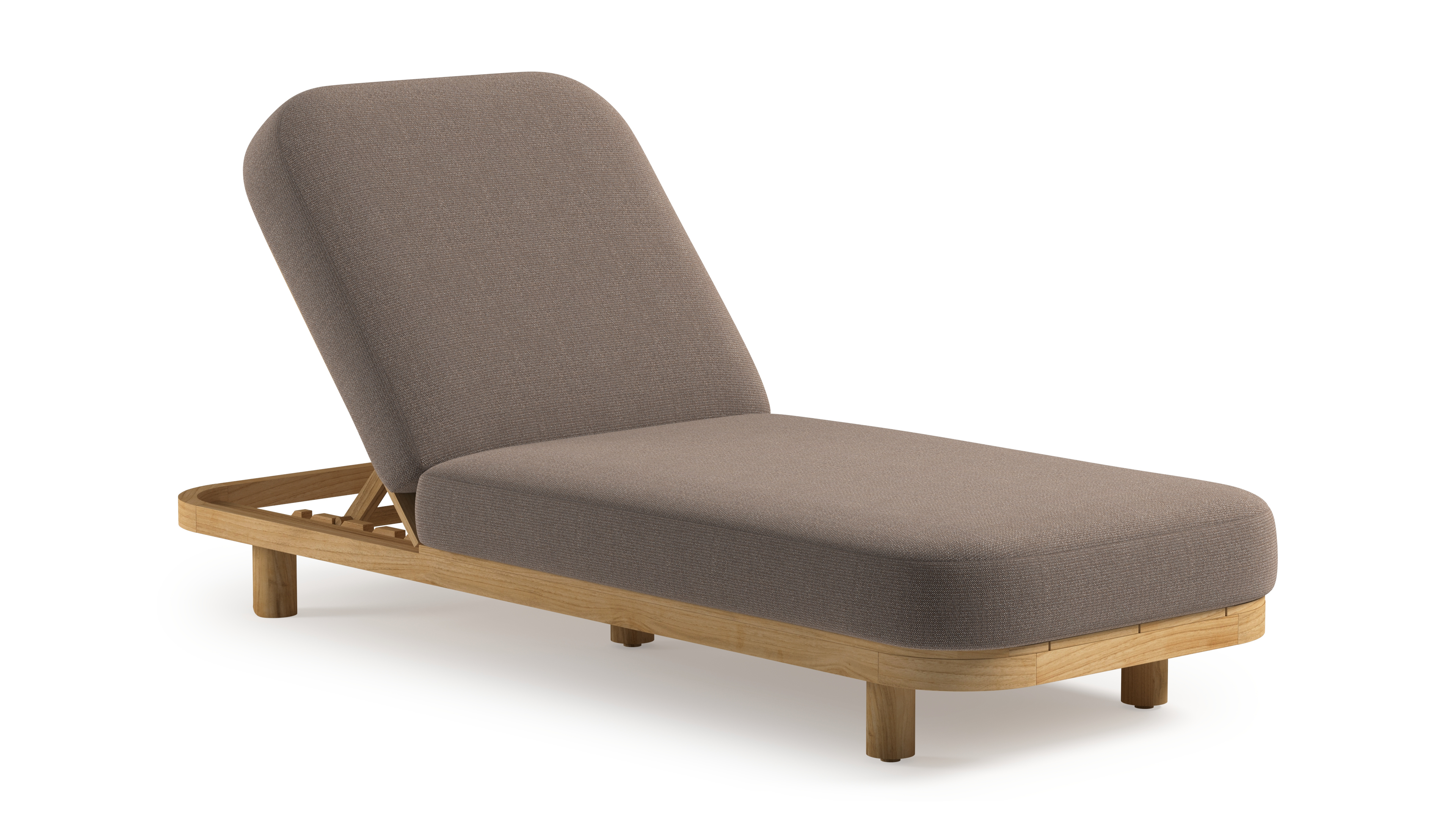 Chaise longue réglable Donato en teck avec All Weather Sunbrella® luxe savane earth coussin | Exterioo mobilier de jardin
