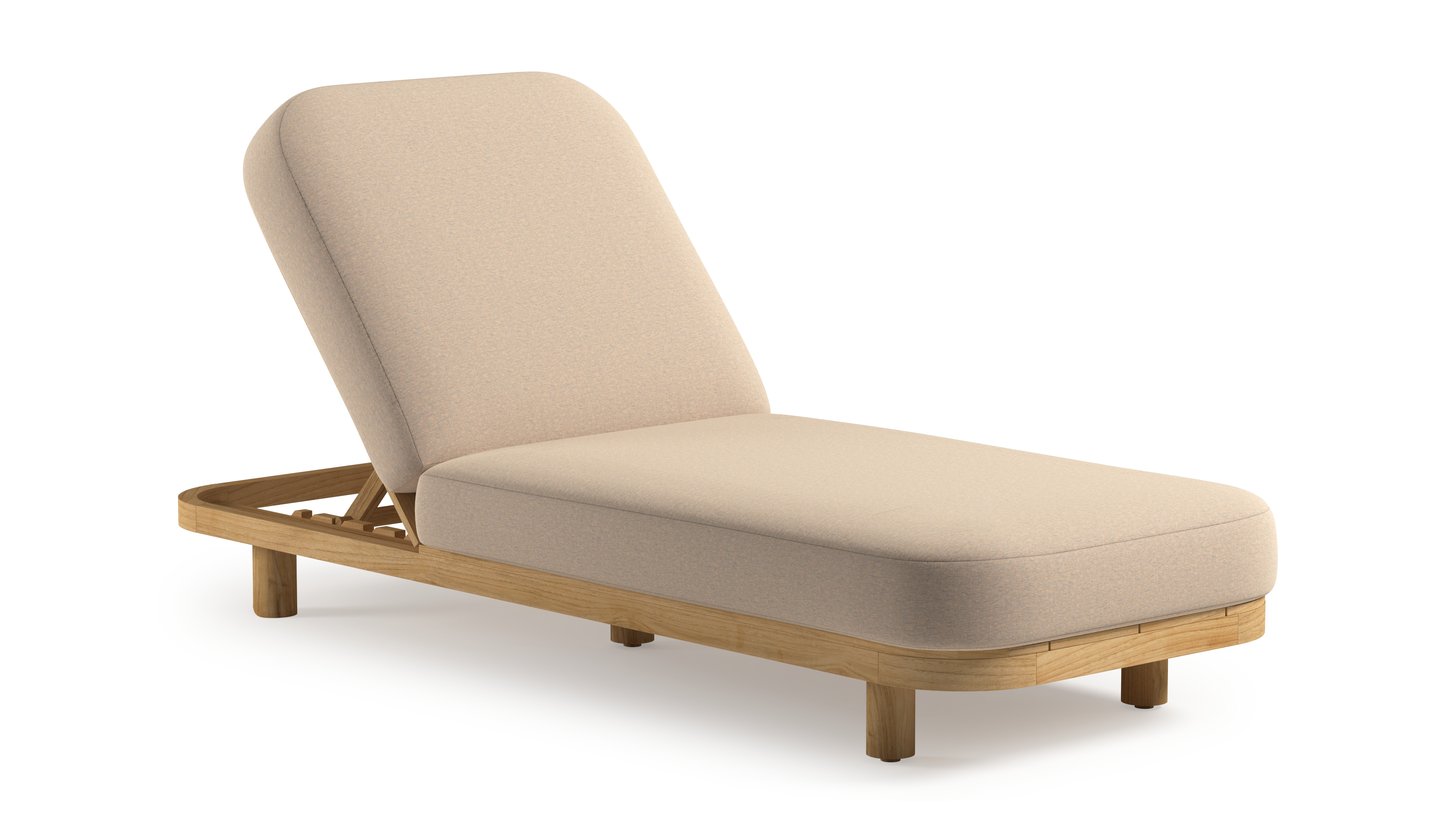 Chaise longue réglable Donato en teck avec All Weather Sunbrella® luxe heritage papyrus coussin | Exterioo mobilier de jardin