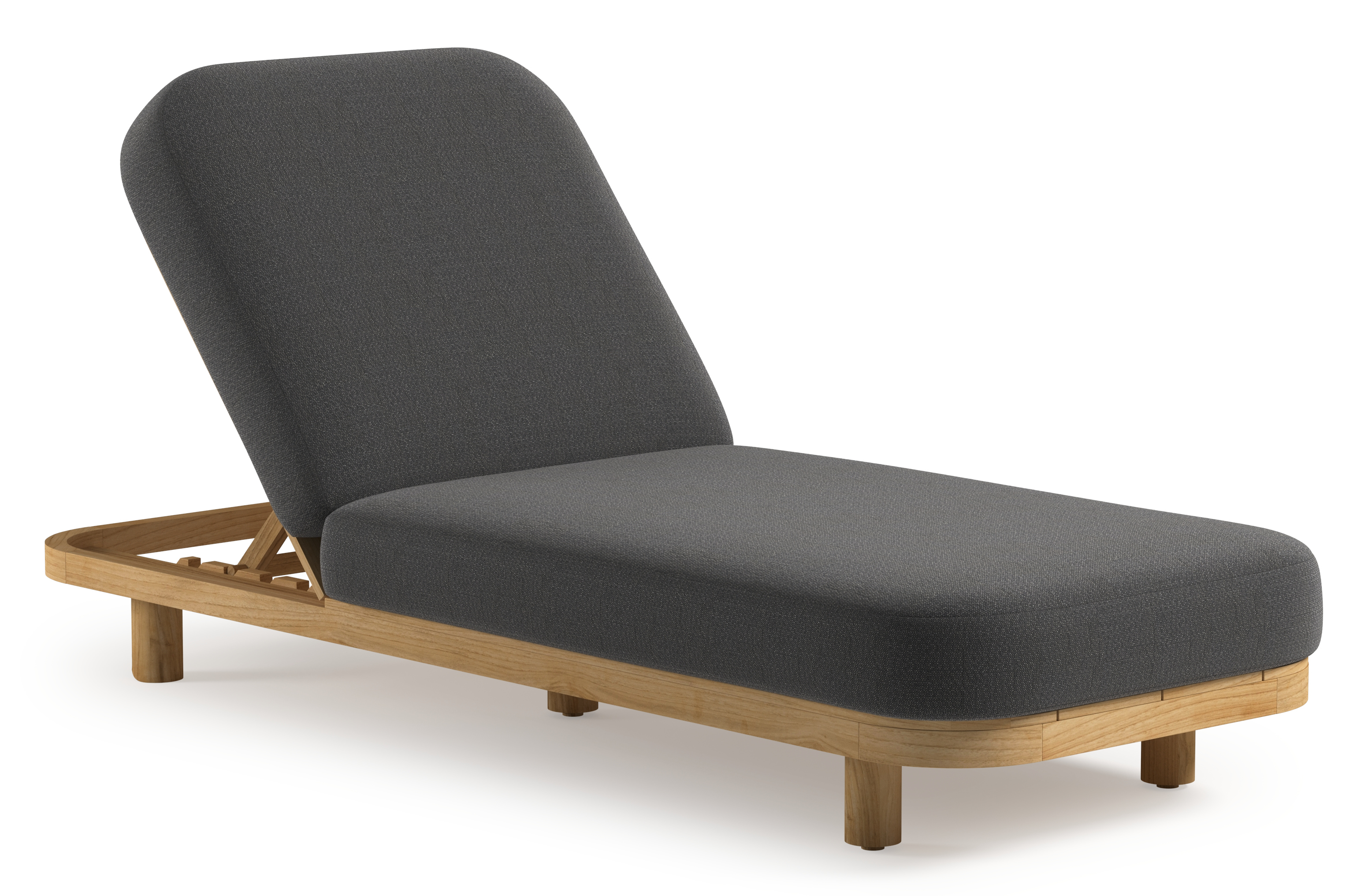 Chaise longue réglable Donato en teck avec All Weather Sunbrella® luxe savane tornado coussin | Exterioo mobilier de jardin