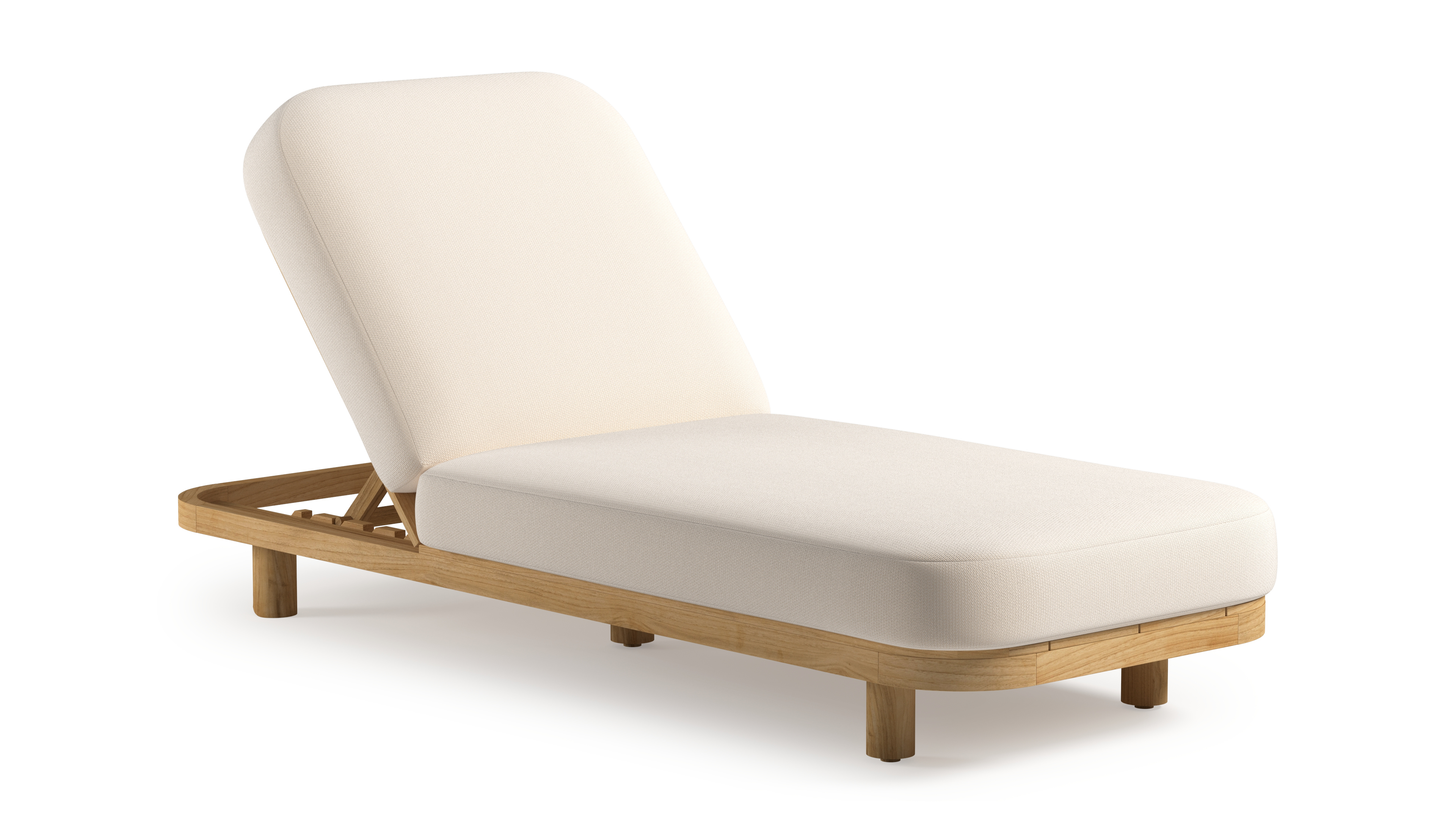 Chaise longue réglable Donato en teck avec All Weather Sunbrella® luxe lopi snow coussin | Exterioo mobilier de jardin