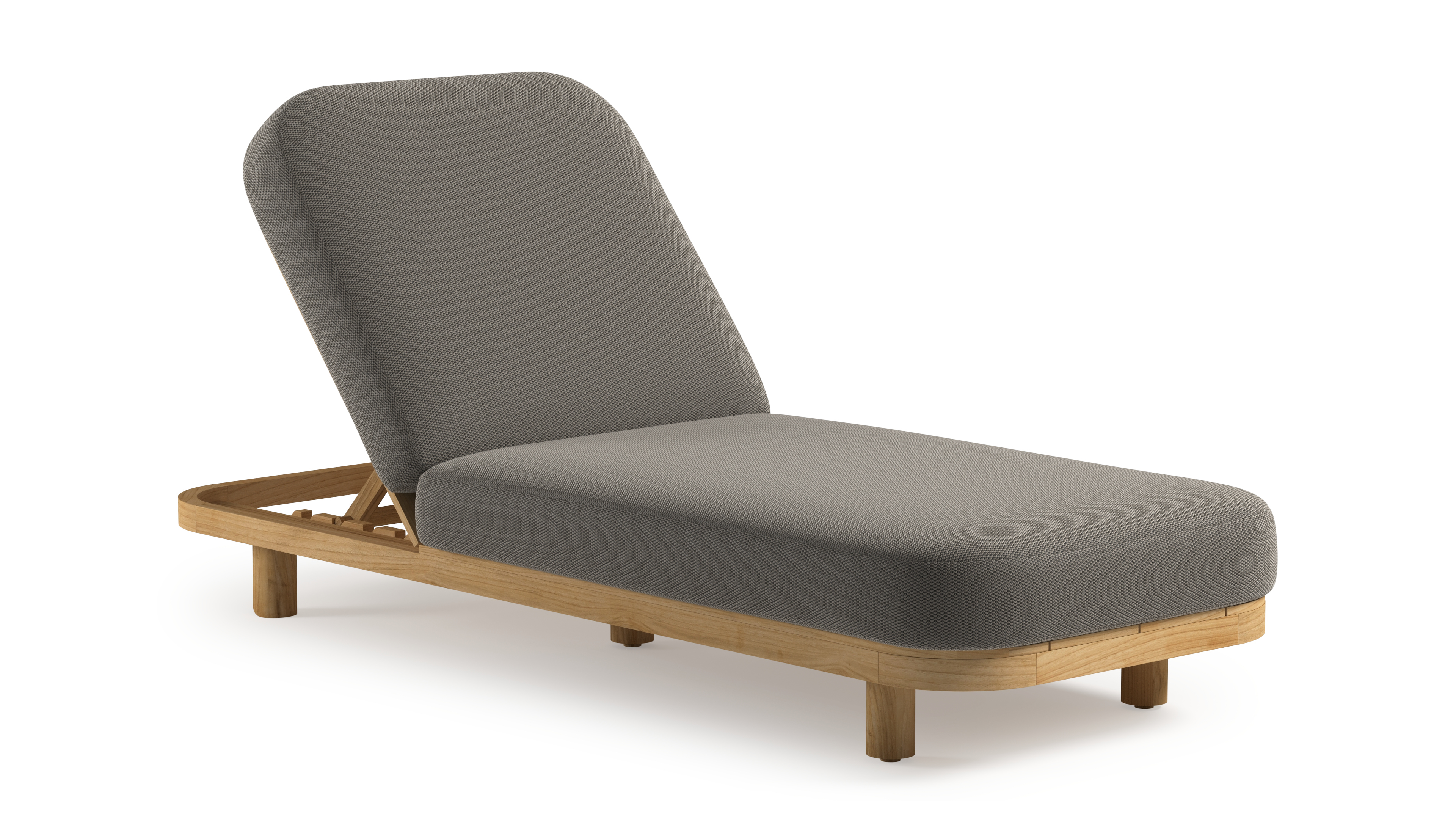 Chaise longue réglable Donato en teck avec All Weather Sunbrella® luxe lopi charcoal coussin | Exterioo mobilier de jardin