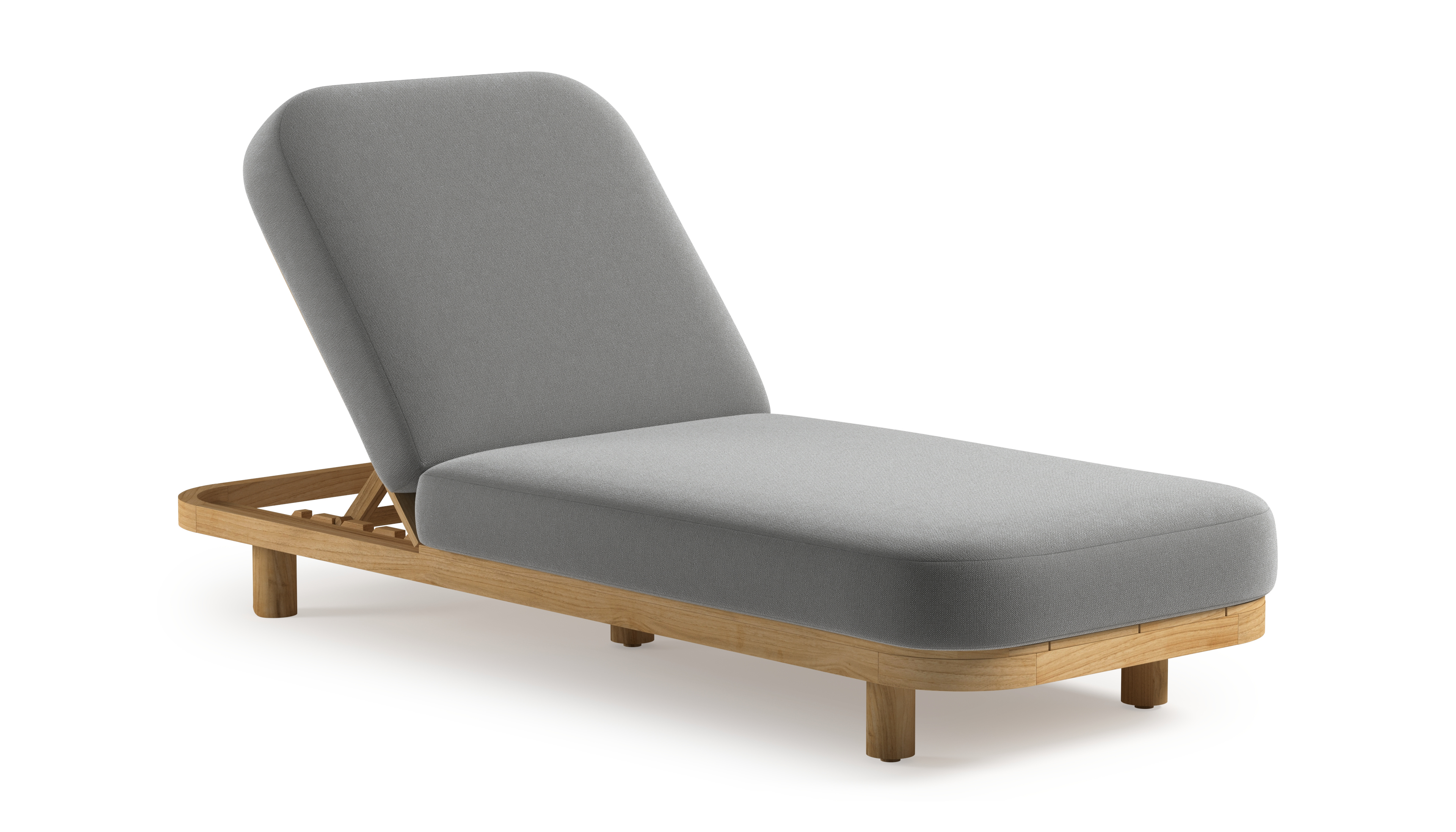 Chaise longue réglable Donato en teck avec All Weather Sunbrella® luxe savane grey coussin | Exterioo mobilier de jardin