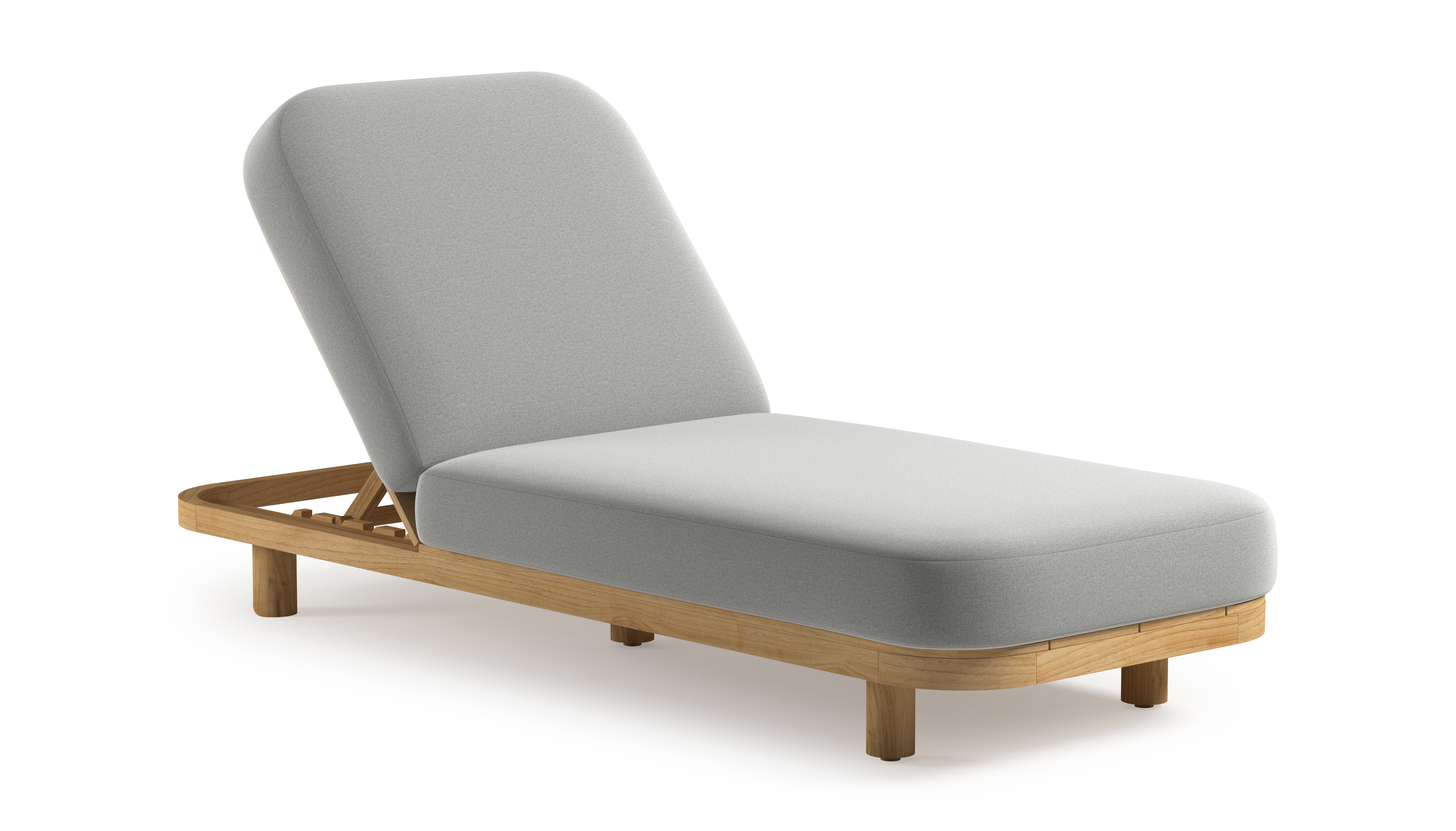 Chaise longue réglable Donato en teck avec All Weather Sunbrella® luxe natte grey chine coussin | Exterioo mobilier de jardin