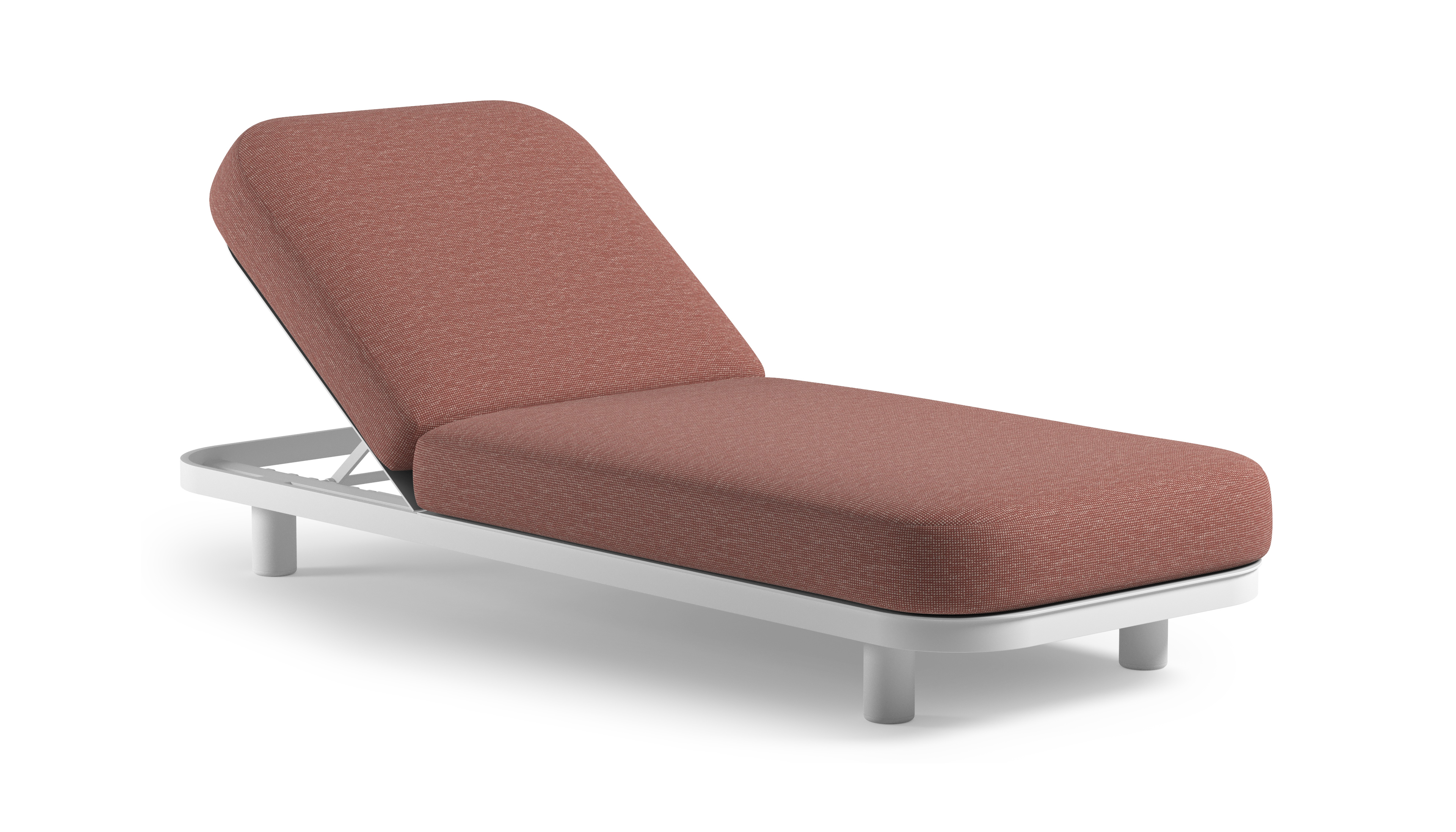 Chaise longue réglable Donato en aluminium blanc et coussin en all weather Sunbrella® luxe slow alezan | Exterioo mobilier de jardin